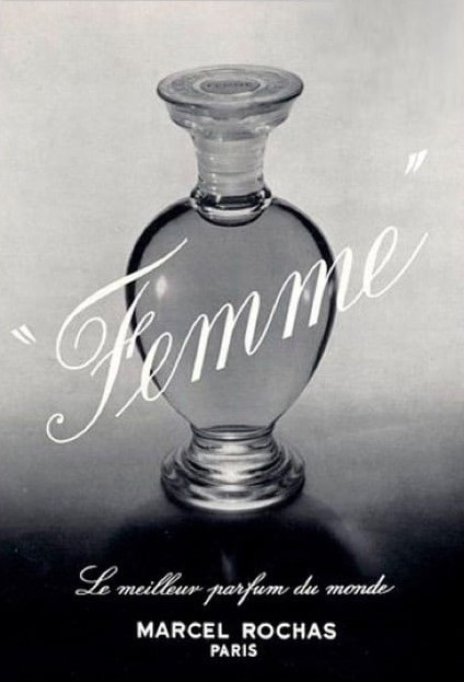 Новый стиль добрался и до Америки, где очаровал даже звёзд Голливуда. Окрылённый успехом, Марсель Роша немедленно обратился к выпуску духов – он был убеждён, что «присутствие женщины нужно ощущать до её появления». Свои первые духи он выпустил в 1944 году в качестве свадебного подарка для своей молодой жены. Название оказалось простым и ёмким – «Femme» (Женщина).