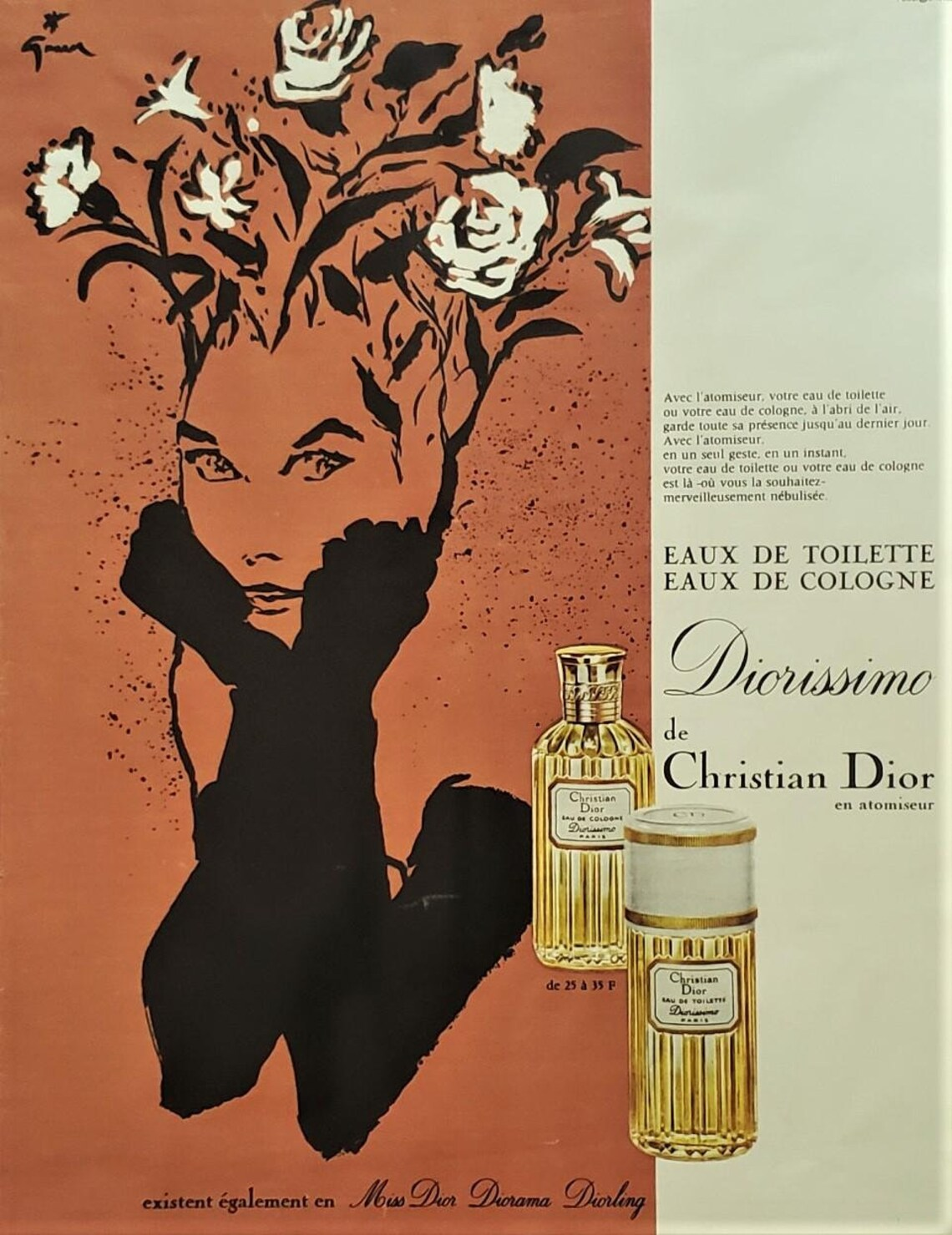 Одеколон Christian Dior Diorissimo EDC 120 мл винтаж 1960-х годов атомайзер в слюде