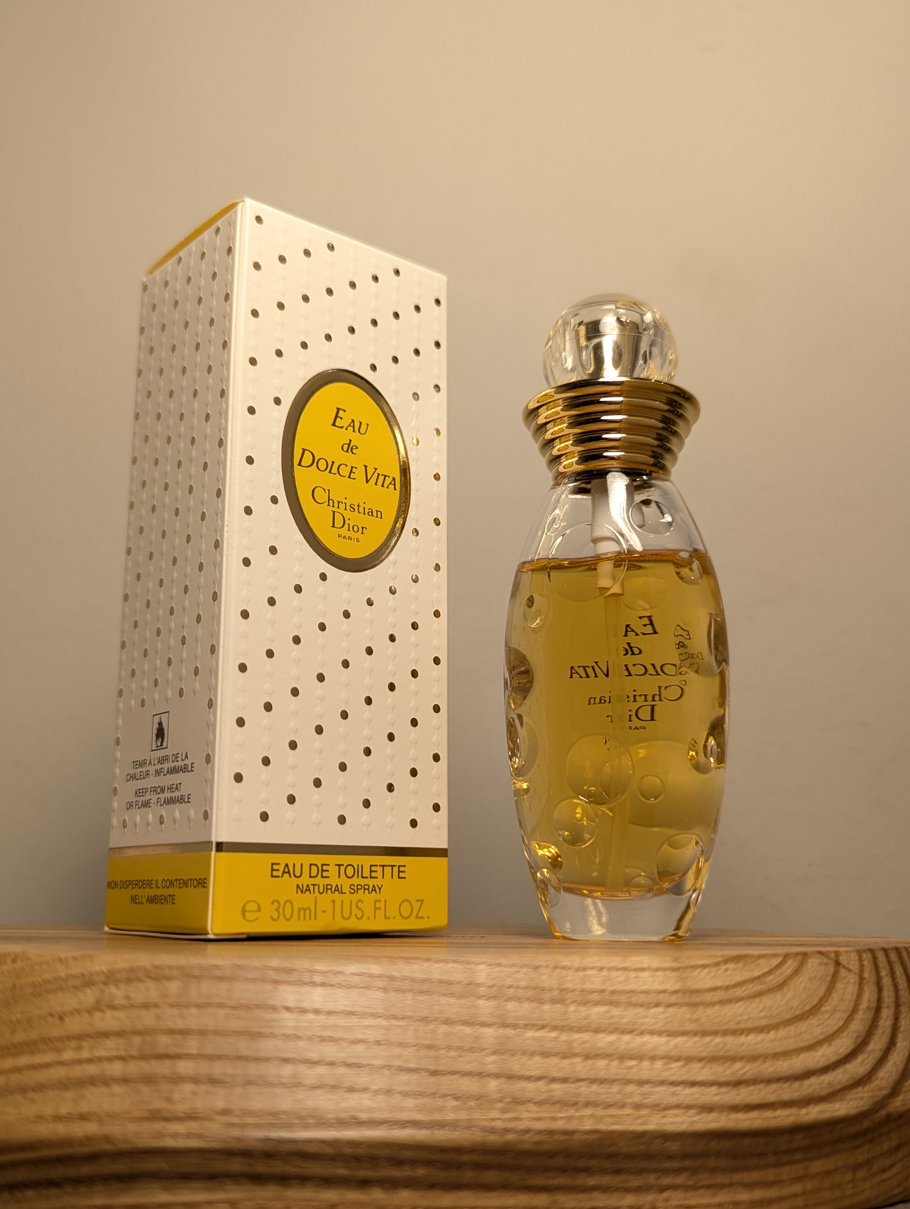 Утончённая винтажная туалетная вода Christian Dior Eau de Dolce Vita (Кристиан Диор О де Дольче Вита) объёмом 30 мл 1998 года выпуска, флакон спрей (пульверизатор).Оригинал, не реплика! Первый выпуск! Продаётся именно тот флакон, что на фото. Аромат в отличной сохранности! Остаток на фото.