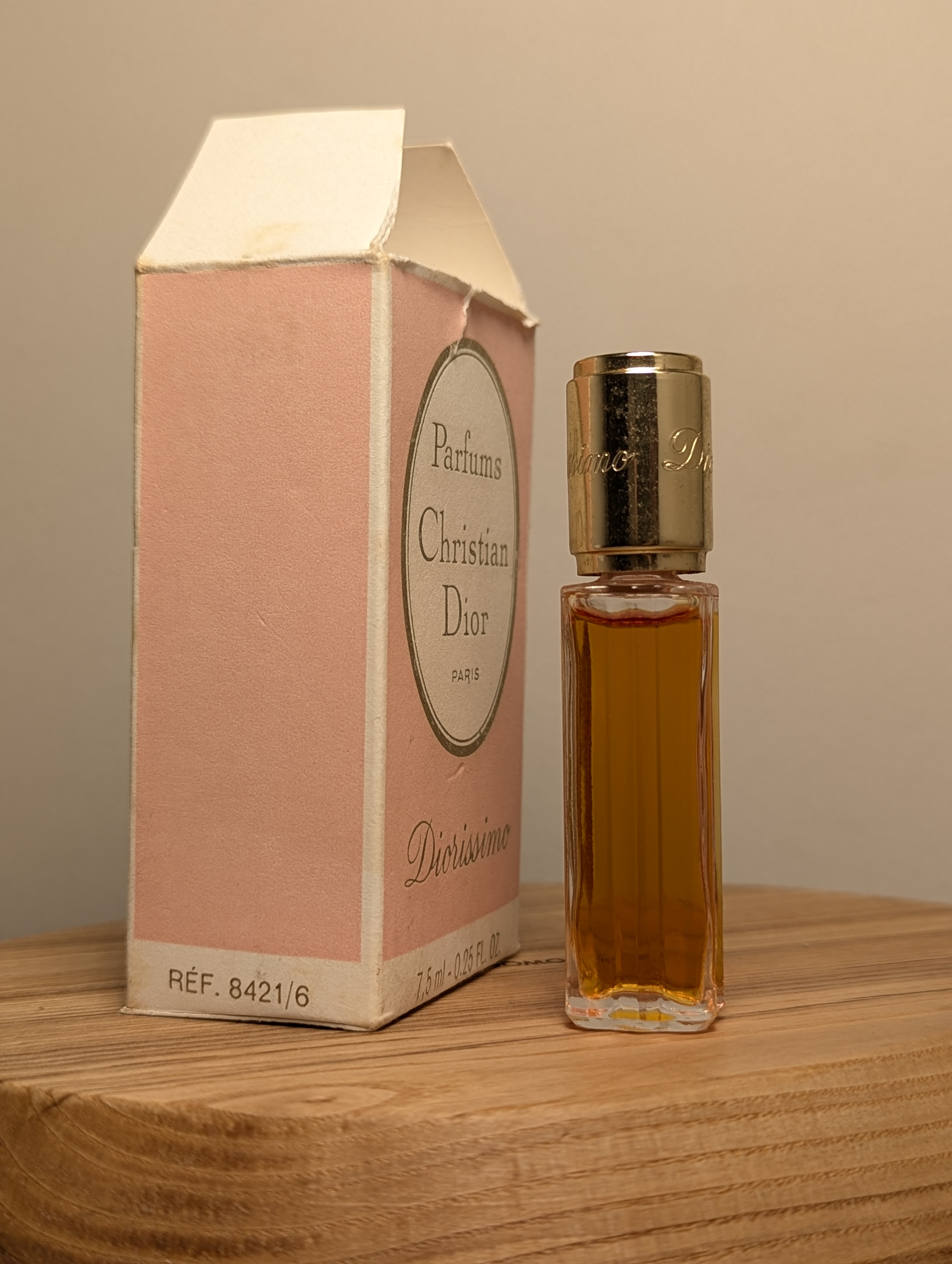 Легендарные винтажные духи Christian Dior Diorissimo (Кристиан Диор Диориссимо) объёмом 7,5 мл 1970-х годов выпуска, флакон сплэш (пальчик, не спрей), полный.