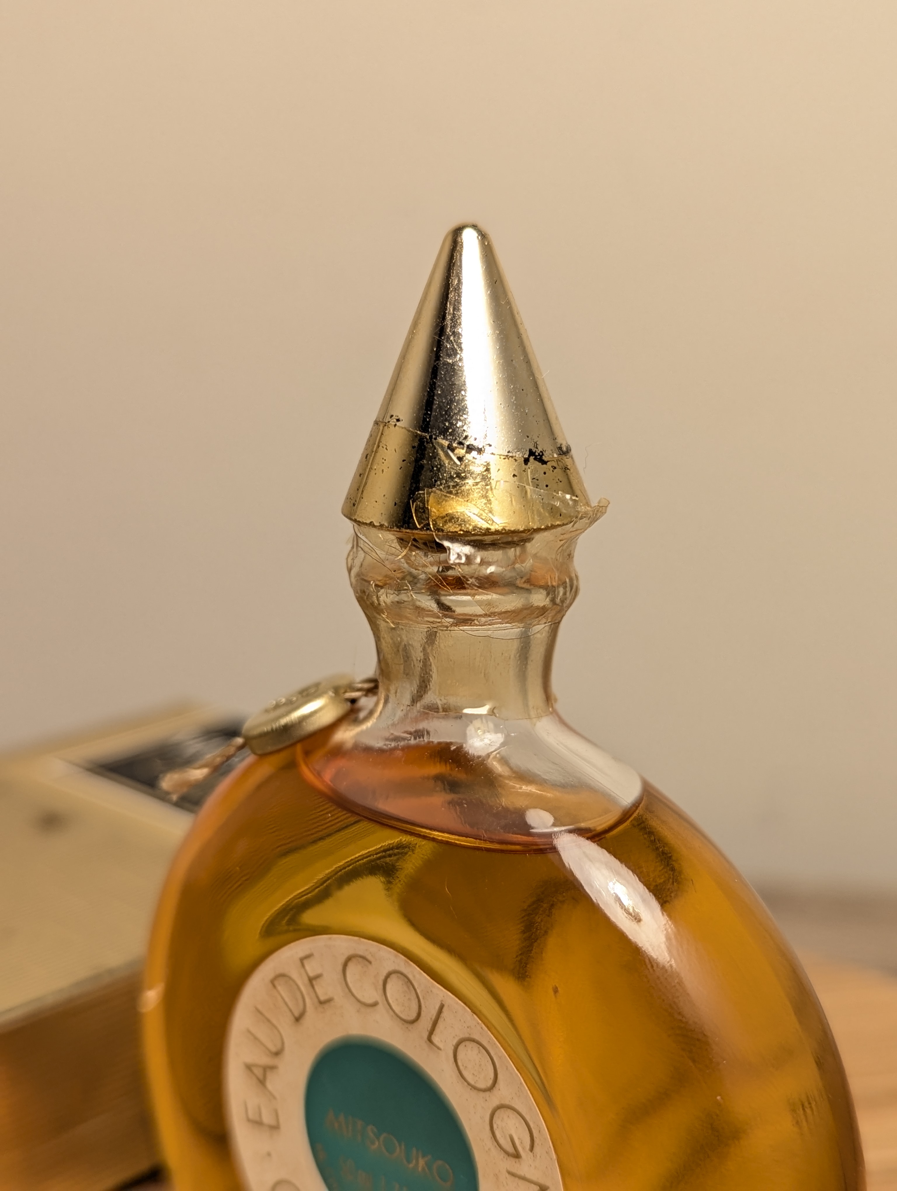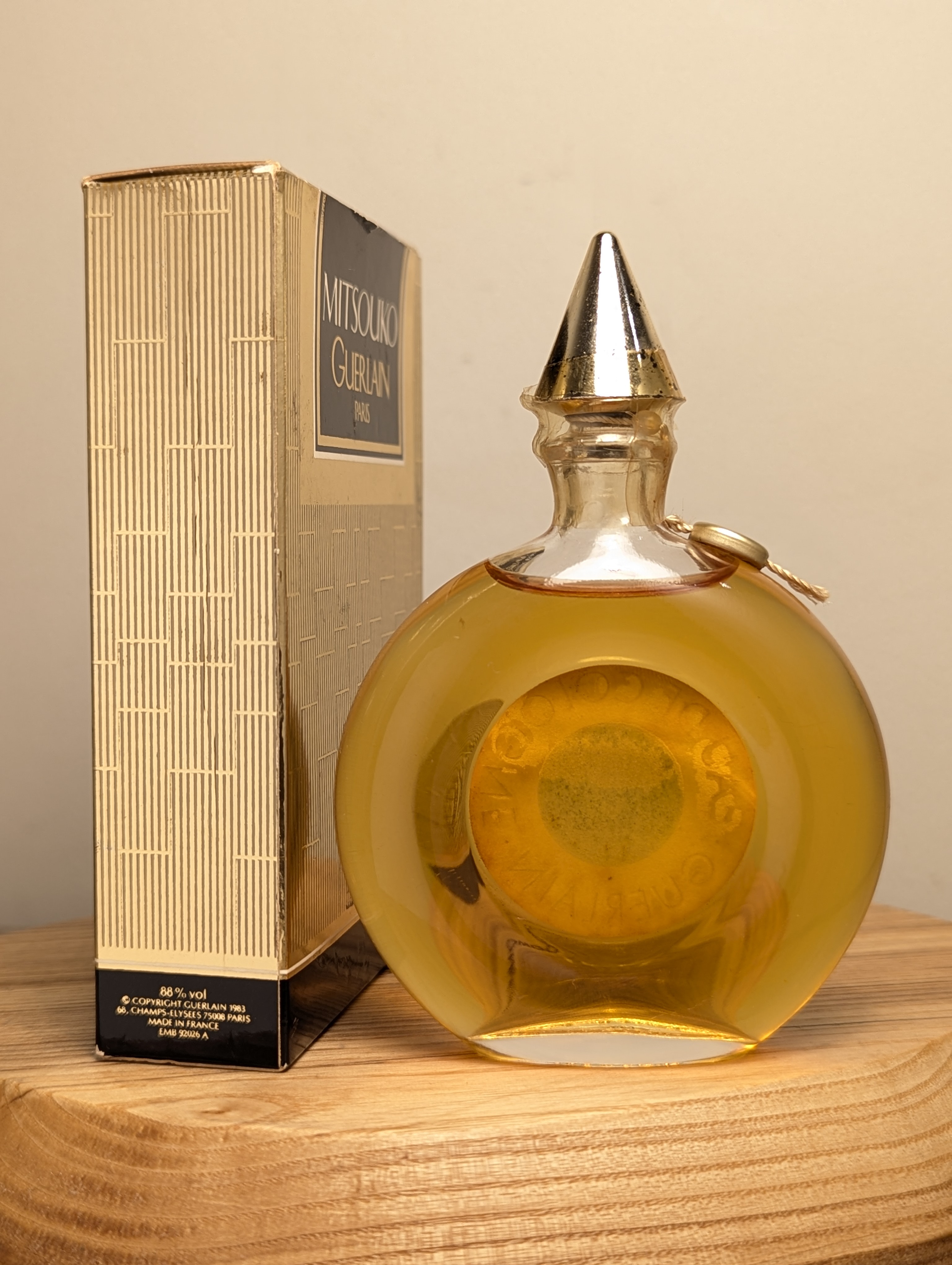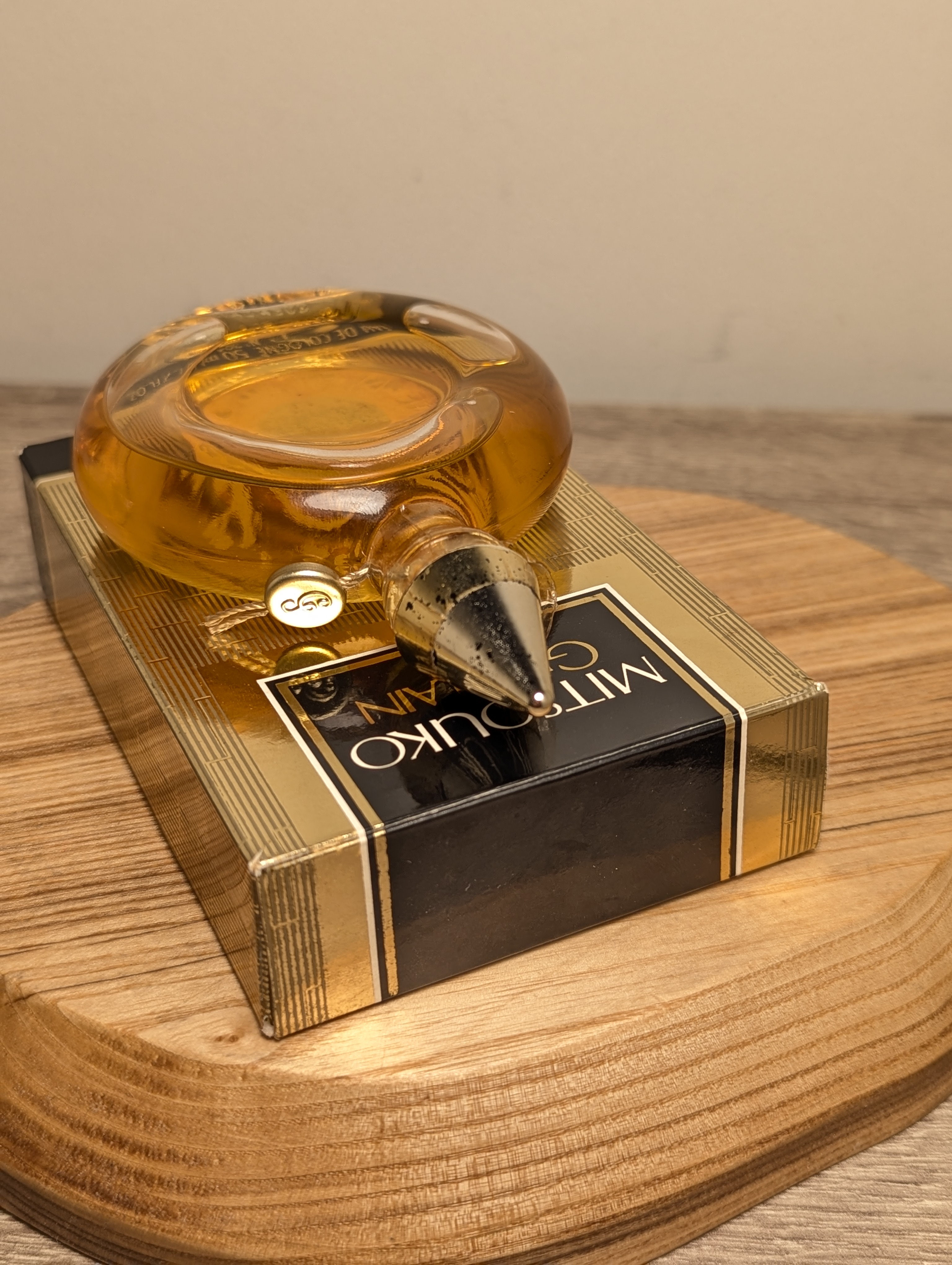 Утончённый винтажный одеколон Guerlain (Герлен) Mitsouko объёмом 50 мл 1990-х годов выпуска, флакон сплэш (пальчик, не спрей), под пломбой.