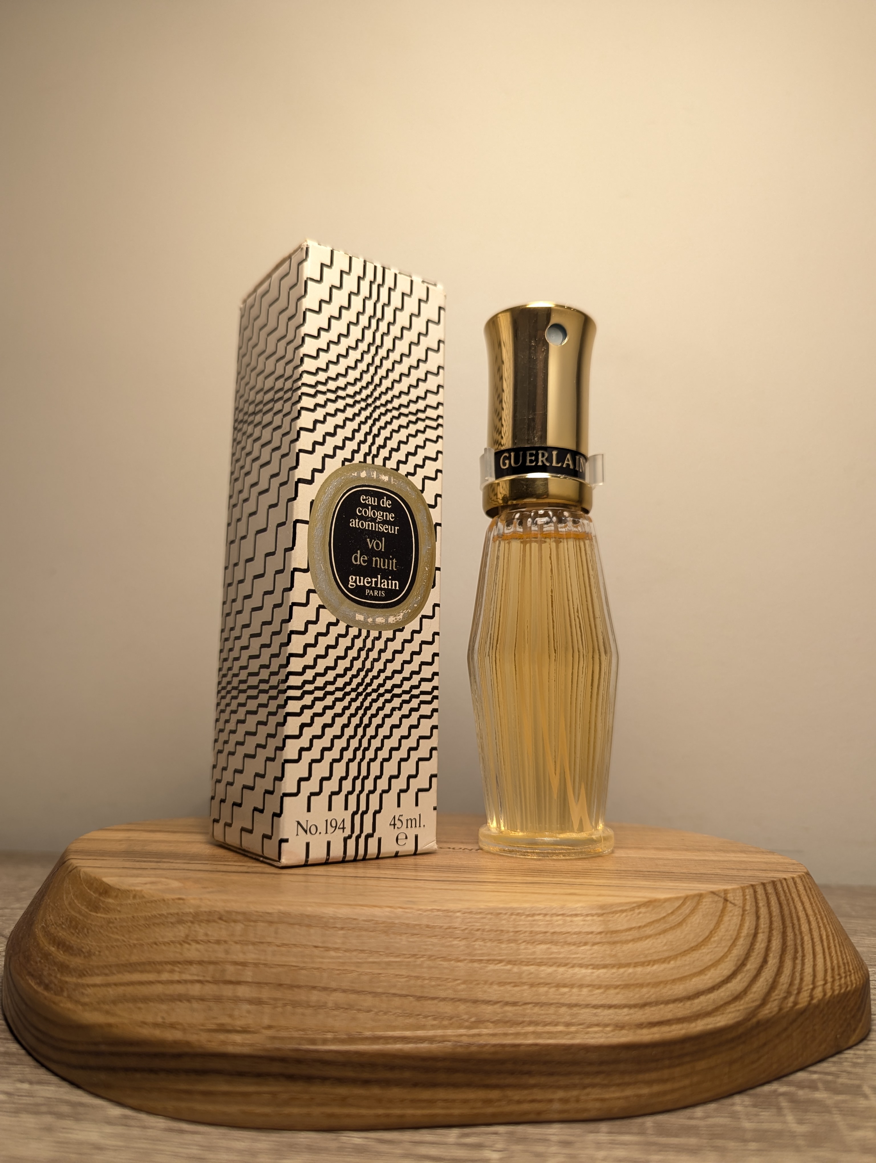 Утончённый винтажный одеколон Guerlain Vol de Nuit (Герлен Вол де Нюи) объёмом 45 мл 1970-х годов выпуска, флакон спрей (пульверизатор).