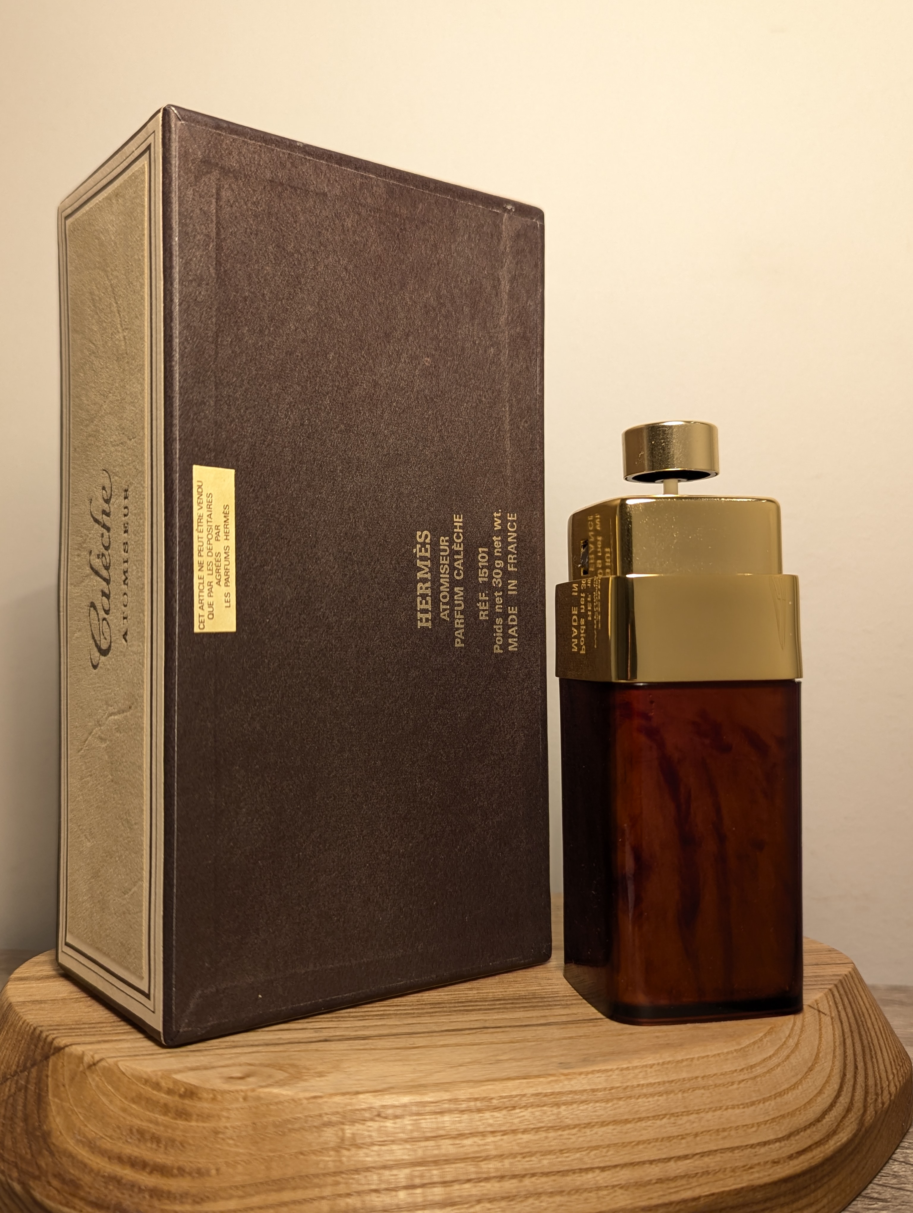 Легендарные винтажные духи Hermes Caleche (Эрмес Калеш) объёмом 30 мл 1960-х годов выпуска, флакон спрей-атомайзер (пульверизатор: парфюм + газ). Слюда вскрыта мной.