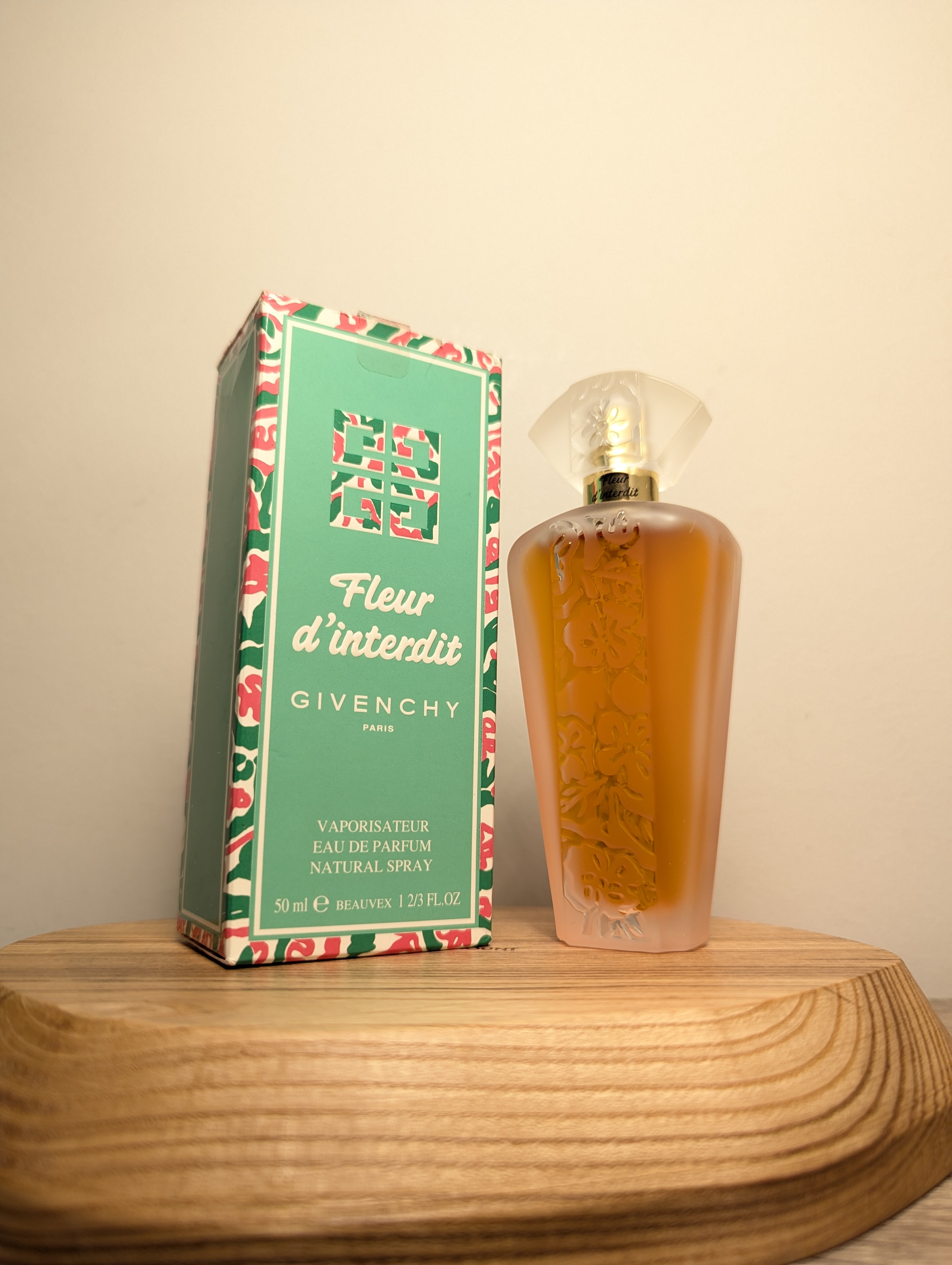 Утончённая винтажная парфюмерная вода Givenchy Fleur d'Interdit (Живанши Флёр д'Антерди) объёмом 50 мл 1995 года выпуска, флакон спрей (пульверизатор).