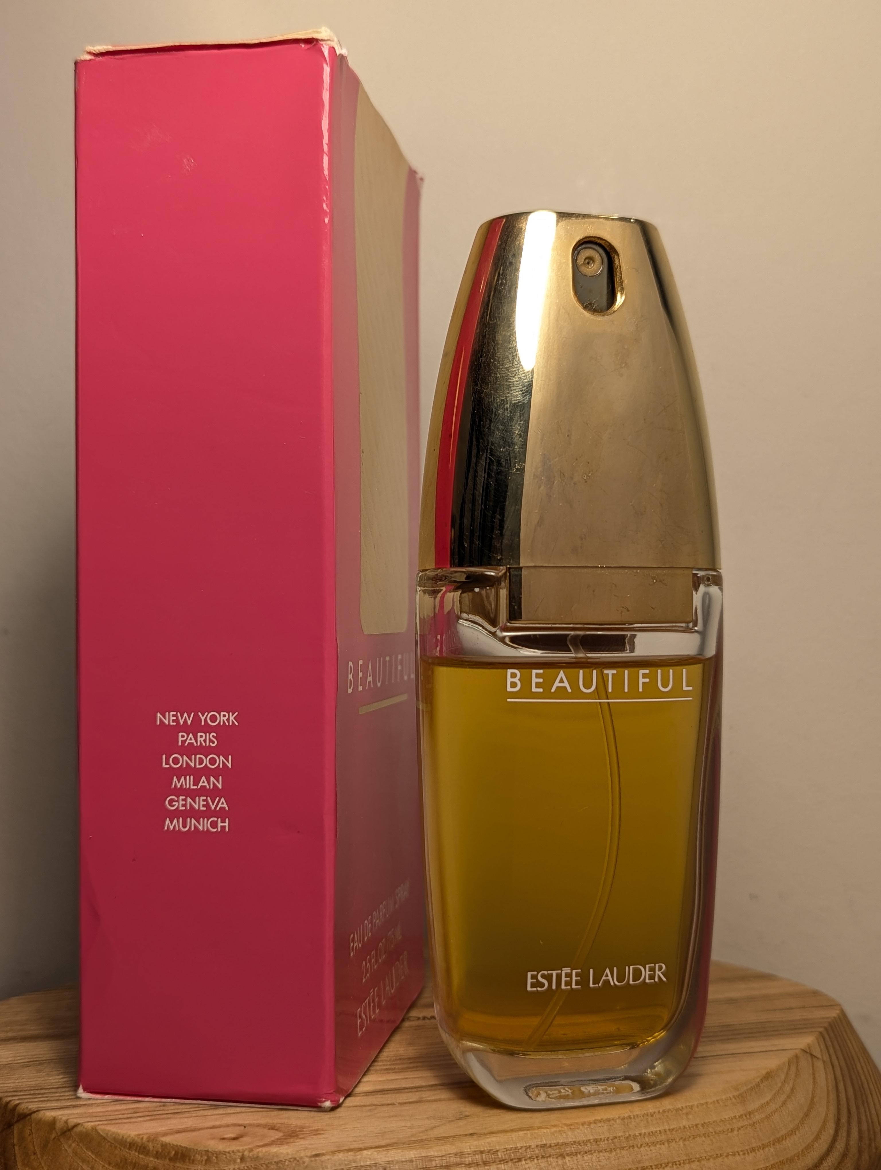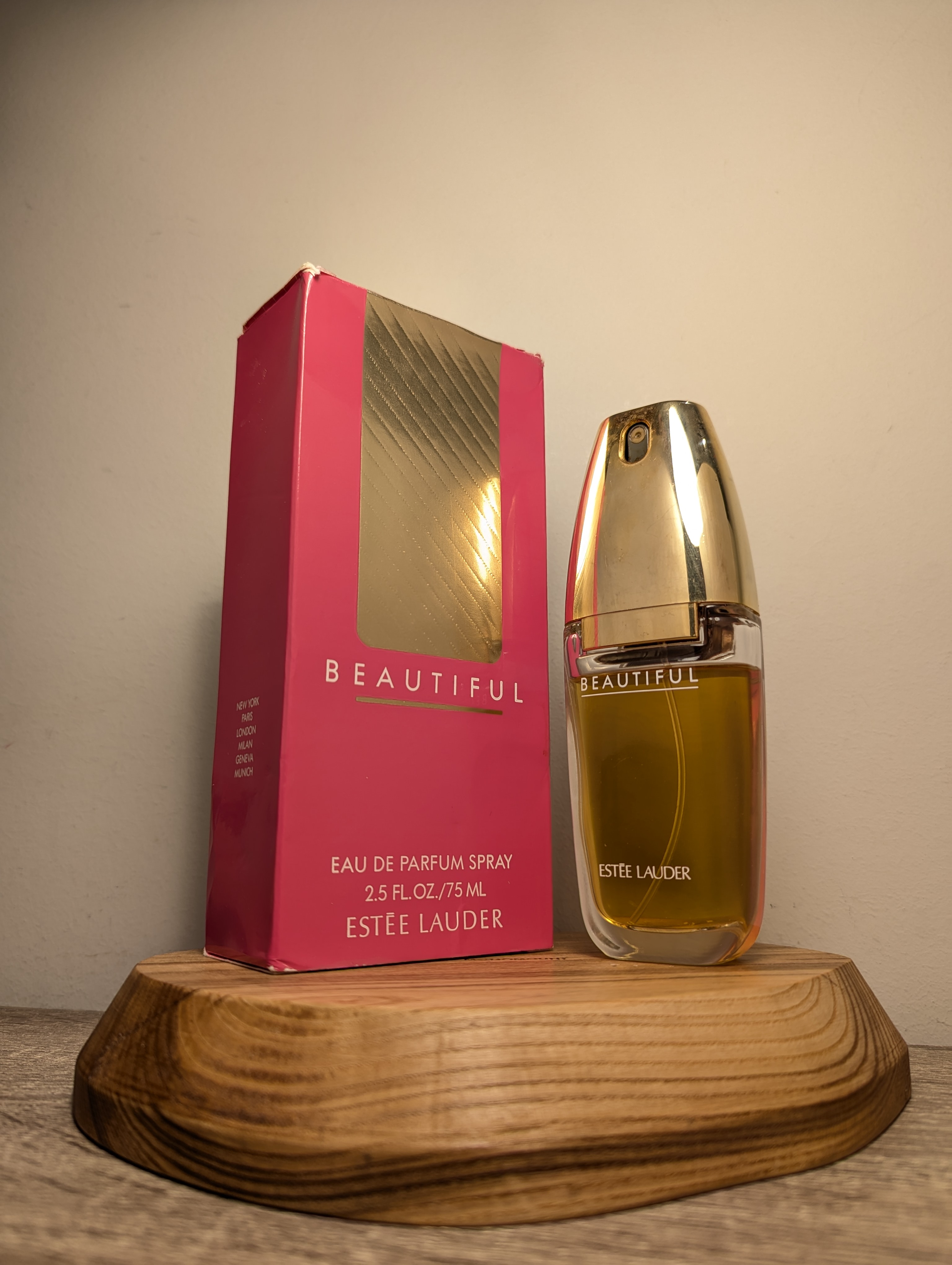 Утончённая винтажная парфюмерная вода Estée Lauder Beautiful (Эсте Лаудер Бьютифул) объёмом 75 мл 1996 года выпуска, флакон спрей (пульверизатор).