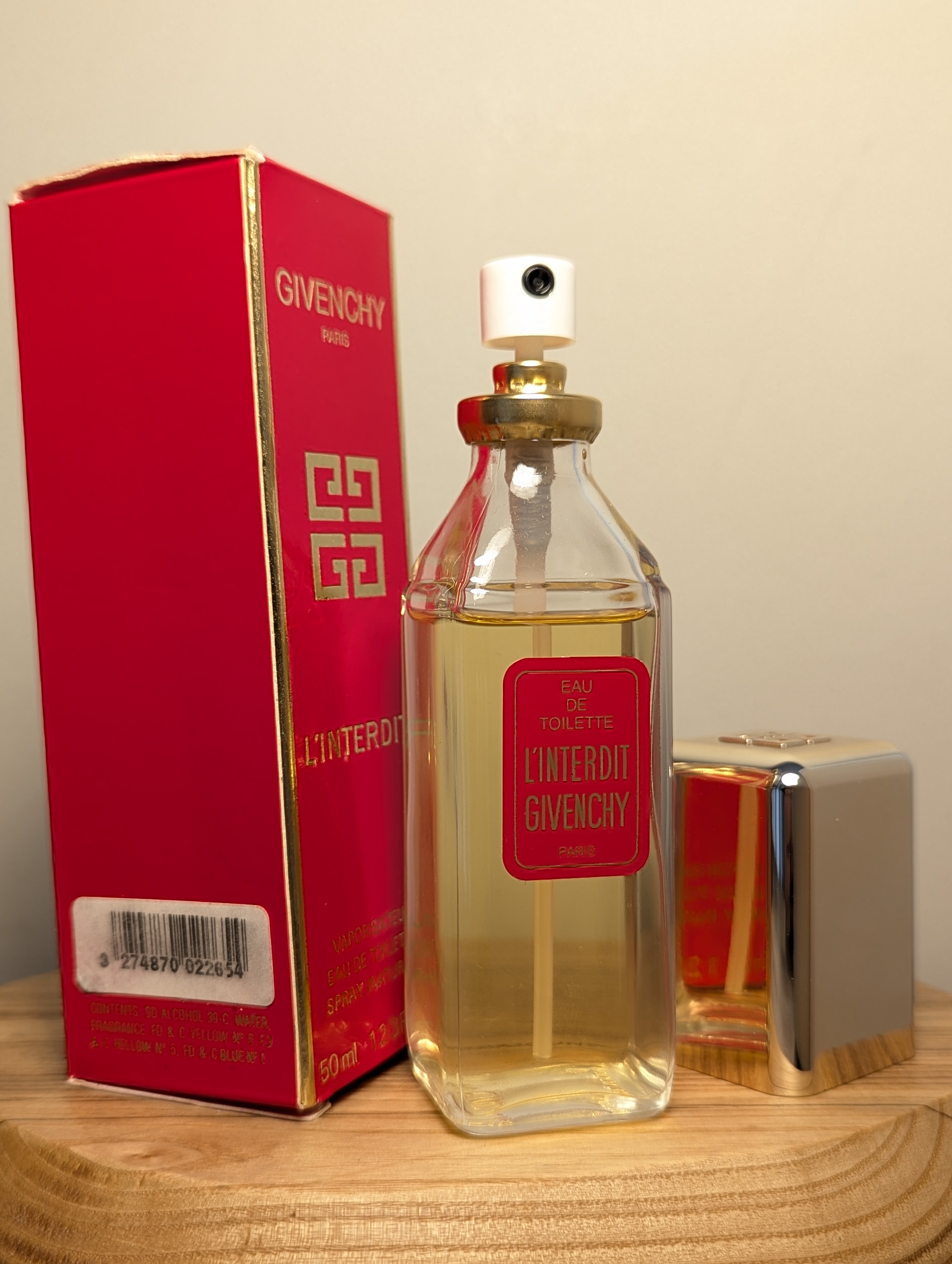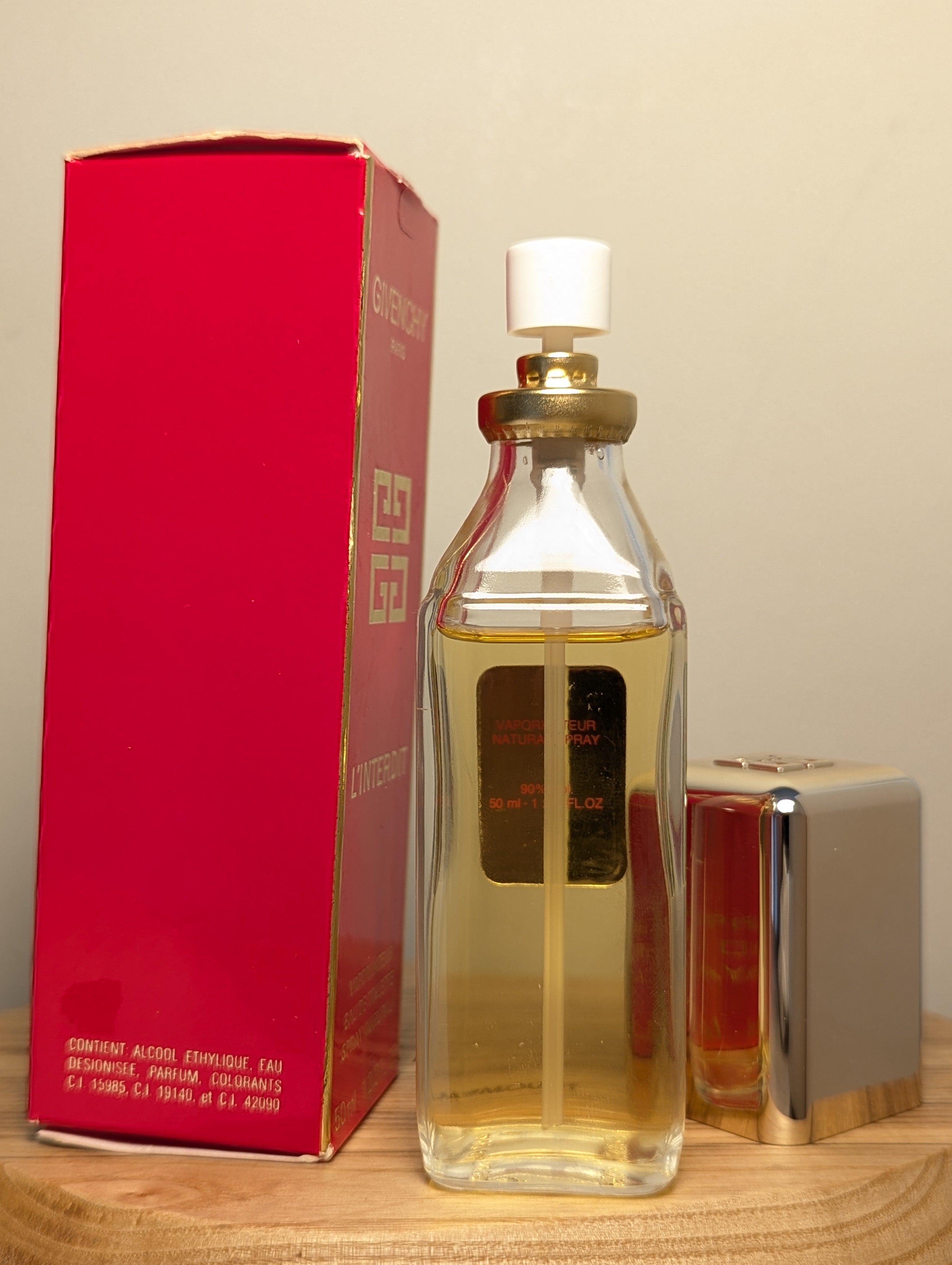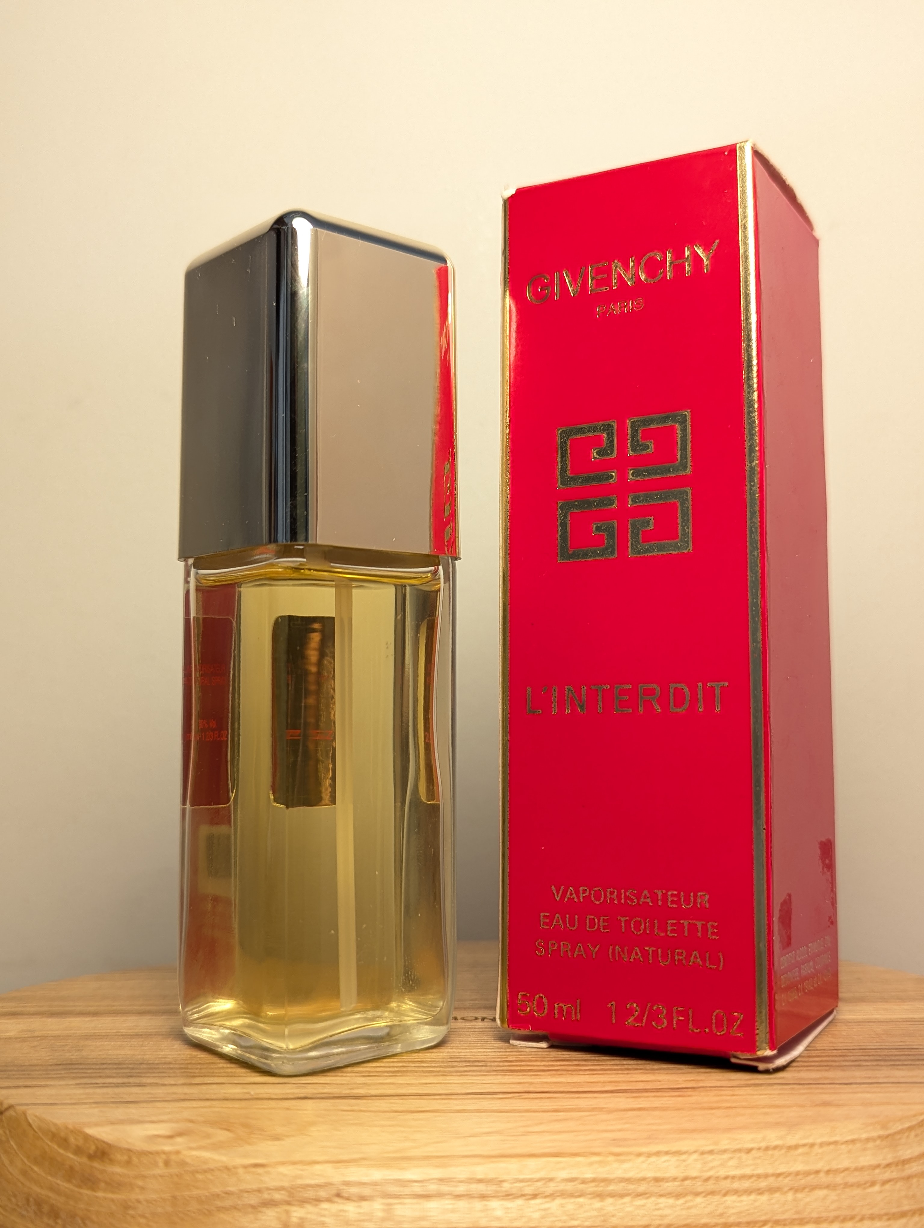 Изысканная винтажная туалетная вода Givenchy L'Interdit (Живанши Ль'Антерди) объёмом 50 мл 1994 года выпуска, флакон спрей (пульверизатор).