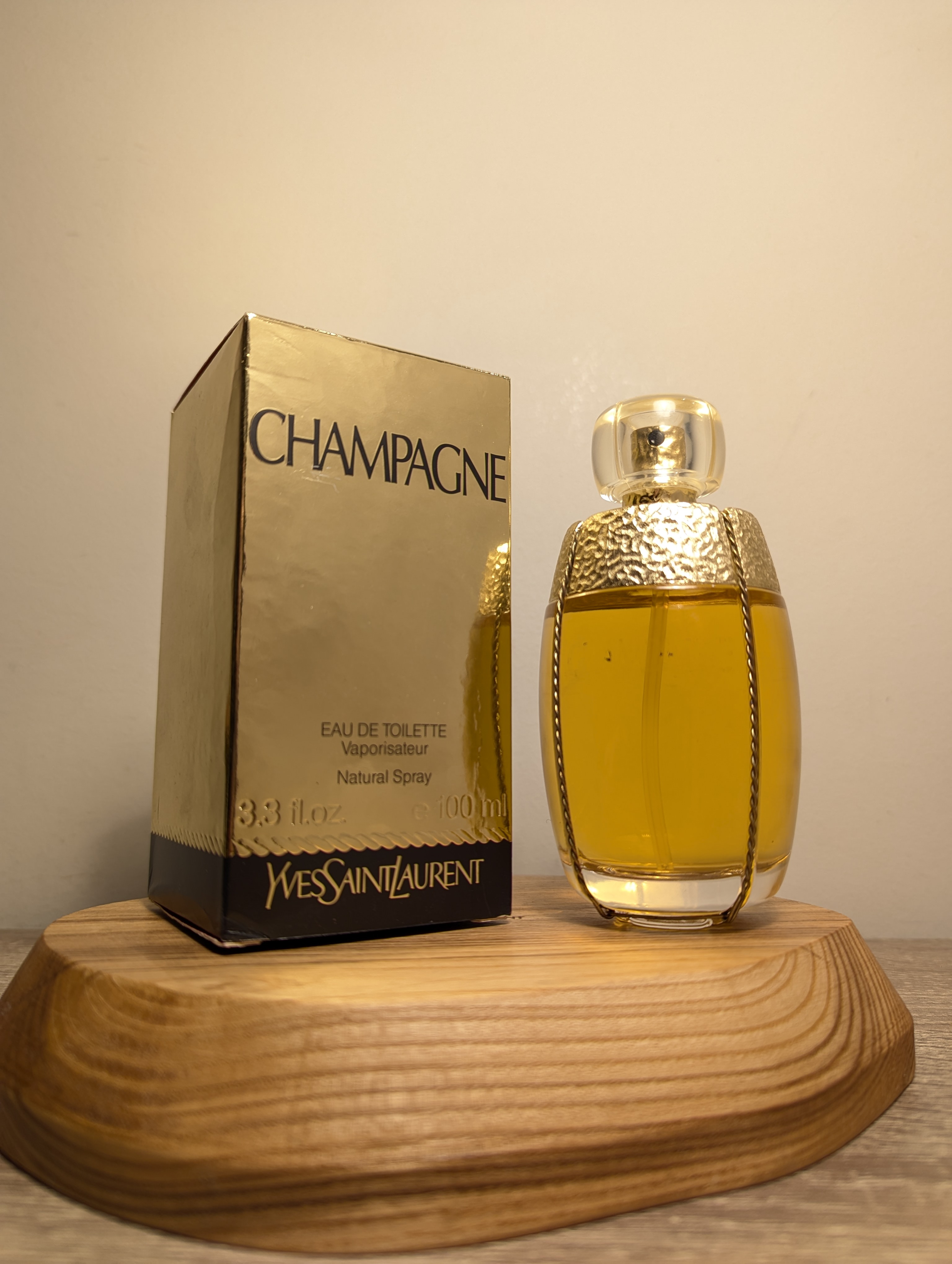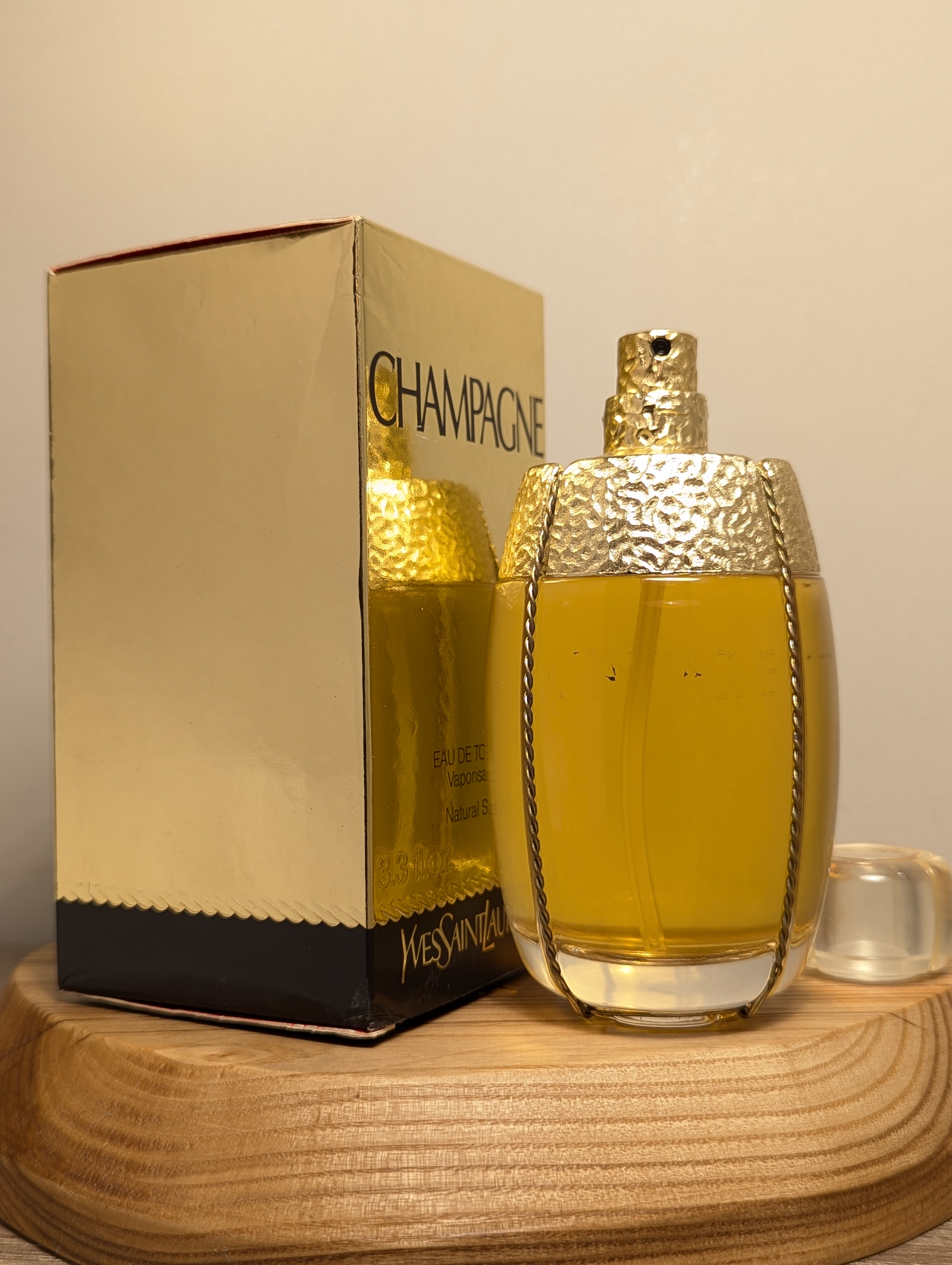 Изысканная винтажная туалетная вода Yves Saint Laurent Champagne (Ив Сен Лоран Шампань) объёмом 100 мл 1993 года выпуска, флакон спрей (пульверизатор), полный.
