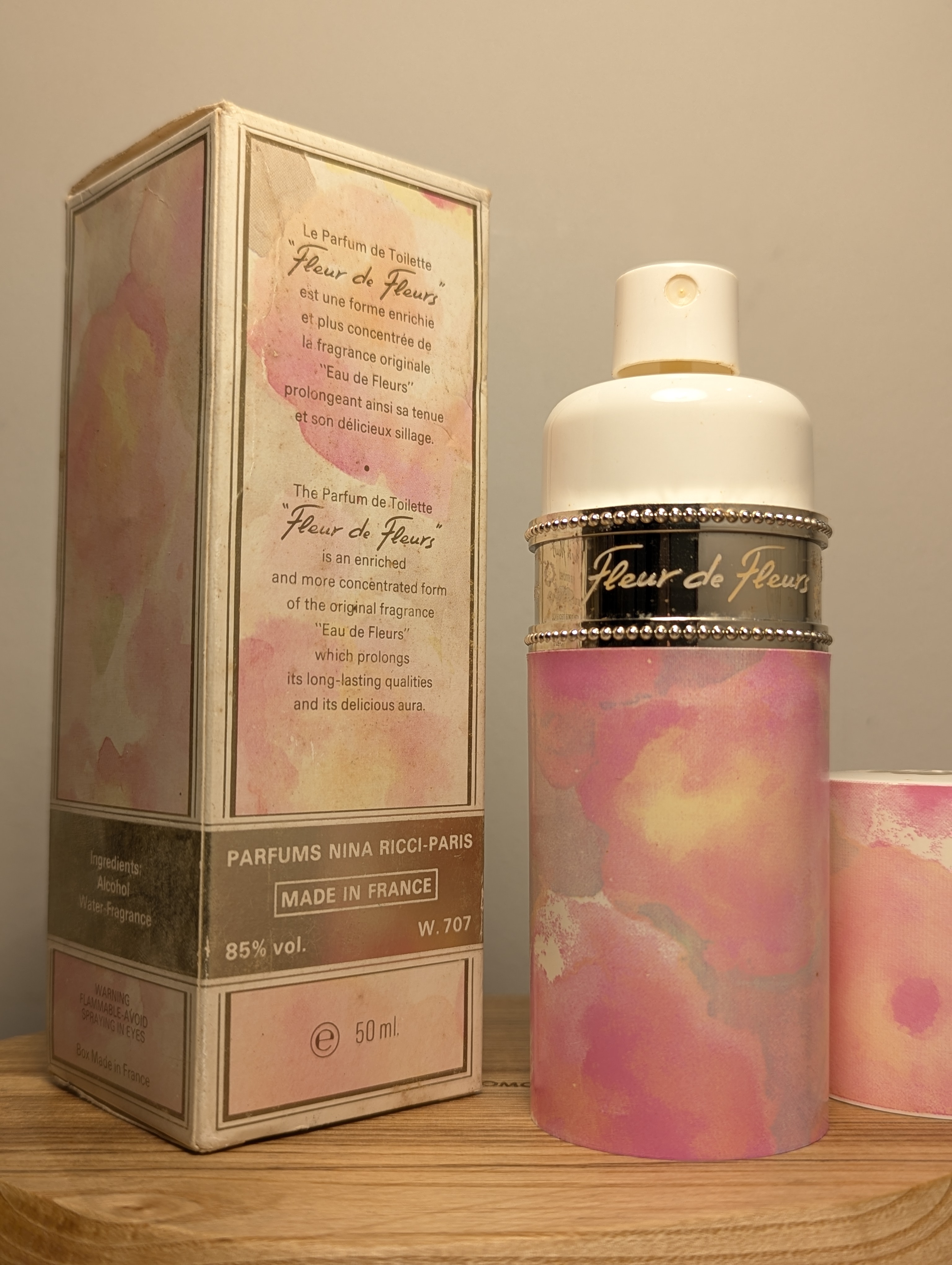Роскошные винтажные дневные духи Nina Ricci Fleur de Fleurs (Нина Ричи Флёр де Флёр) объёмом 50 мл 1986 года выпуска, флакон спрей (пульверизатор), полный — прекрасно на подарок!