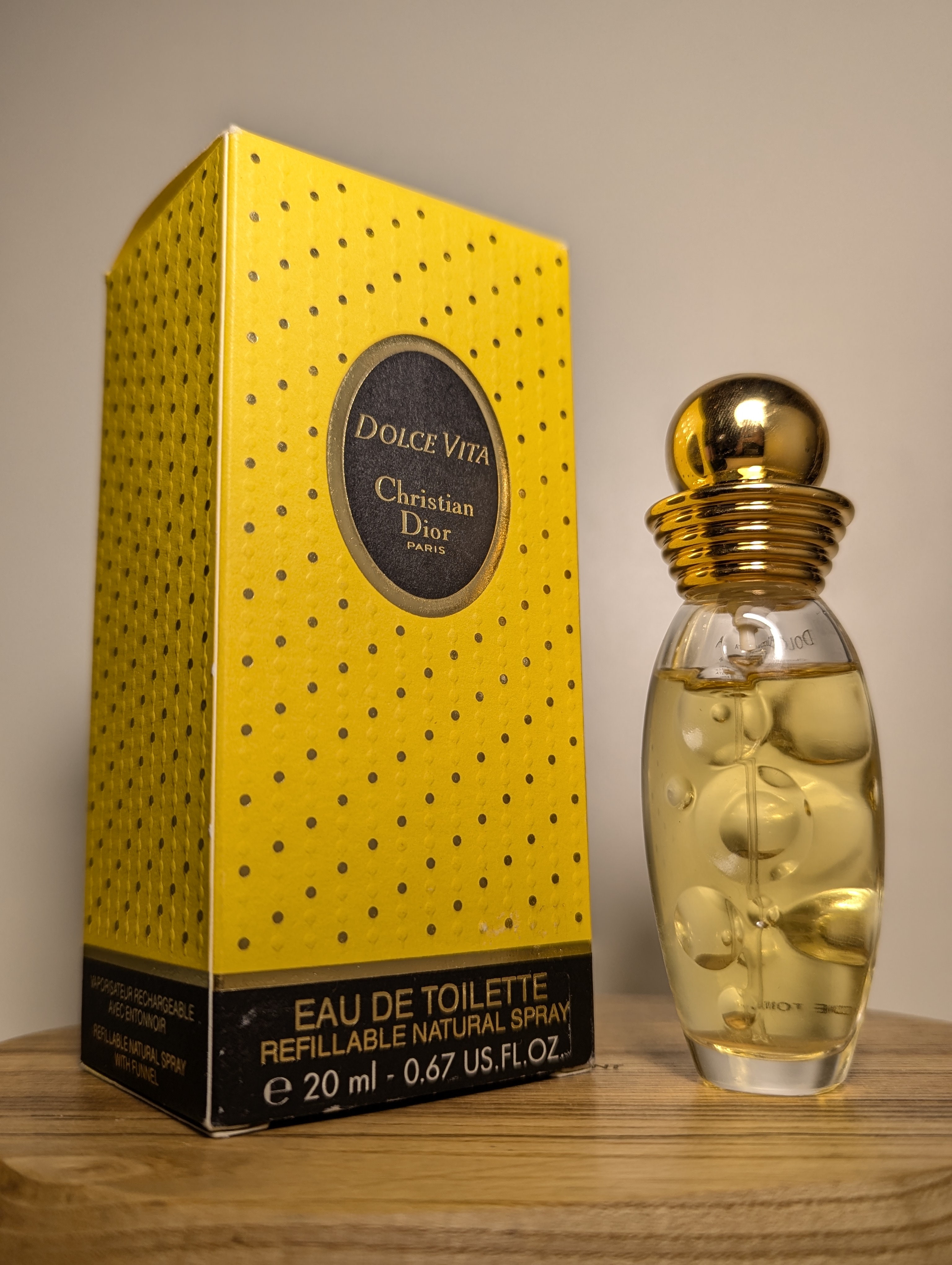 Роскошная винтажная туалетная вода Christian Dior Dolce Vita (Кристиан Диор Дольче Вита) объёмом 20 мл 1996 года выпуска, флакон спрей (пульверизатор).