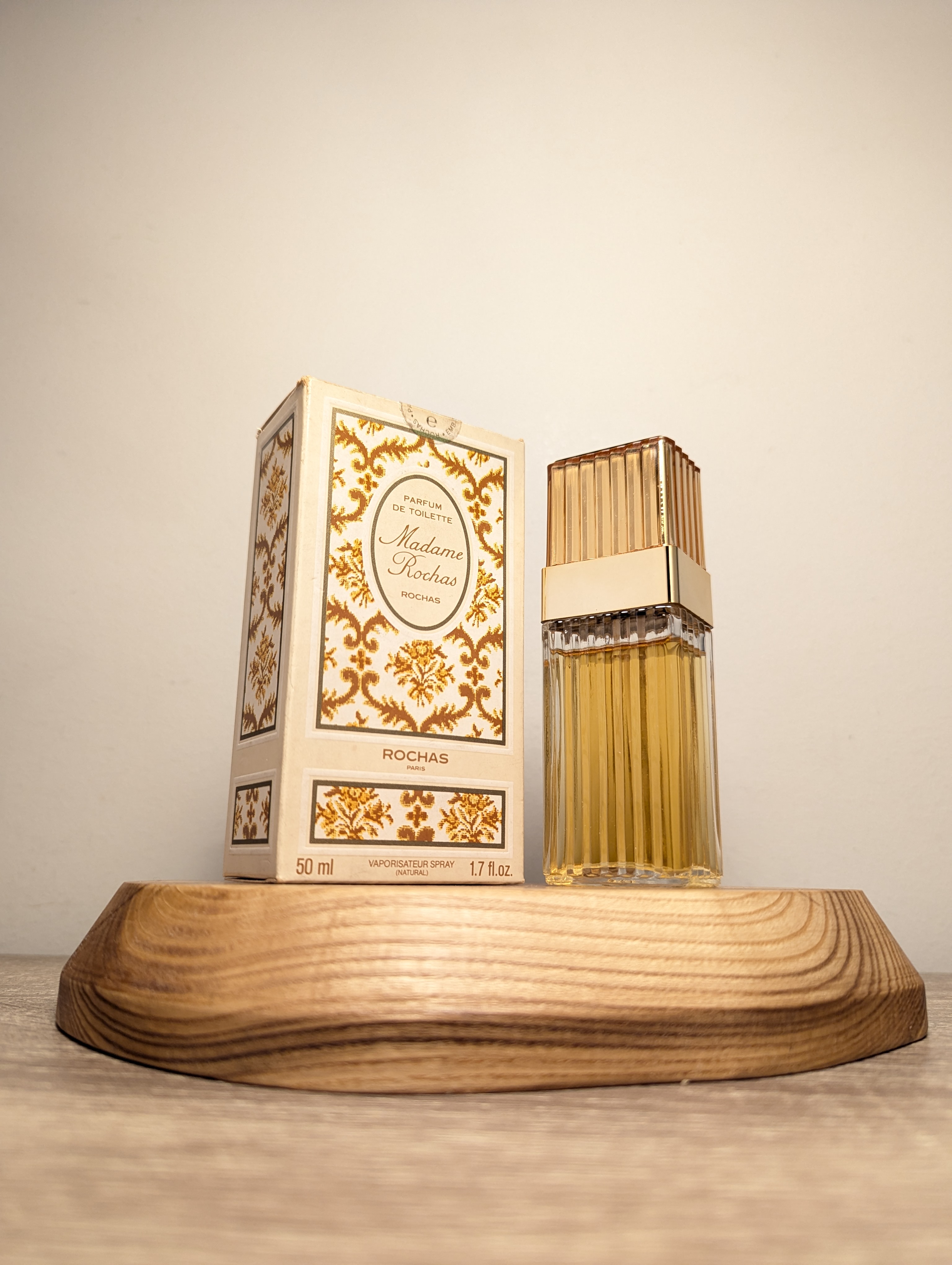 Изысканные винтажные дневные духи Rochas Madame Rochas (Роша Мадам Роша) объёмом 50 мл 1983 года выпуска, флакон спрей (пульверизатор).