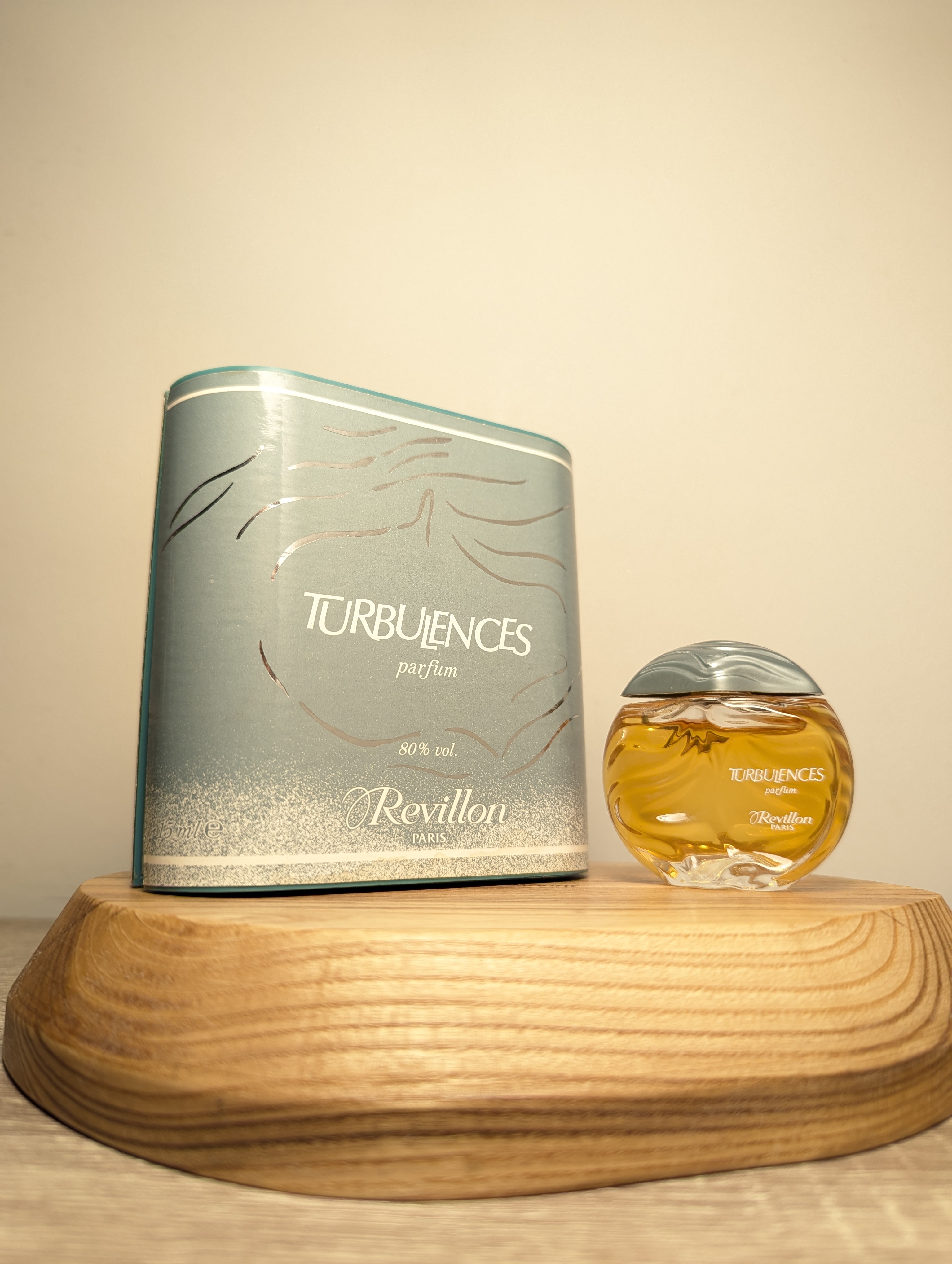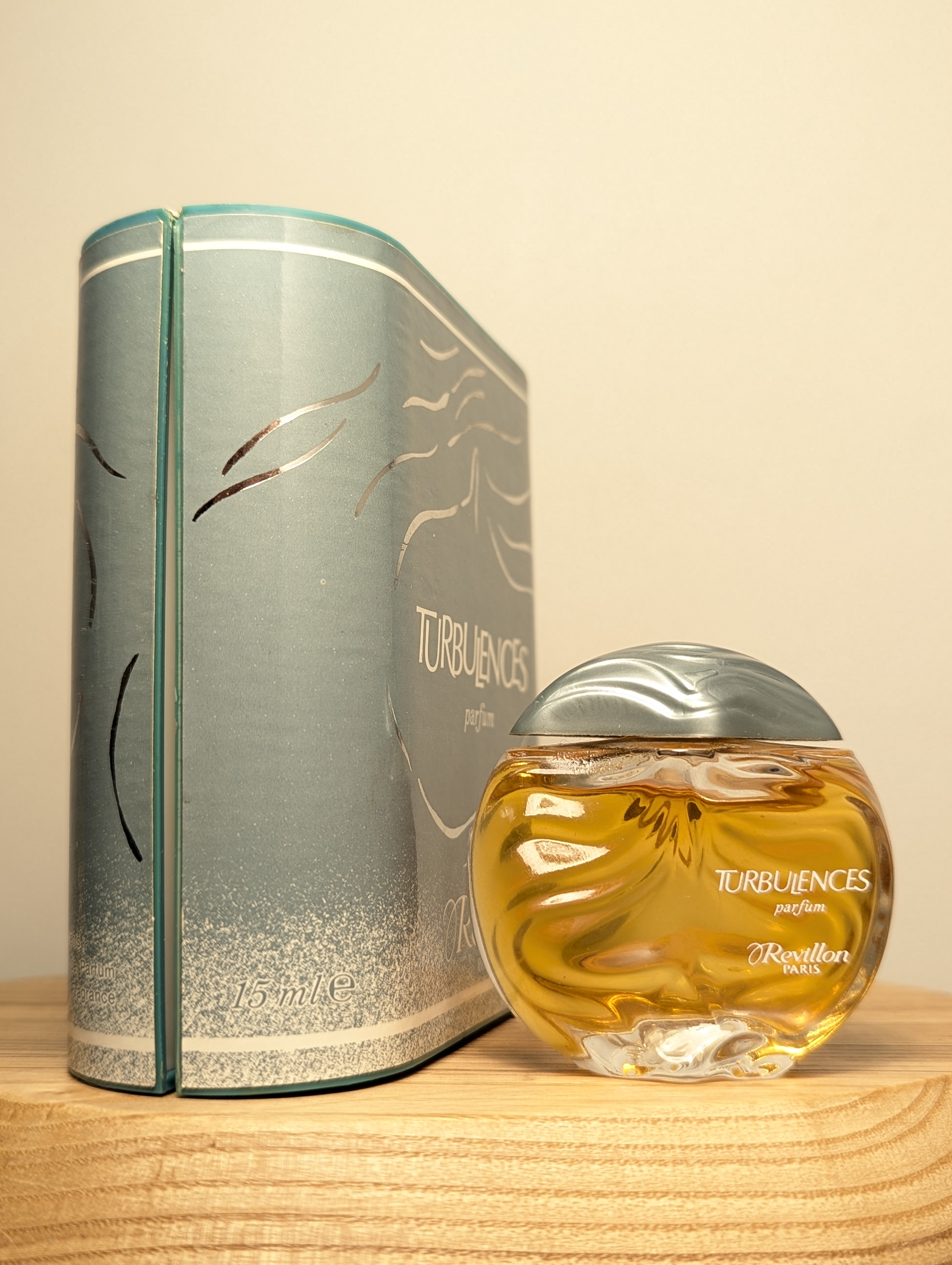 Изысканные винтажные духи Revillon Turbulences (Ревийон Турбуланс) объёмом 15 мл 1980-х годов выпуска, флакон сплэш (пальчик, не спрей), полный.