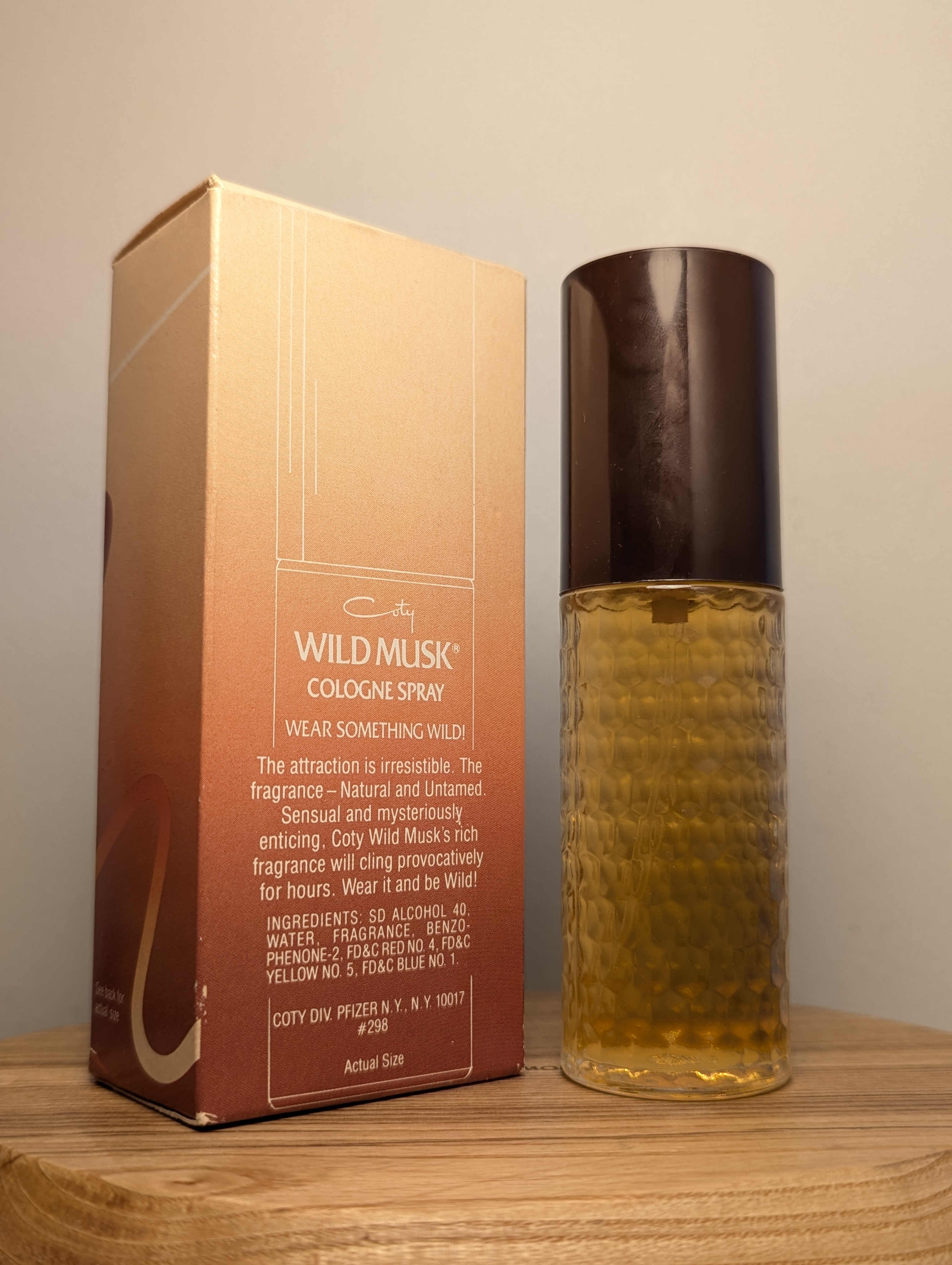 Изысканный винтажный одеколон Coty Wild Musk (Коти Уайлд Маск) объёмом 45 мл 1990-х годов выпуска, флакон спрей (пульверизатор), полный — прекрасно на подарок!