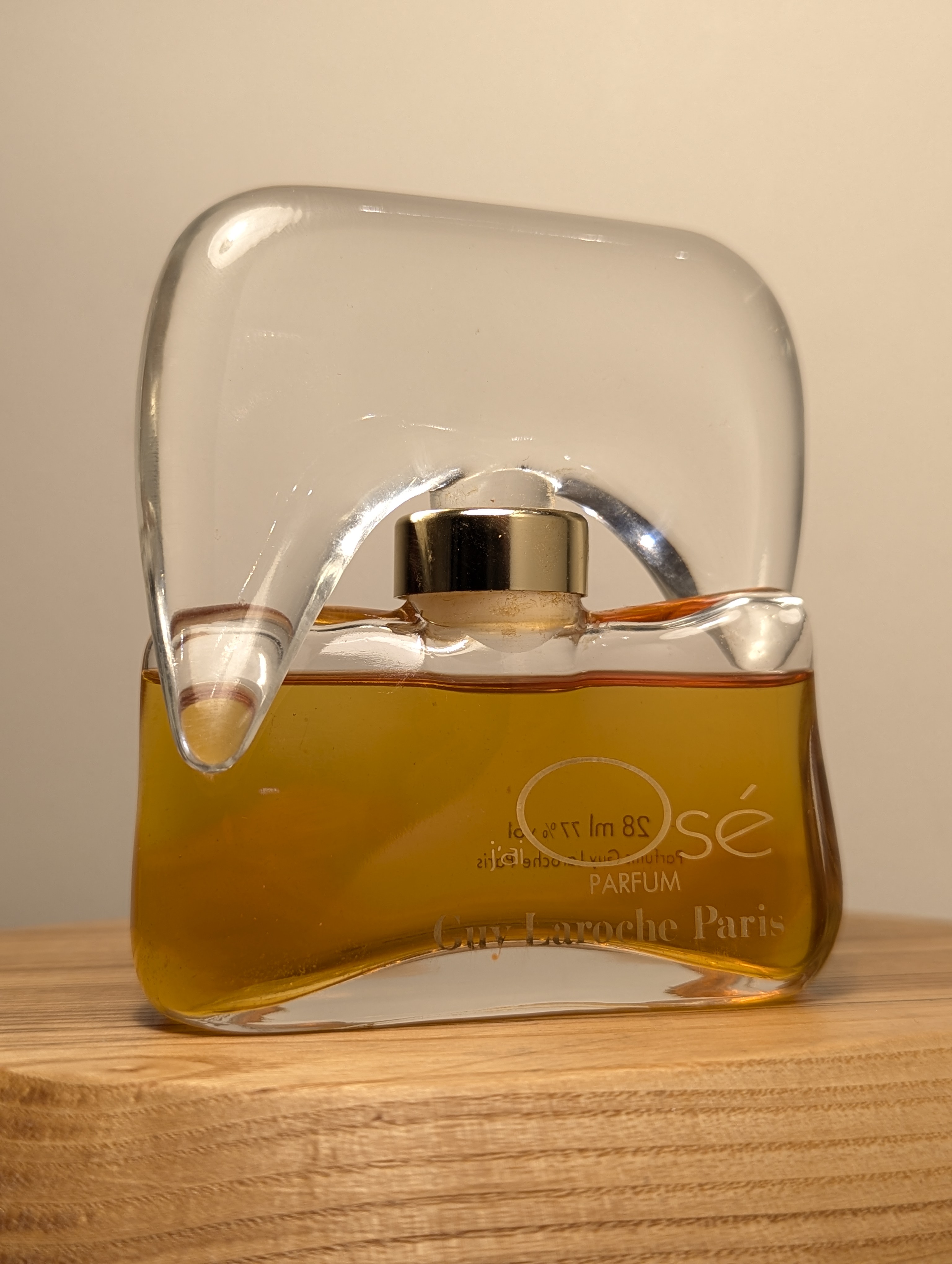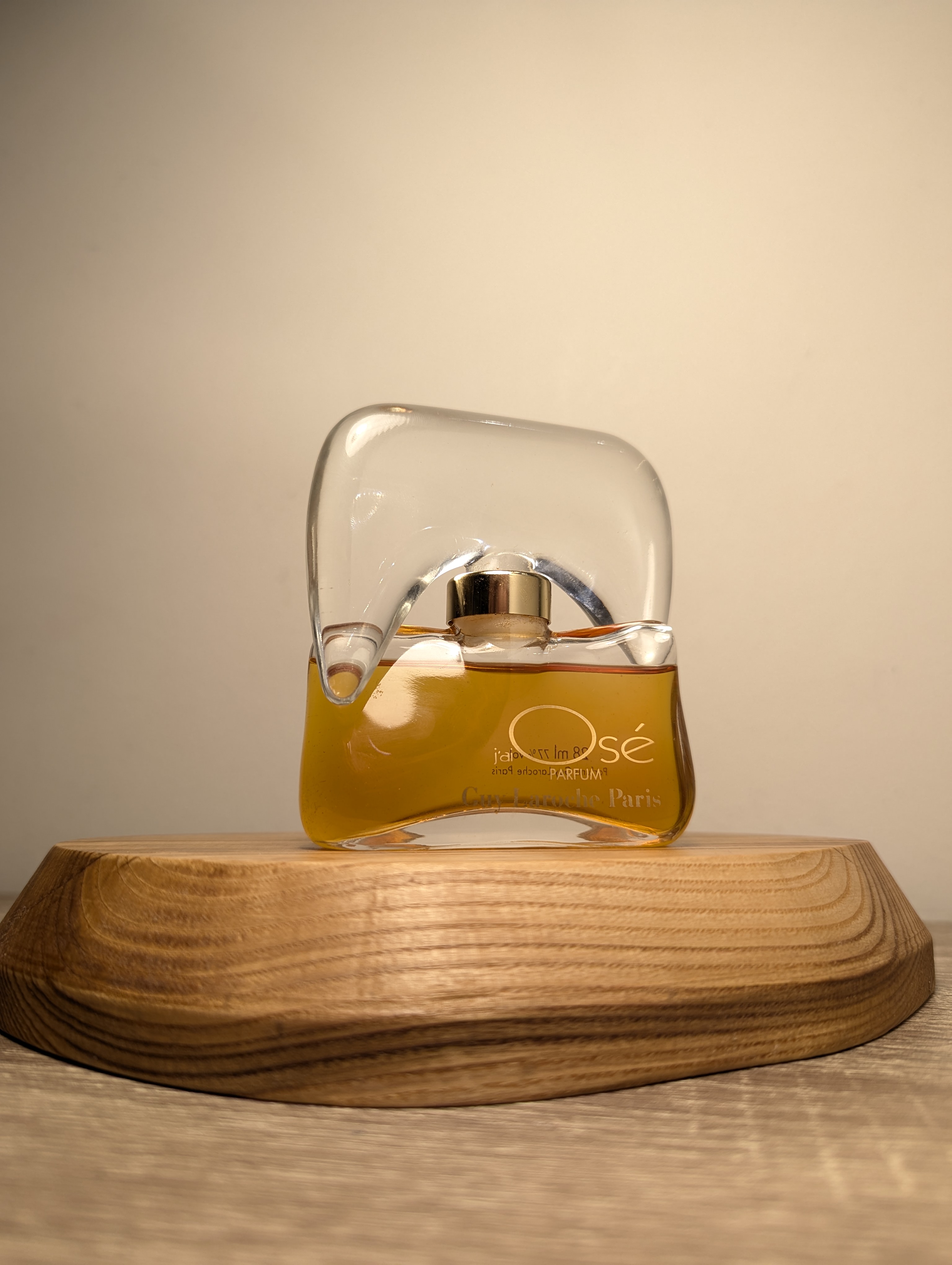 Изысканные винтажные духи Guy Laroche Jai Ose (Ги Ларош Же Озе) объёмом 28 мл 1987 года выпуска, флакон сплэш (пальчик, не спрей), без коробочки.