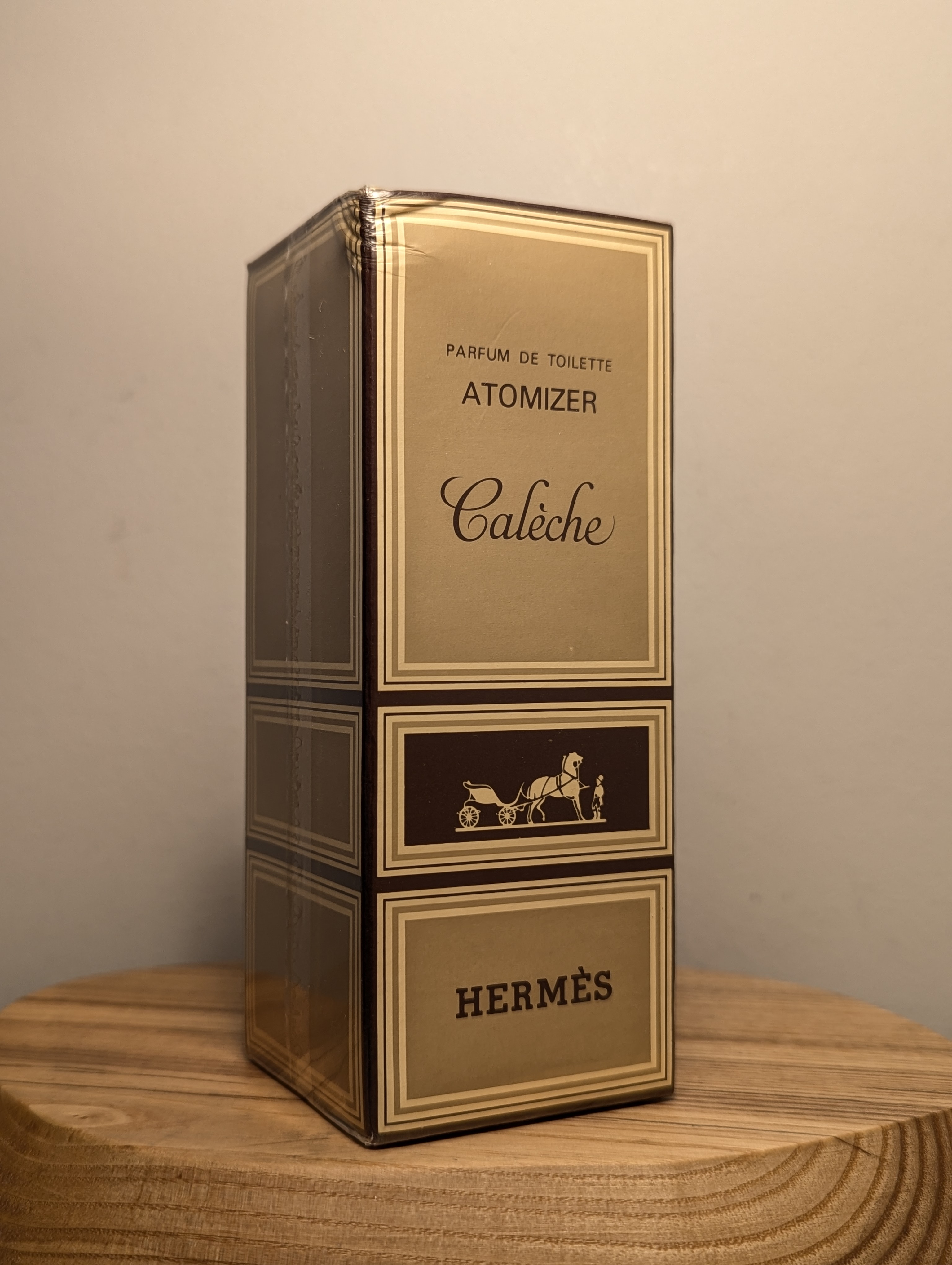 Роскошные винтажные дневные духи Hermes Caleche (Эрмес Калеш) объёмом 58 мл 1960-х годов выпуска, флакон спрей-атомайзер (пульверизатор: парфюм + газ), в слюде — идеально на подарок!