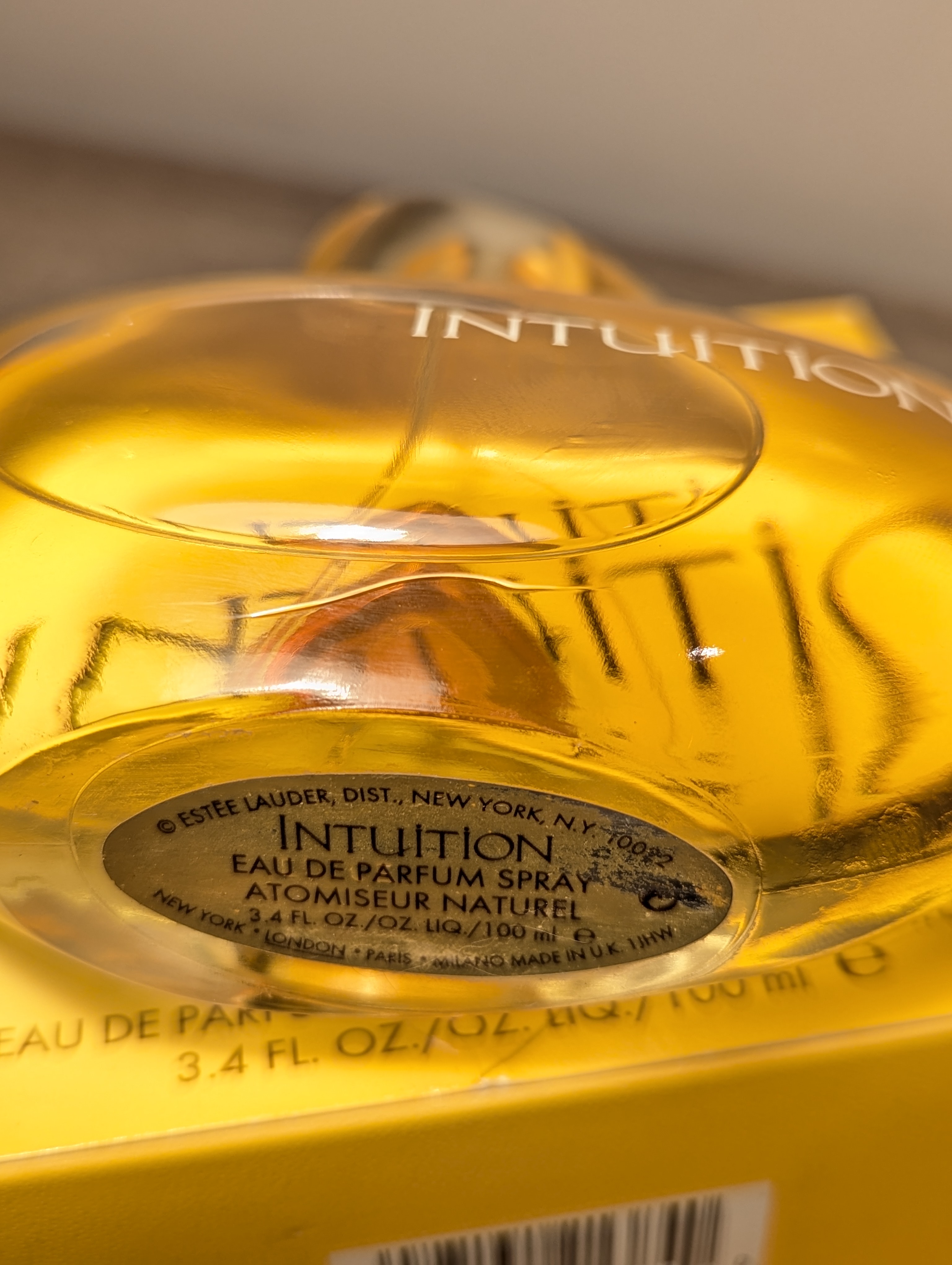 Легендарная парфюмерная вода Estee Lauder Intuition (Эсте Лаудер Интуишн) объёмом 100 мл 2007 года выпуска, флакон спрей (пульверизатор), полный — прекрасно на подарок!