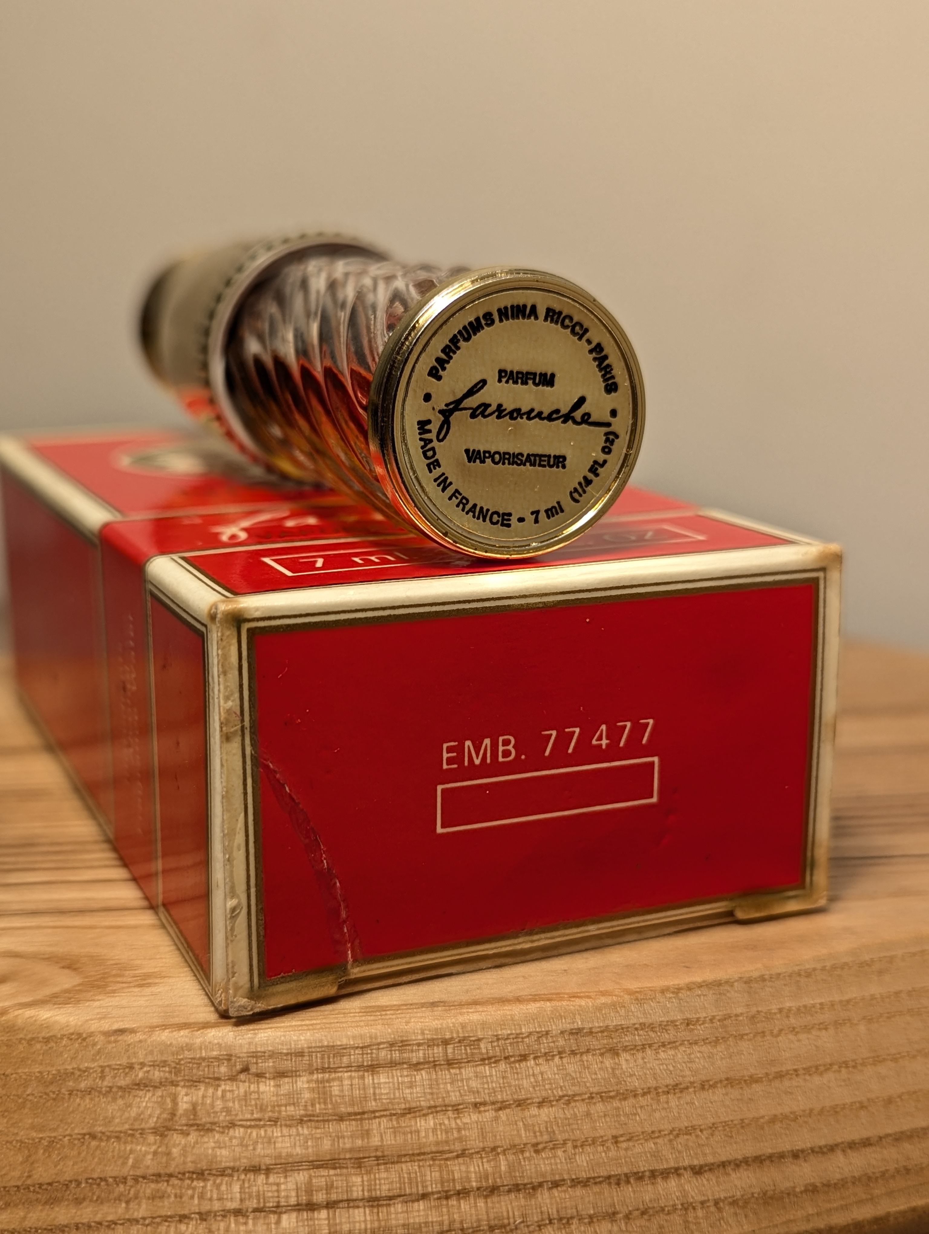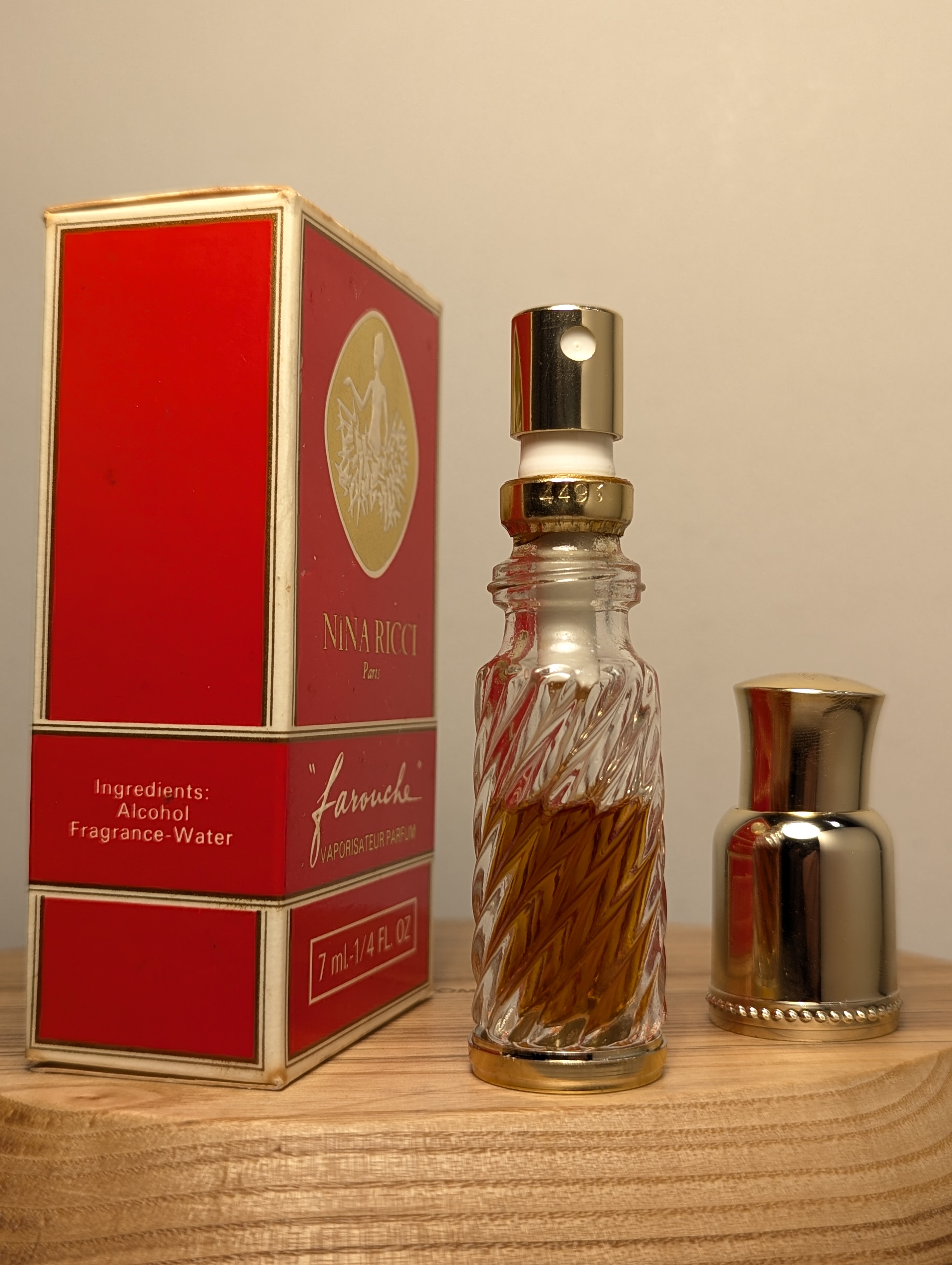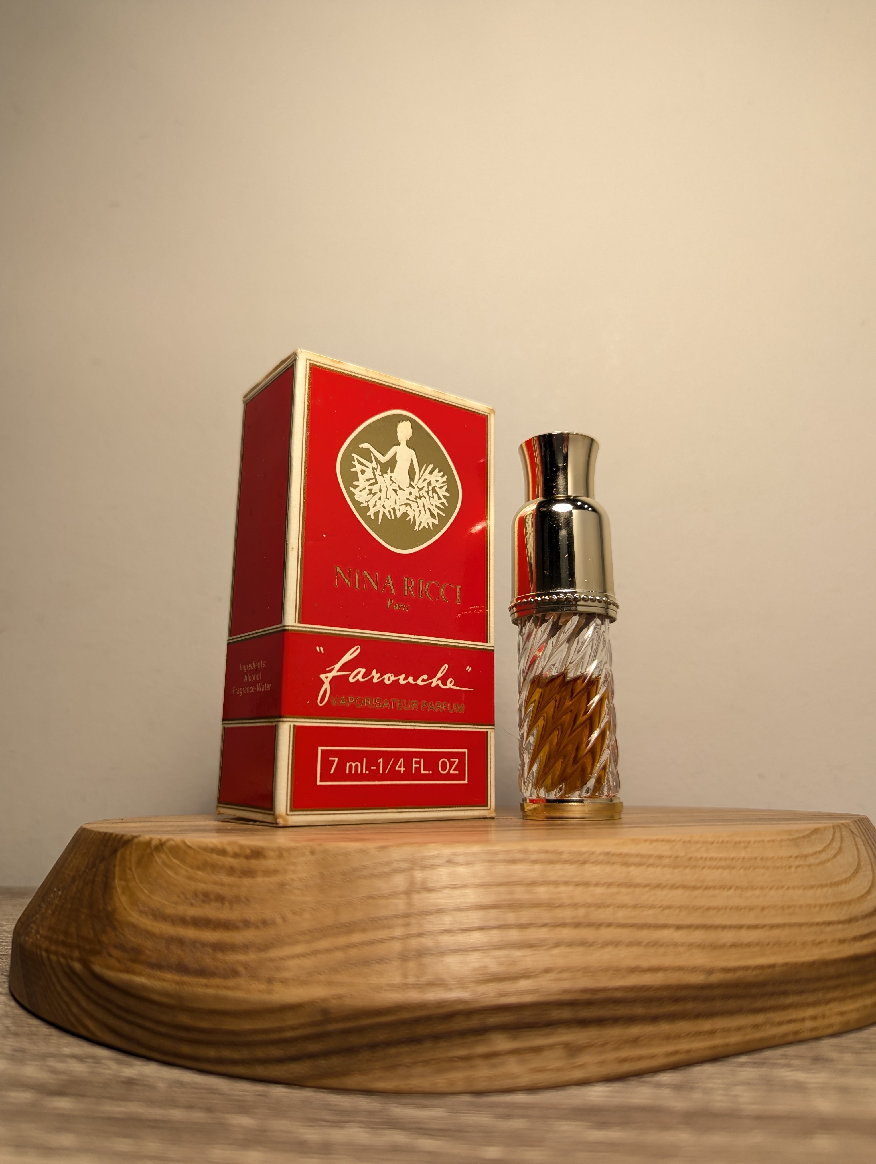 Легендарные винтажные духи Nina Ricci Farouche (Нина Ричи Фаруш) объёмом 7 мл 1980-х годов выпуска, флакон спрей (пульверизатор).