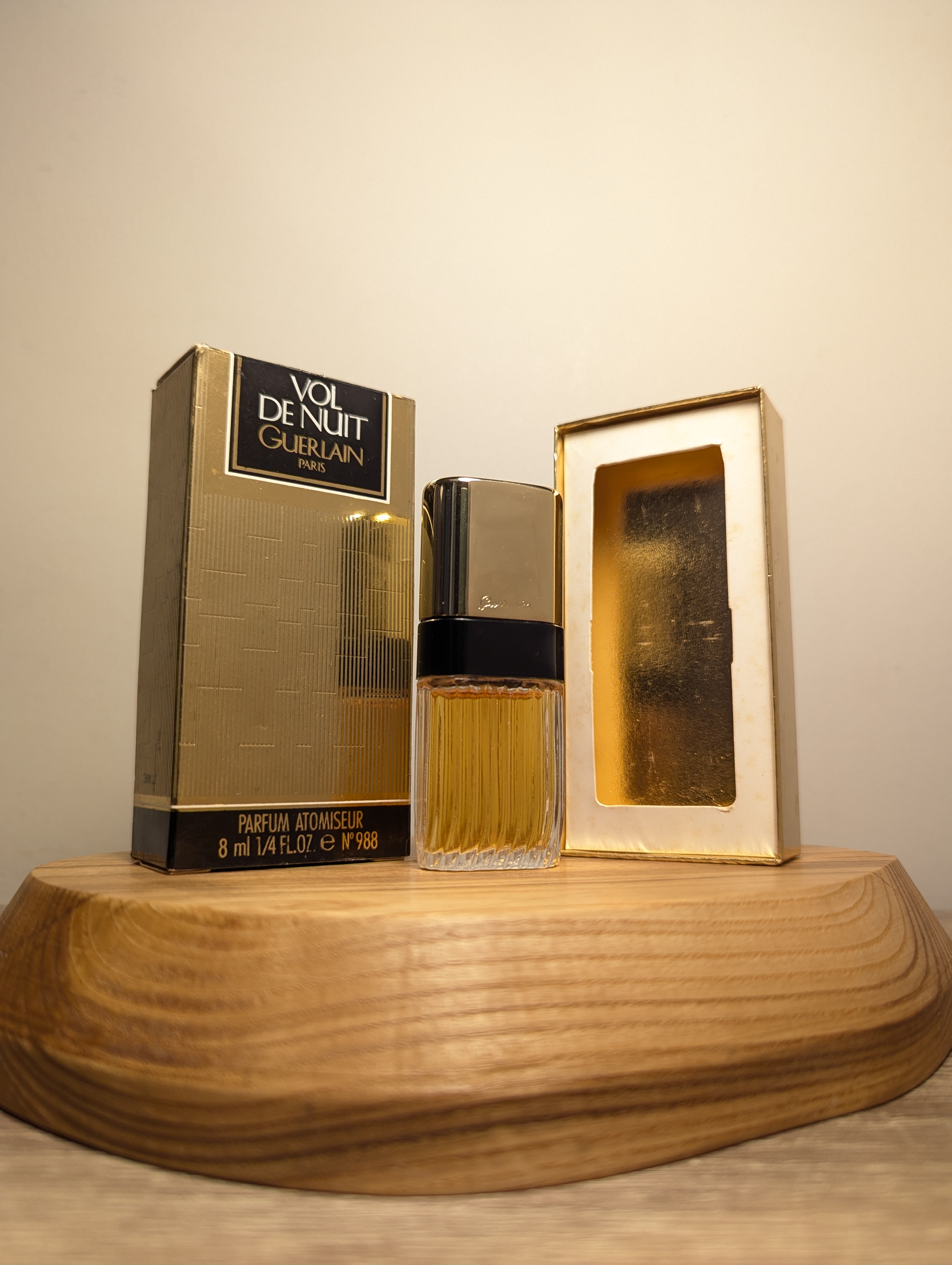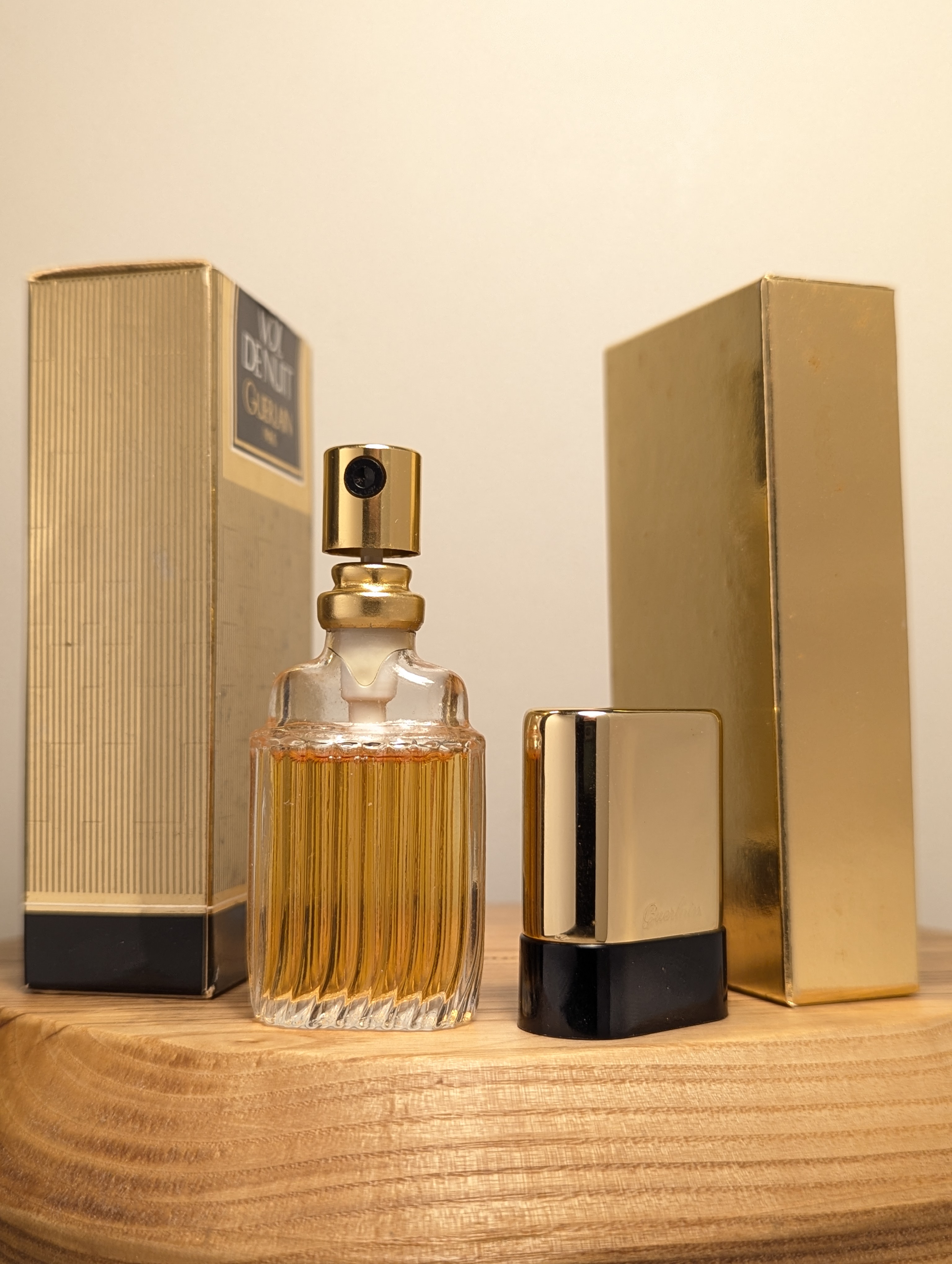 Легендарные винтажные духи Guerlain Vol de Nuit (Герлен Вол де Нюи) объёмом 8 мл 1989 года выпуска, флакон спрей-атомайзер (пульверизатор: парфюм + газ), полный — прекрасно на подарок!
