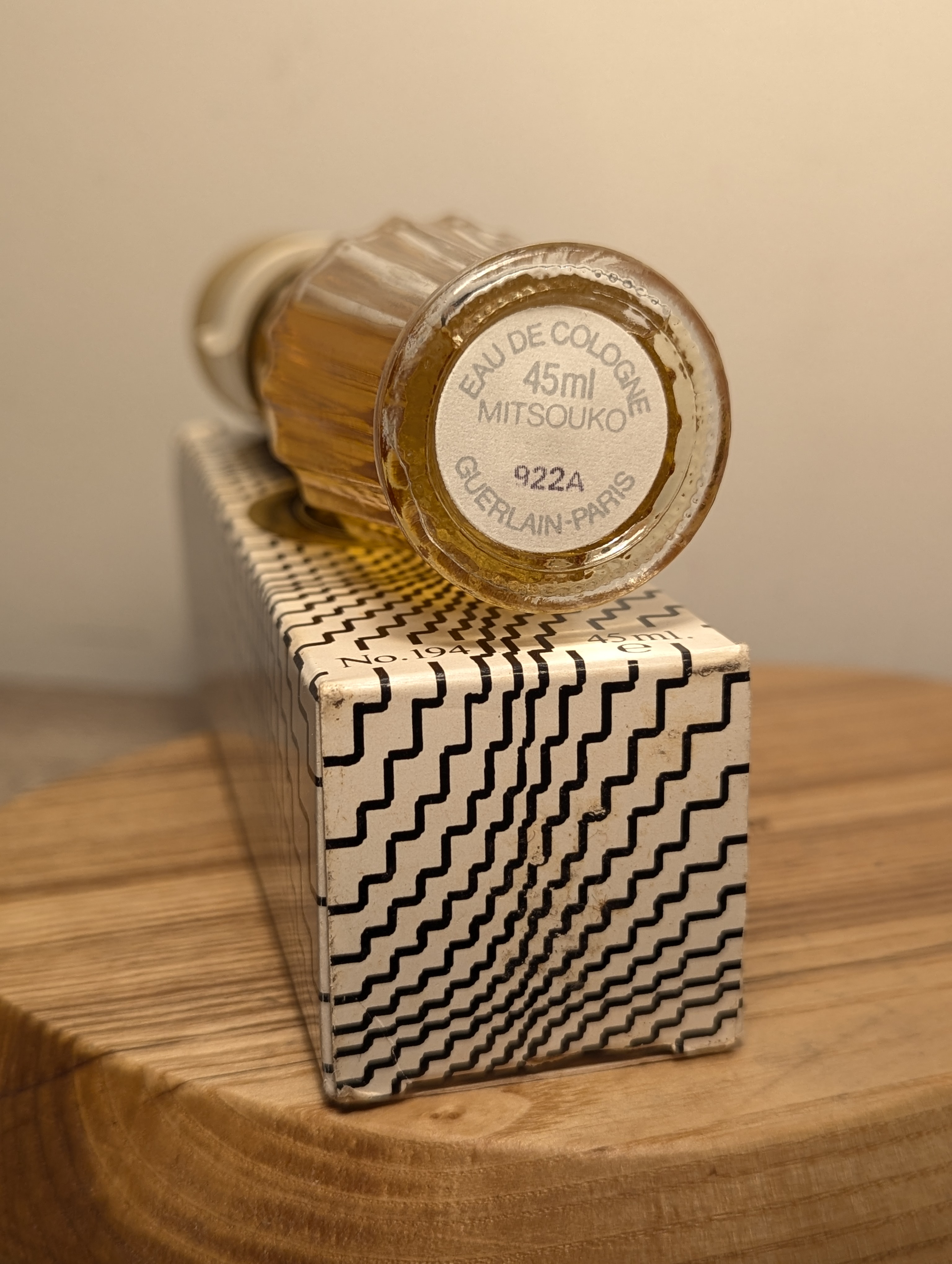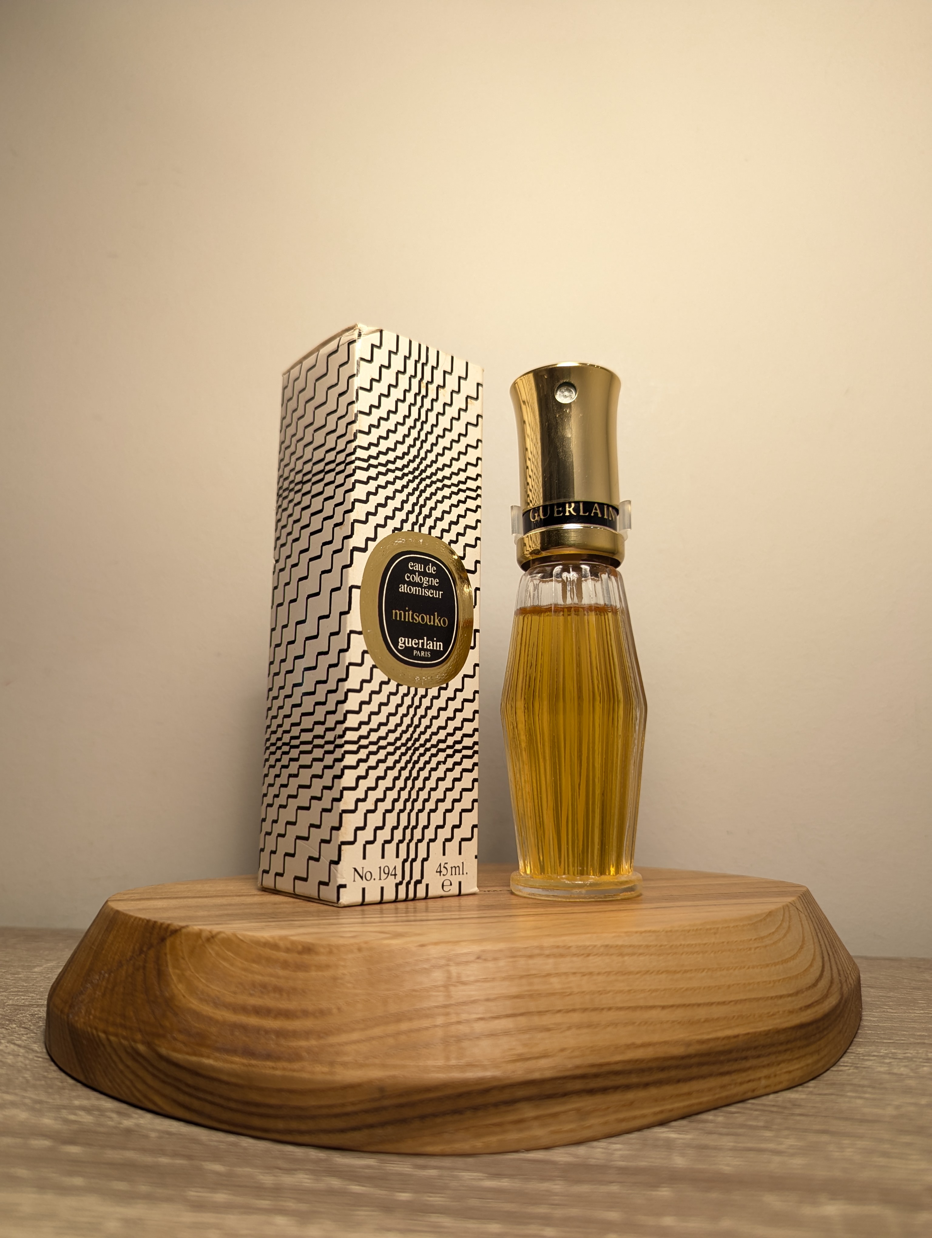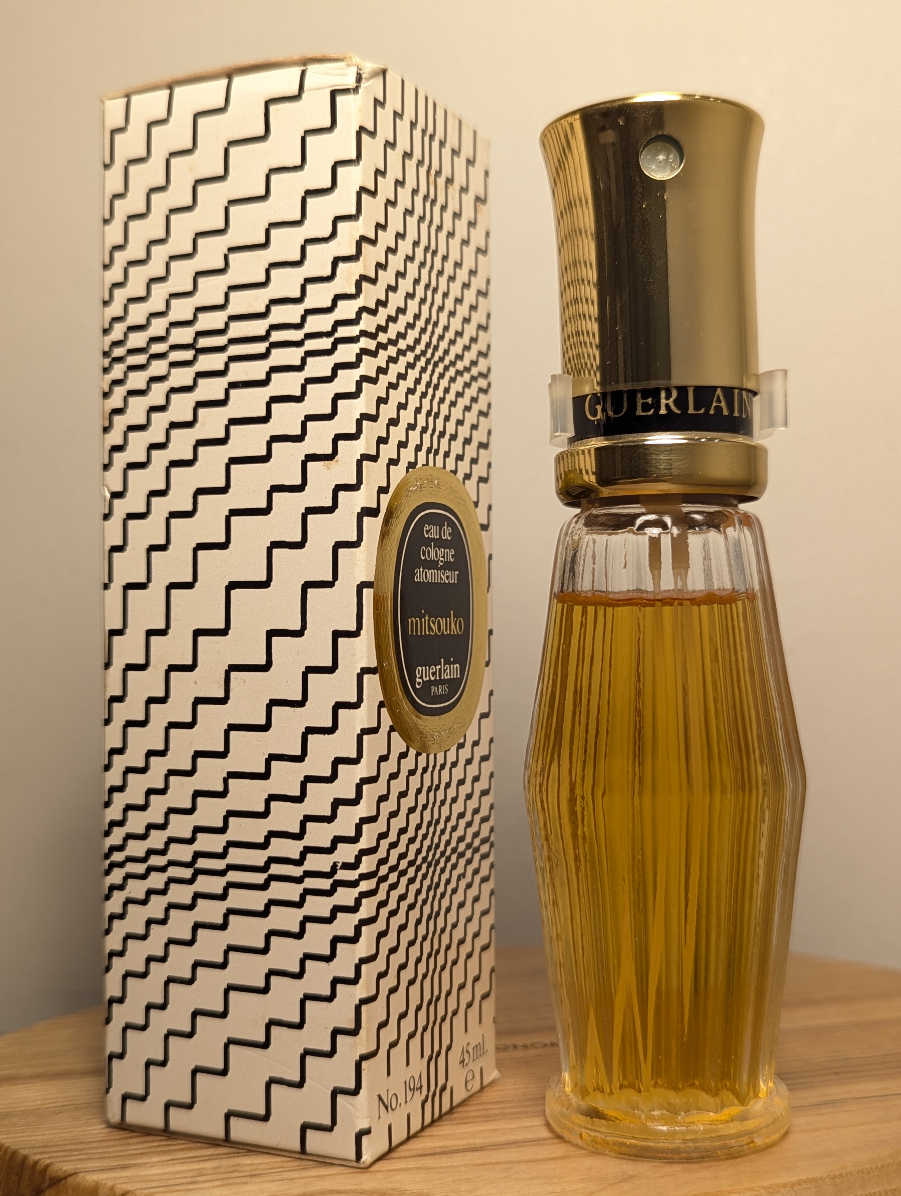 Шикарный винтажный одеколон Guerlain Mitsouko (Герлен Мицуко) объёмом 45 мл 1980-х годов выпуска, флакон спрей-атомайзер (пульверизатор: парфюм + газ).
