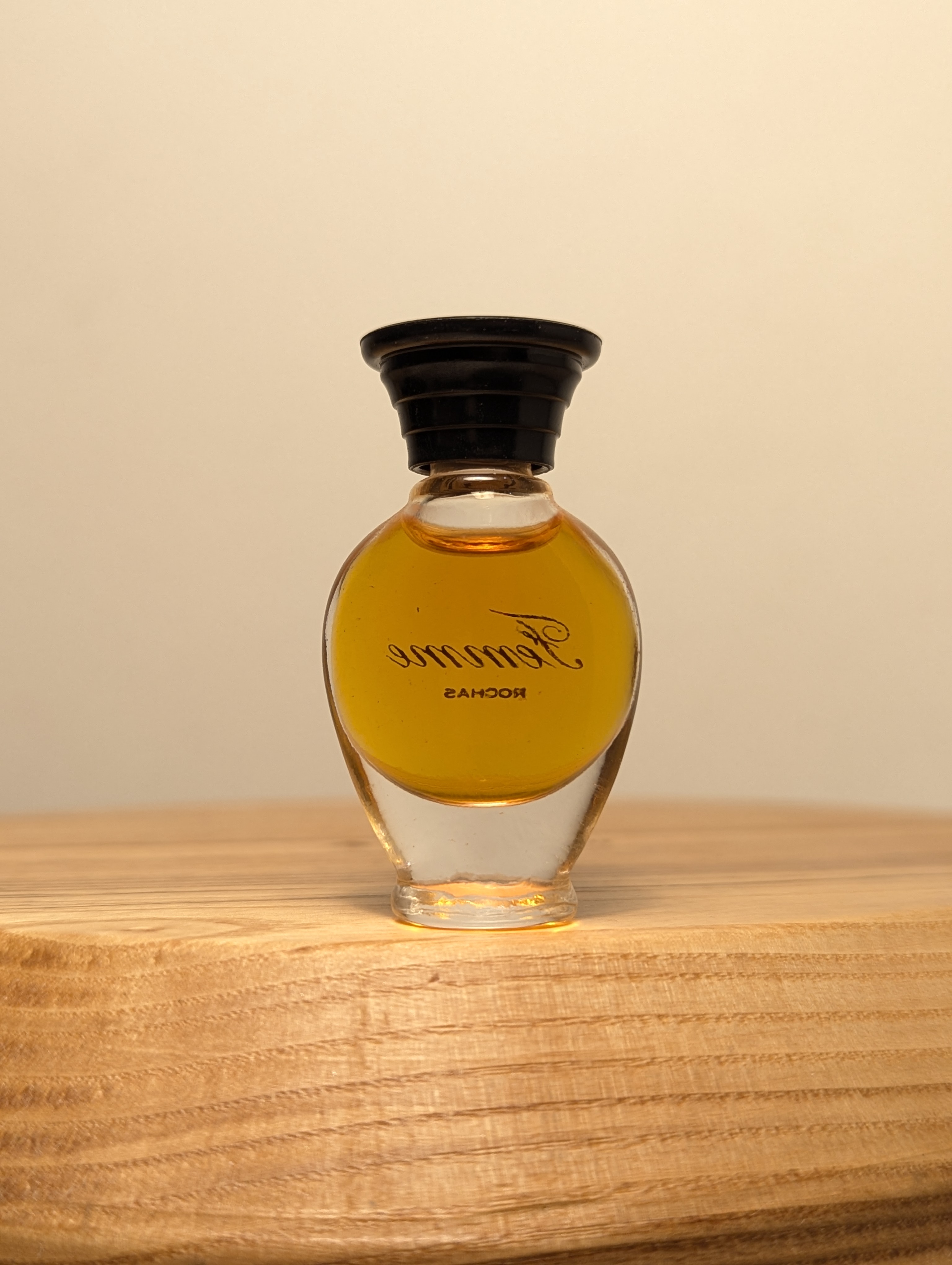 Утончённая винтажная парфюмерная вода Rochas Femme (Роша Фам) объёмом 3 мл 1970-х годов выпуска, флакон сплэш (пальчик, не спрей), без коробочки.