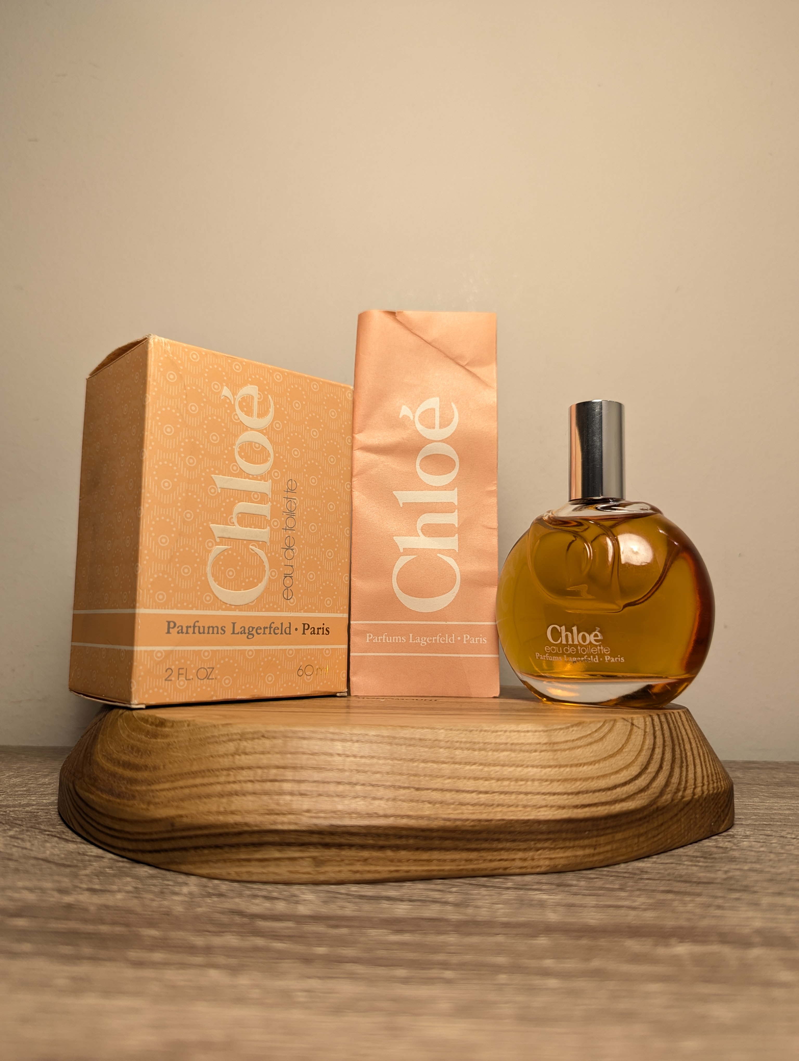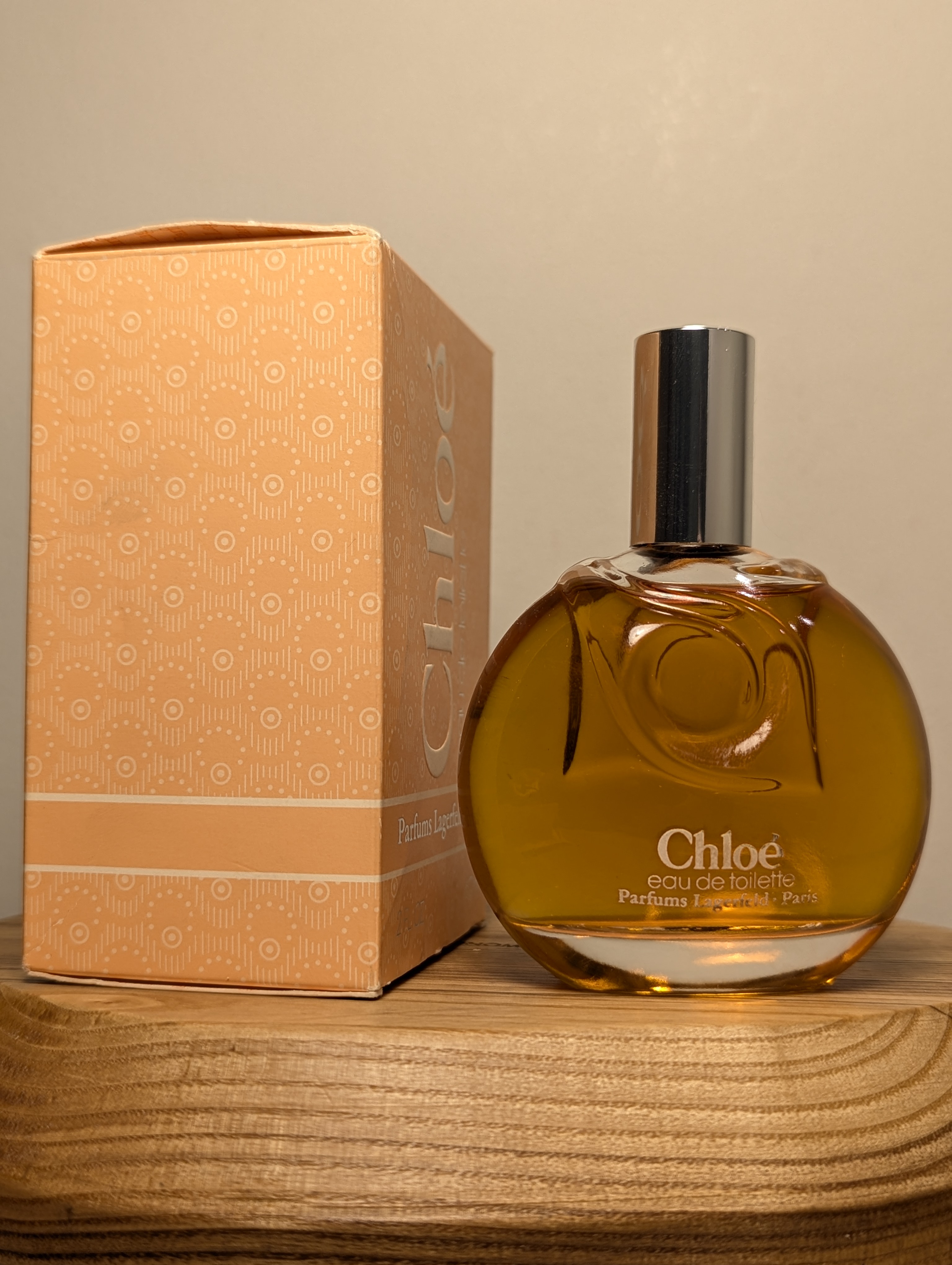Легендарная винтажная туалетная вода Parfums Lagerfeld Chloe (Парфам Лагерфельд Хлои) объёмом 60 мл 1980-х годов выпуска, флакон сплэш (пальчик, не спрей), полный.