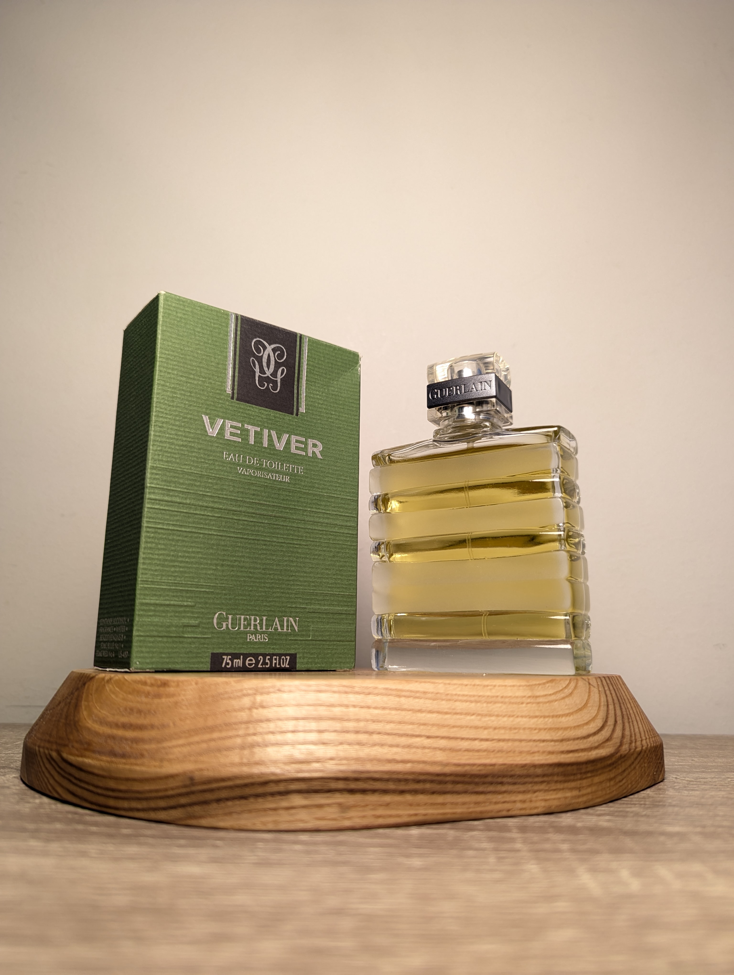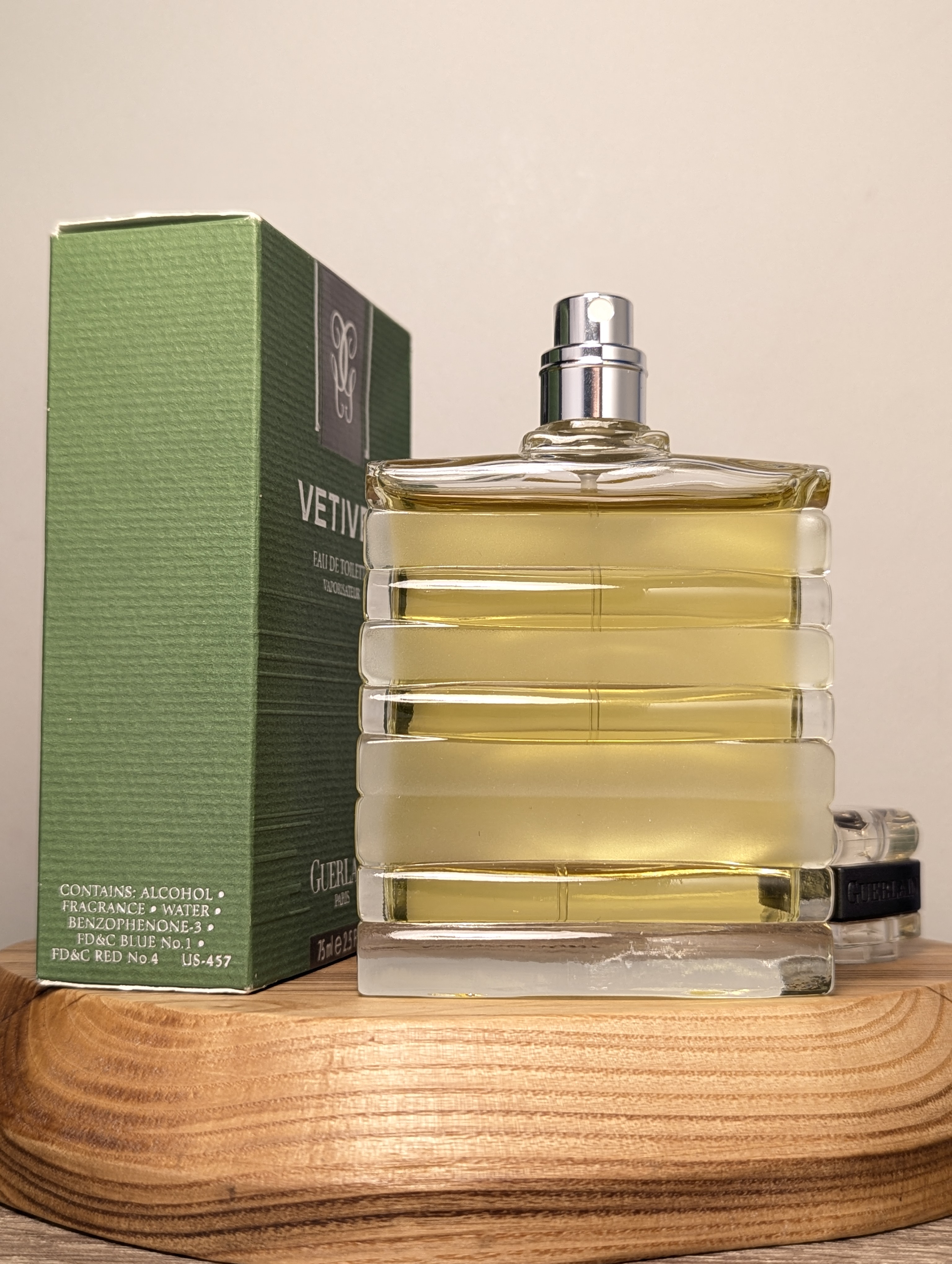 Утончённая винтажная мужская туалетная вода Guerlain Vetiver (Герлен Ветивер) объёмом 75 мл 2002 года выпуска, флакон спрей (пульверизатор).