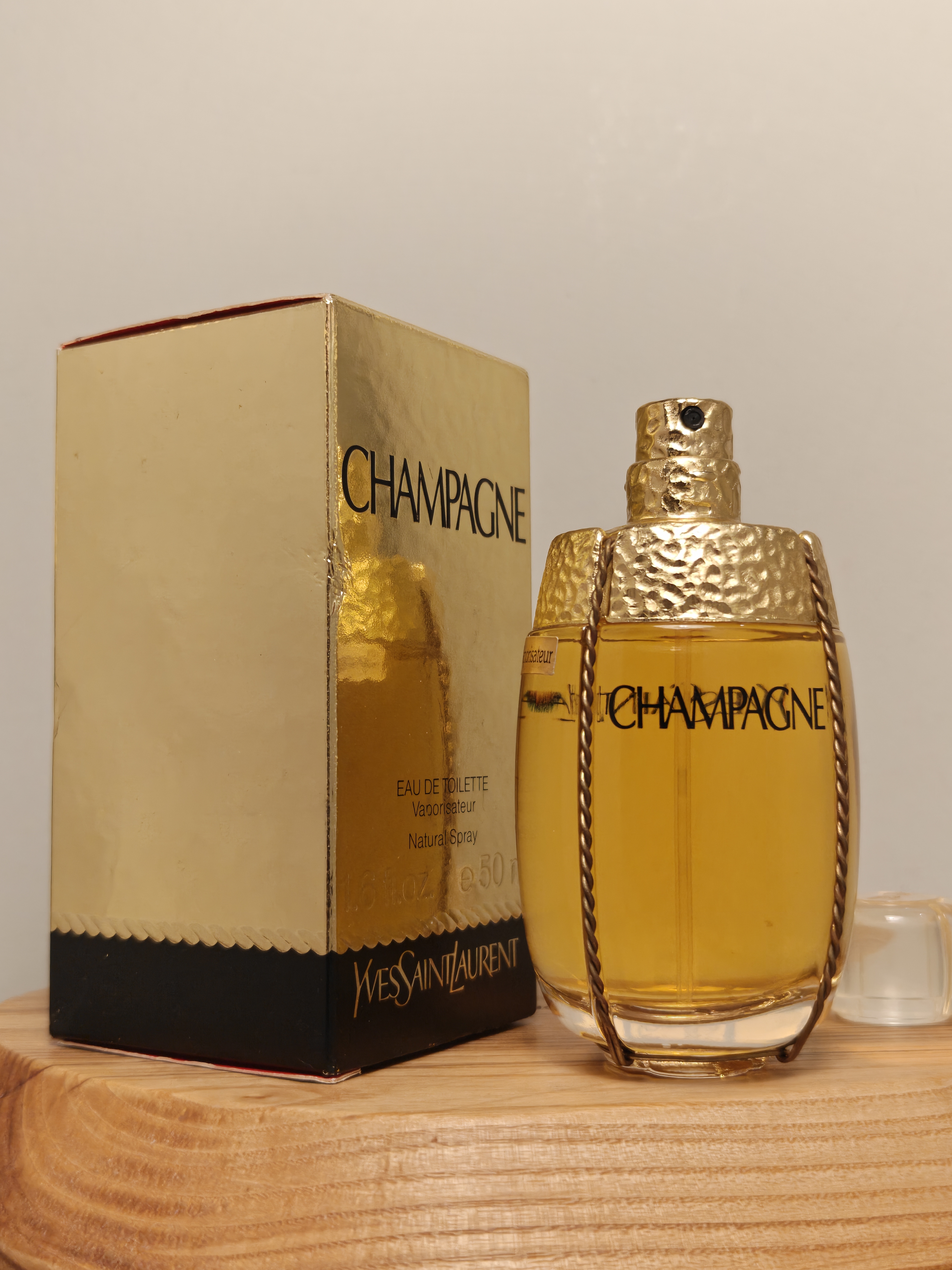 Изысканная винтажная туалетная вода Yves Saint Laurent Champagne (Ив Сен Лоран Шампань) объёмом 50 мл 1990-х годов выпуска, флакон спрей (пульверизатор), полный — прекрасно на подарок!