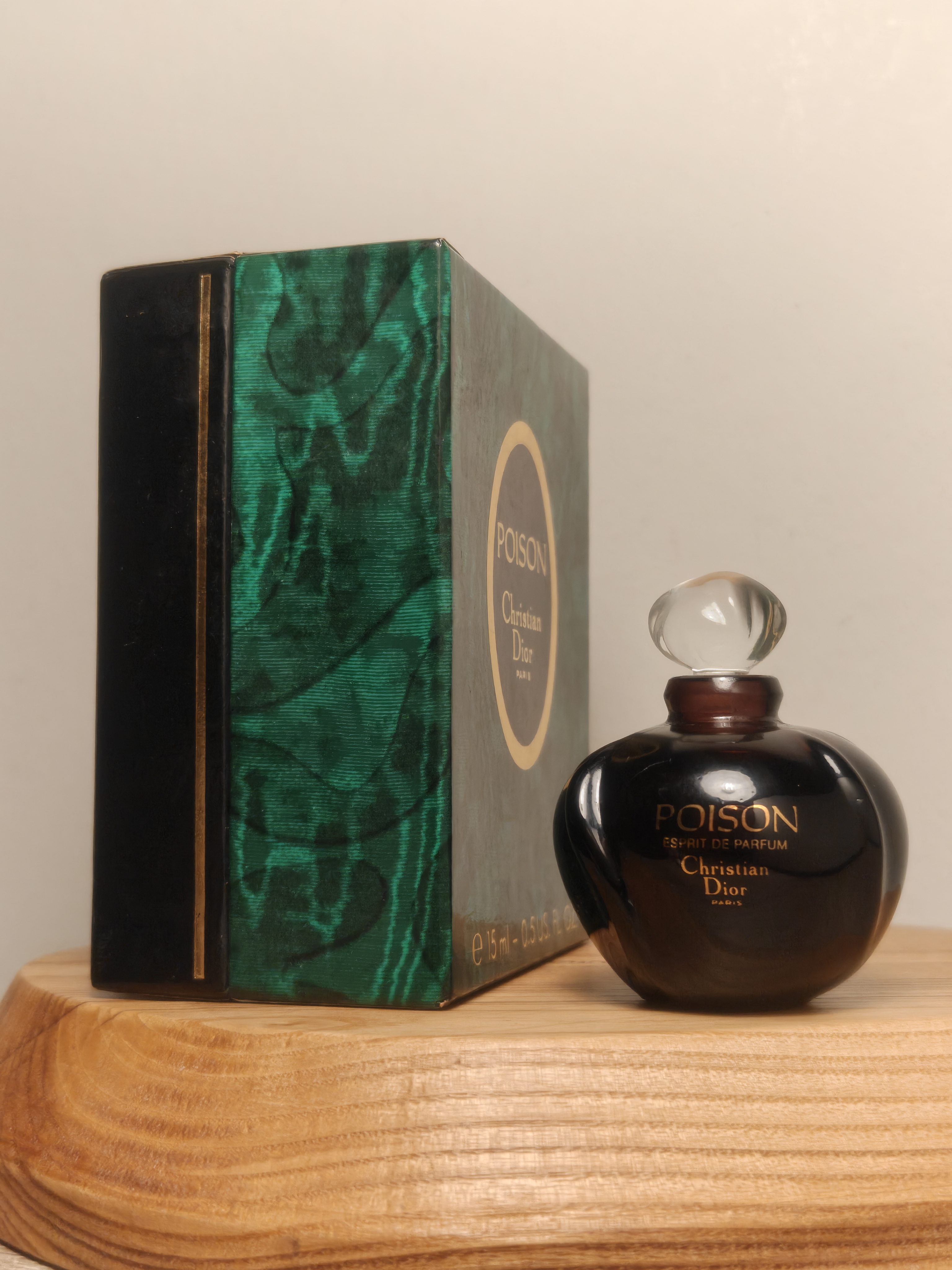Утончённые винтажные духи повышенной концентрации (esprit de parfum) Christian Dior Poison (Кристиан Диор Пуазон) объёмом 15 мл 1986 года выпуска, флакон сплэш (пальчик, не спрей), полный — прекрасно на подарок!