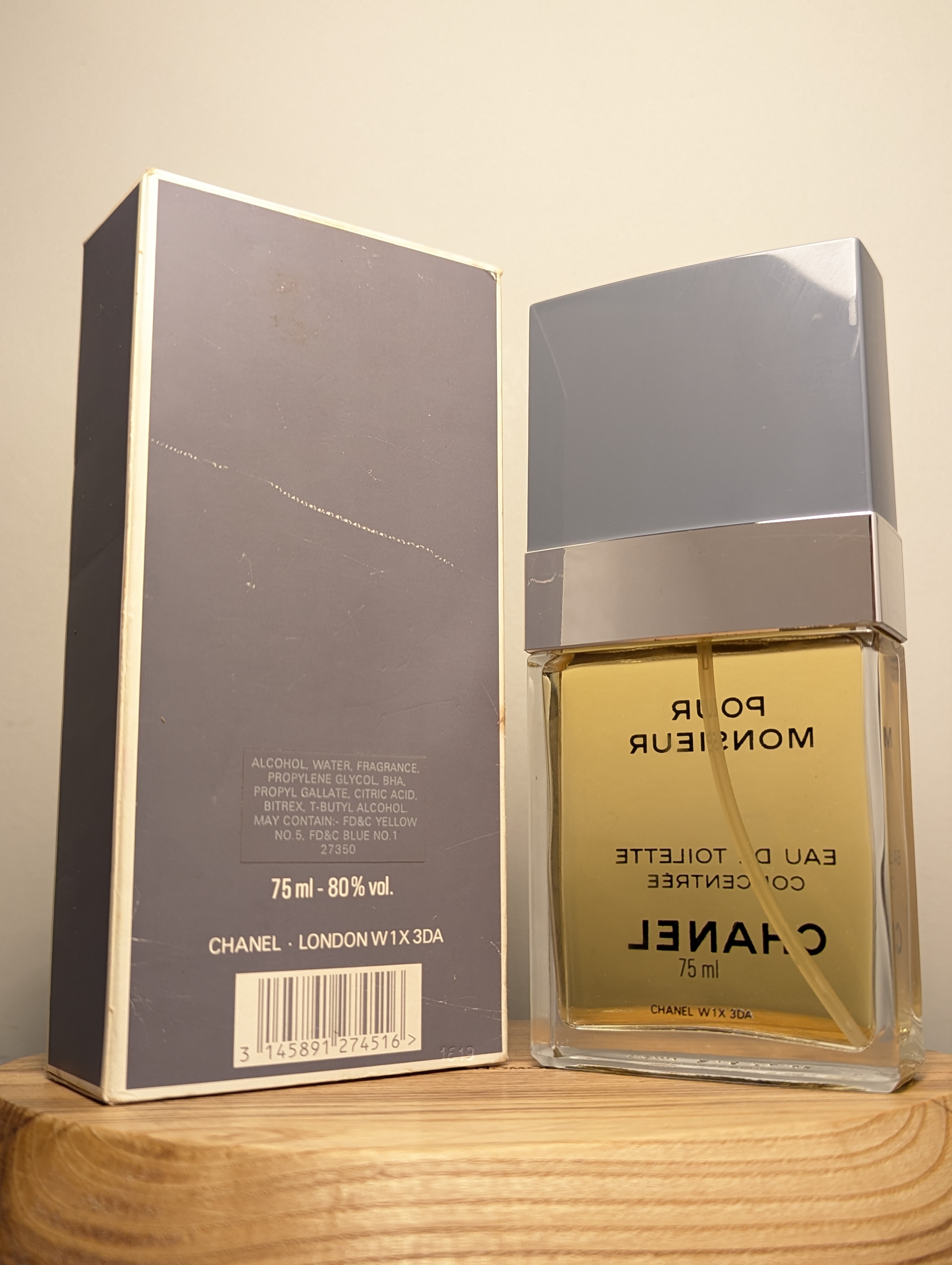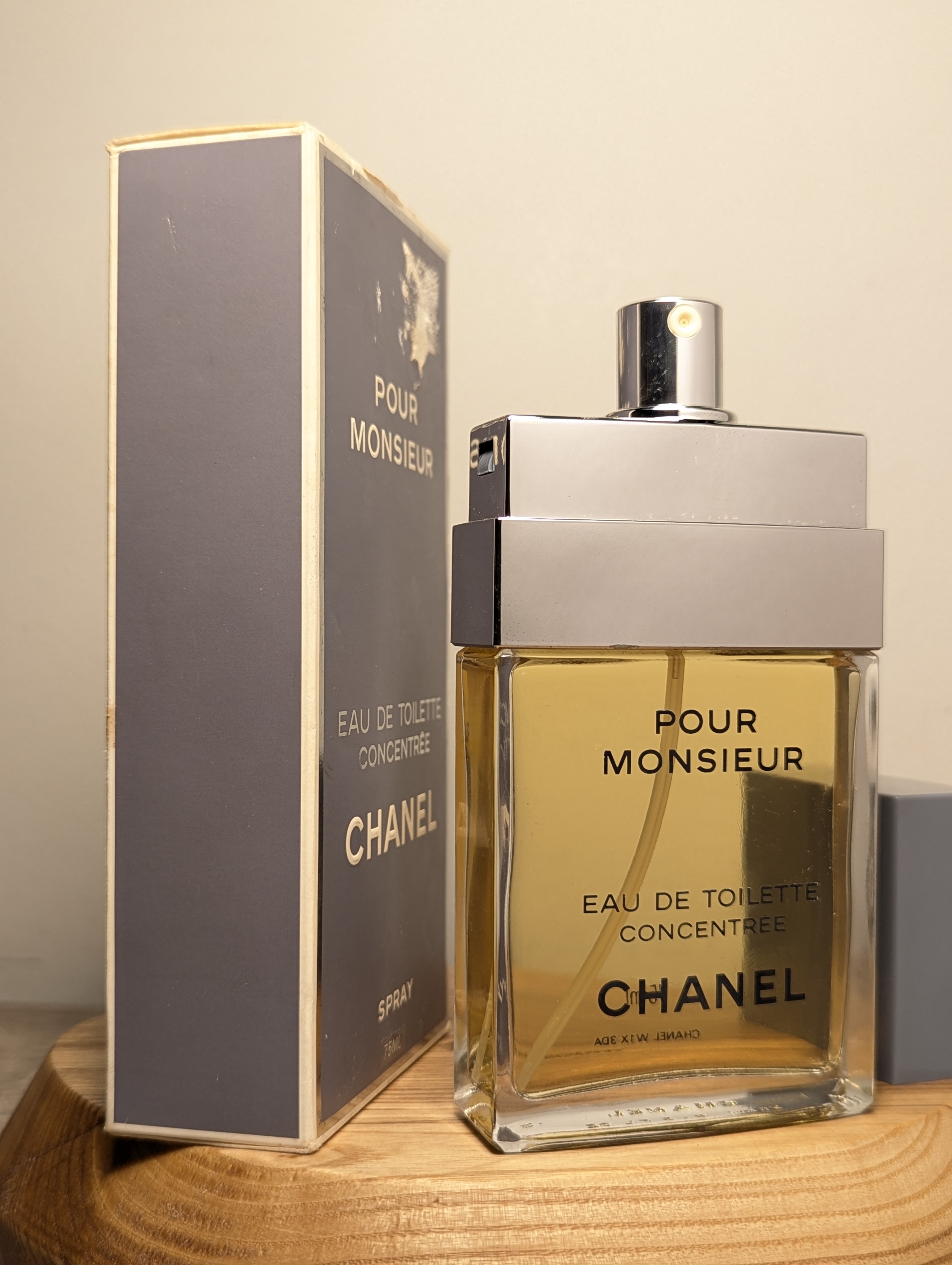 Изысканная винтажная мужская туалетная вода Chanel Pour Monsieur Concentree (Шанель Пур Месьё Консентре) объёмом 75 мл 1992 года выпуска, флакон спрей (пульверизатор), полный.