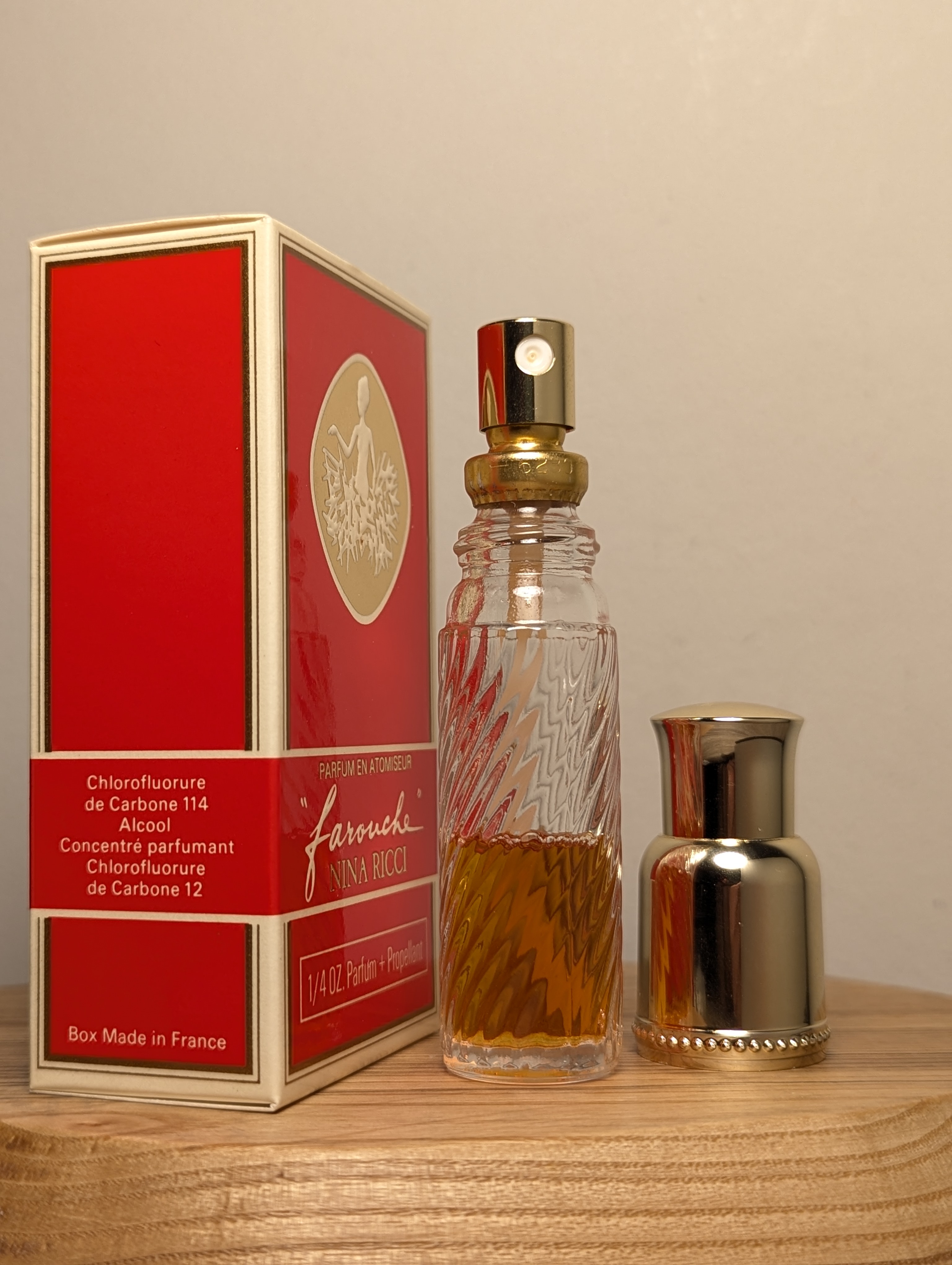 Шикарные винтажные духи Nina Ricci Farouche (Нина Ричи Фаруш) объёмом 7,5 мл 1980-х годов выпуска, флакон спрей-атомайзер (пульверизатор: парфюм + газ).