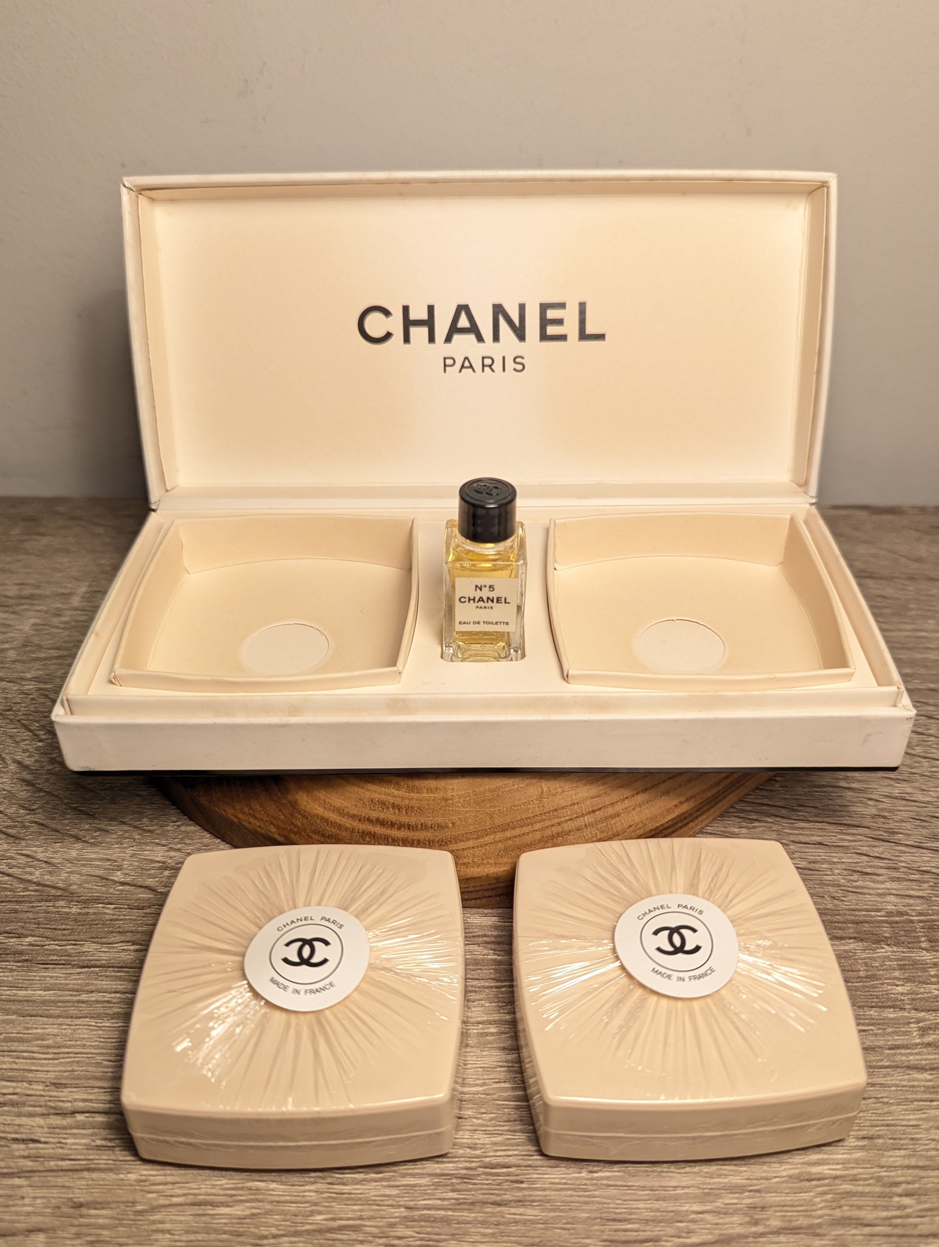Набор Chanel № 5 EDT 4 мл + 2 мыла по 76 г винтаж 1990-х годов