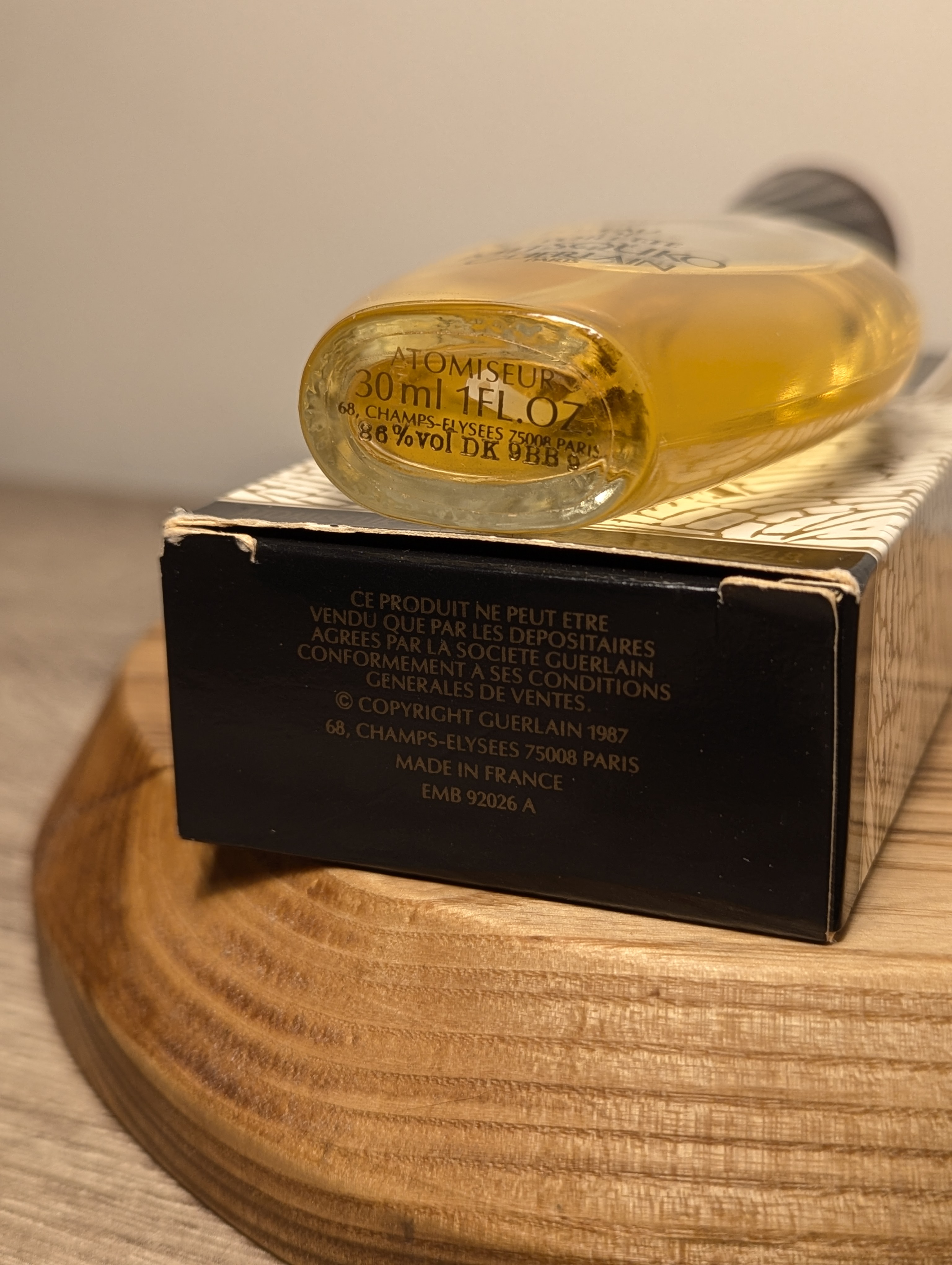 Изысканная винтажная туалетная вода Guerlain Mitsouko (Герлен Мицуко) объёмом 30 мл 1989 года выпуска, флакон спрей-атомайзер (пульверизатор: парфюм + газ).