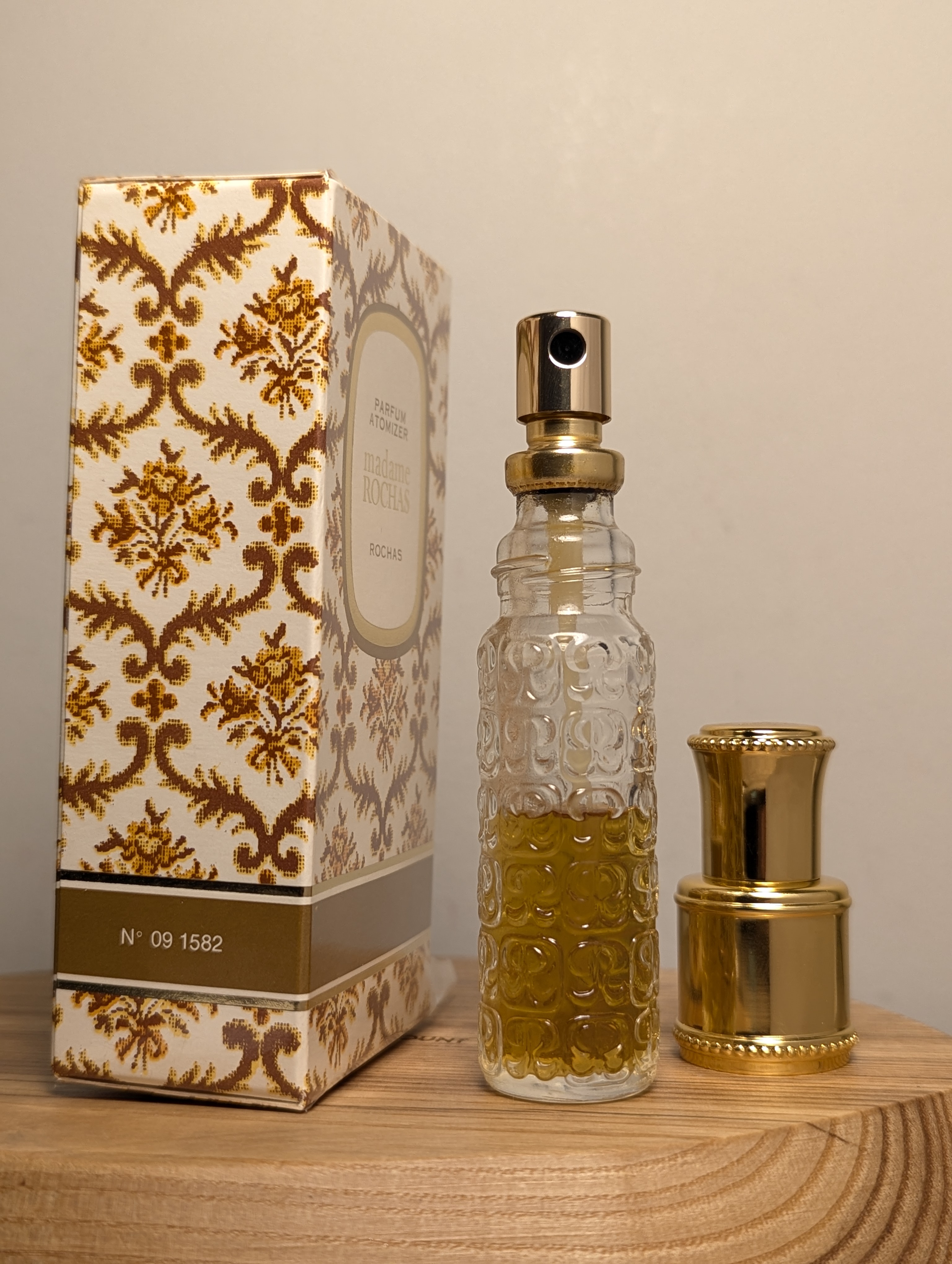 Роскошные винтажные духи Rochas Madame Rochas (Роша Мадам Роша) объёмом 7,5 мл 1978 года выпуска, флакон спрей-атомайзер (пульверизатор: парфюм + газ).