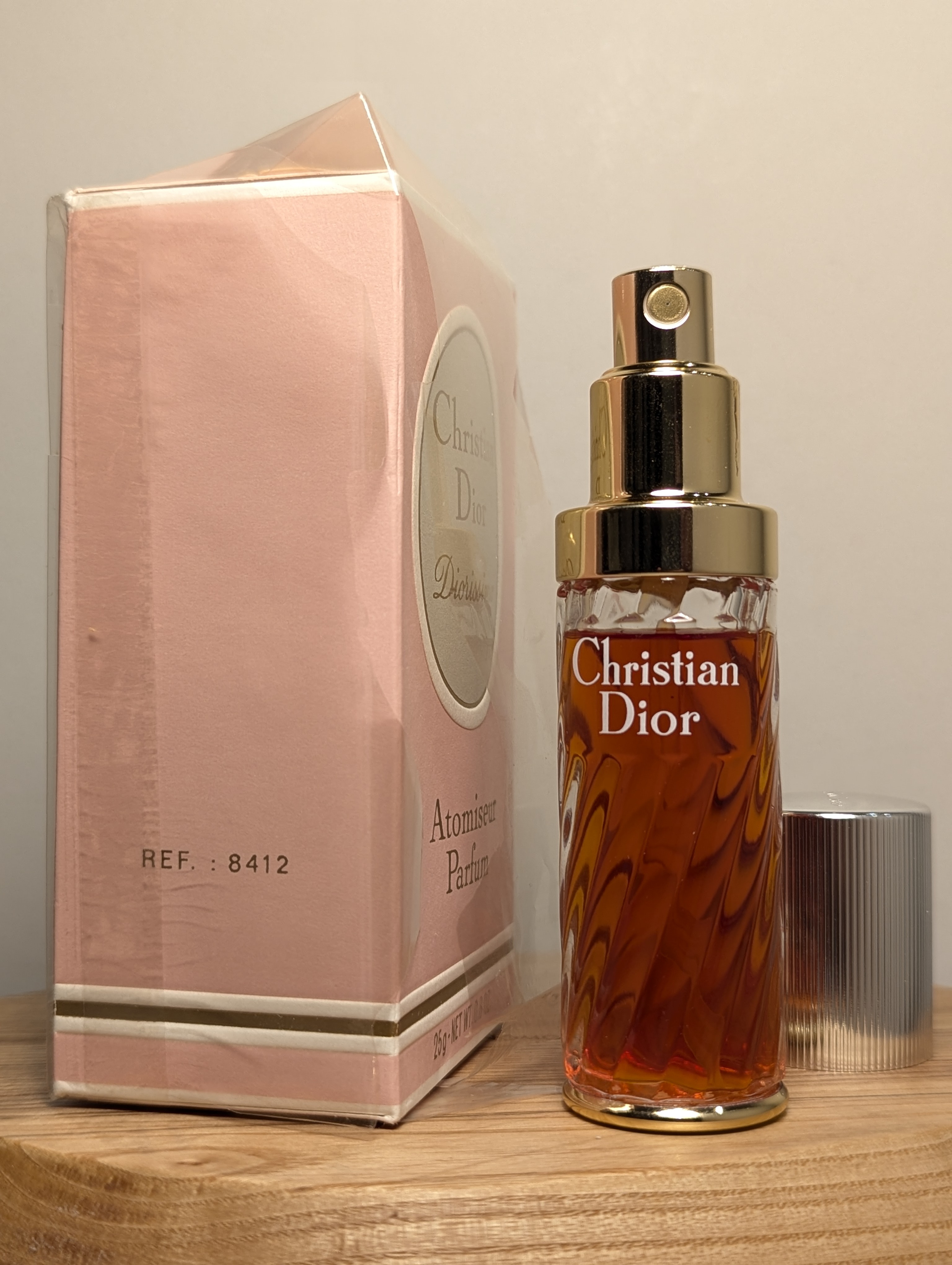 Утончённые винтажные духи Christian Dior Diorissimo (Кристиан Диор Диориссимо) объёмом 25 мл 1976 года выпуска, флакон спрей-атомайзер (пульверизатор: парфюм + газ).