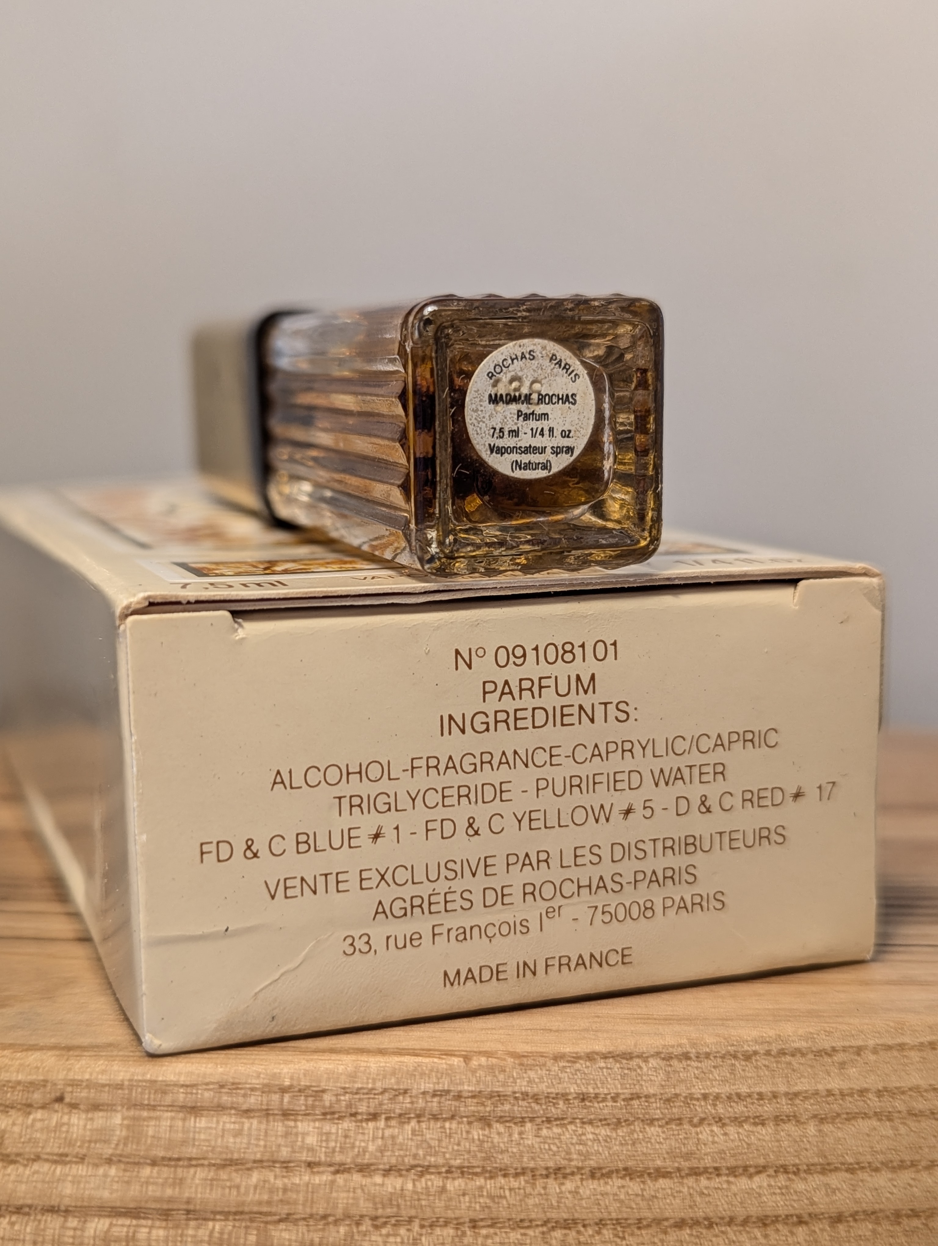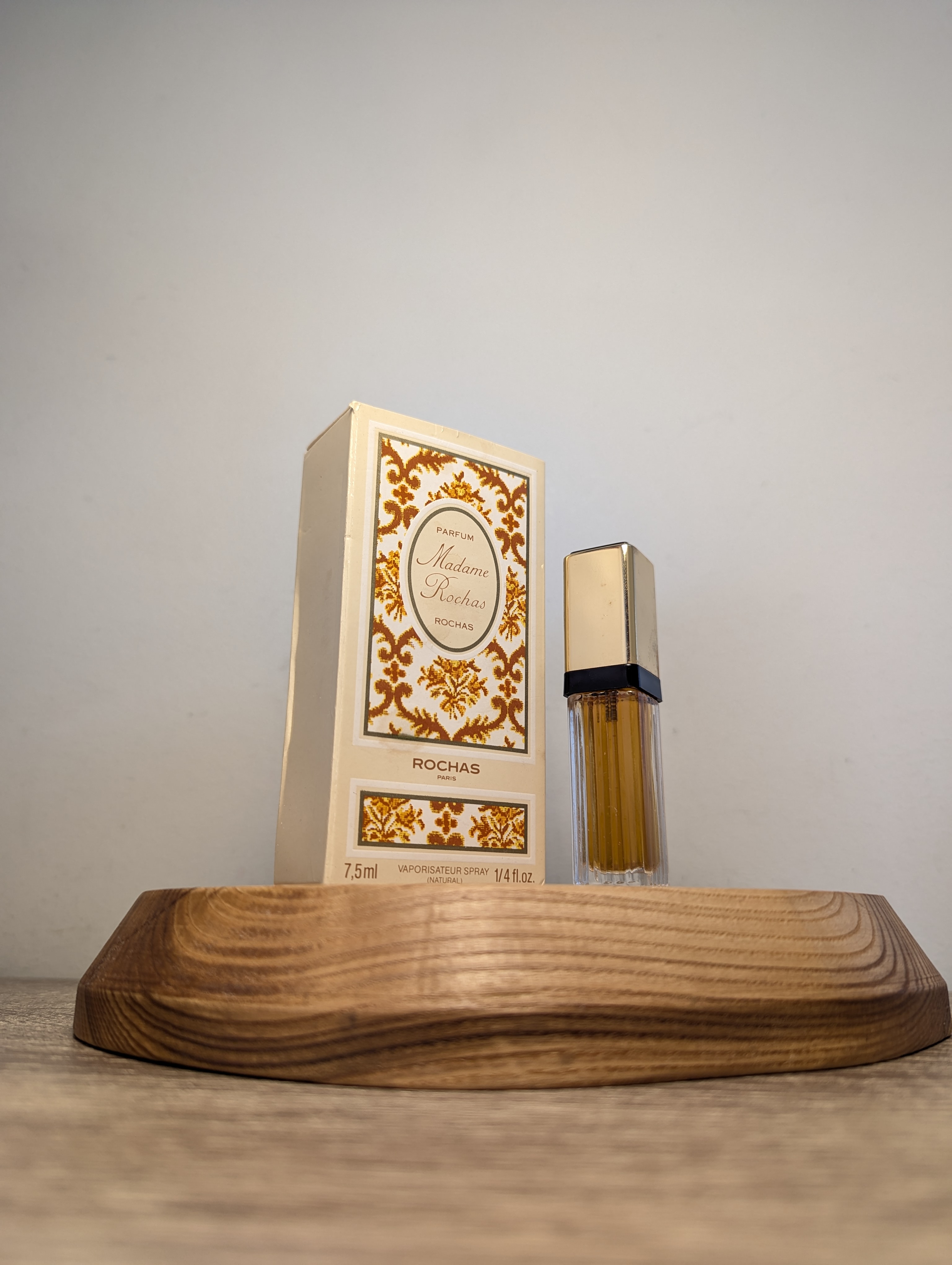 Утончённые винтажные духи Rochas Madame Rochas (Роша Мадам Роша) объёмом 7,5 мл 1988 года выпуска, флакон спрей (пульверизатор), полный.