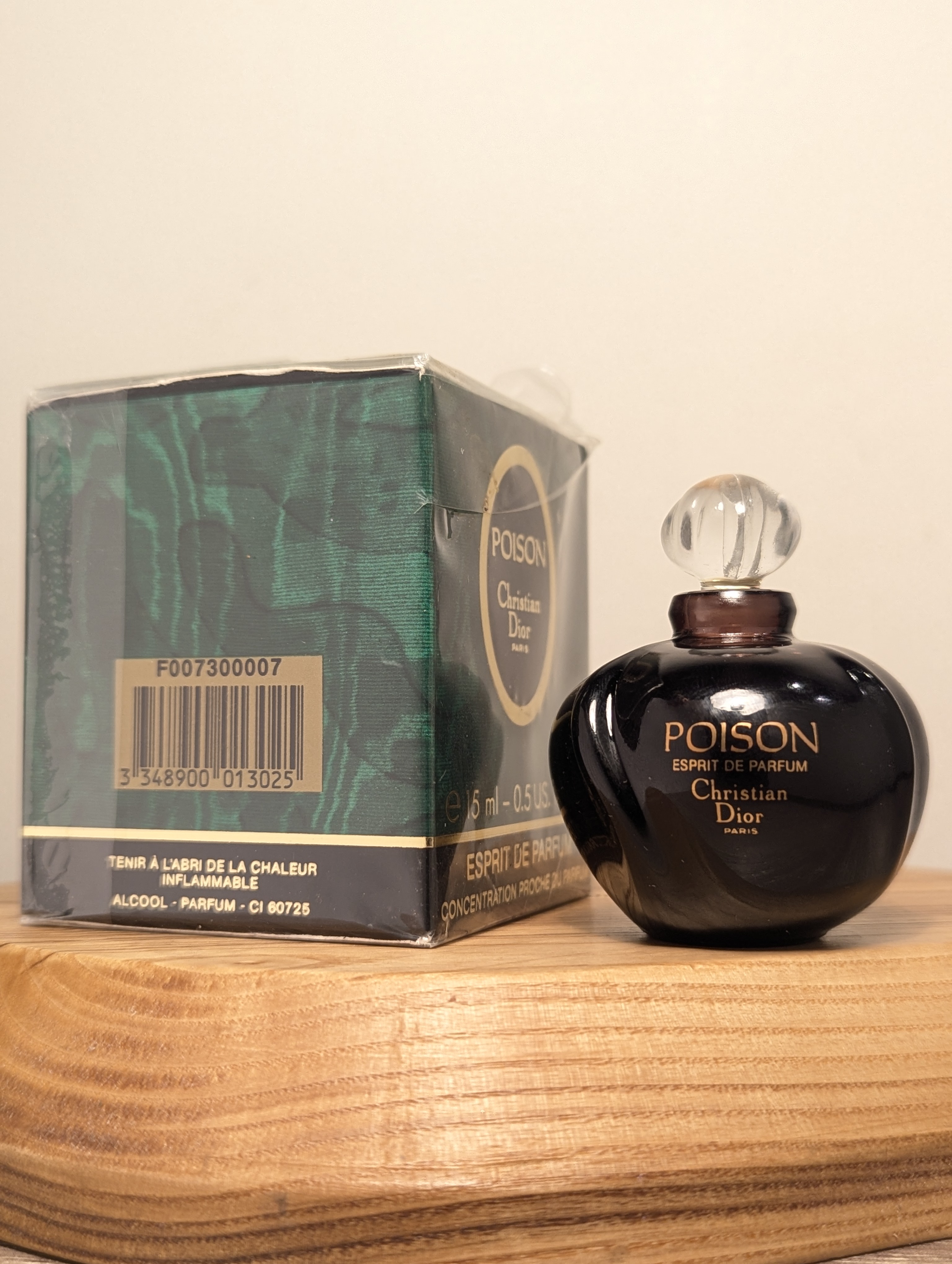 Легендарные винтажные духи повышенной концентрации (esprit de parfum) Christian Dior Poison (Кристиан Диор Пуазон) объёмом 15 мл 1993 года выпуска, флакон сплэш (пальчик, не спрей), полный — прекрасно на подарок!