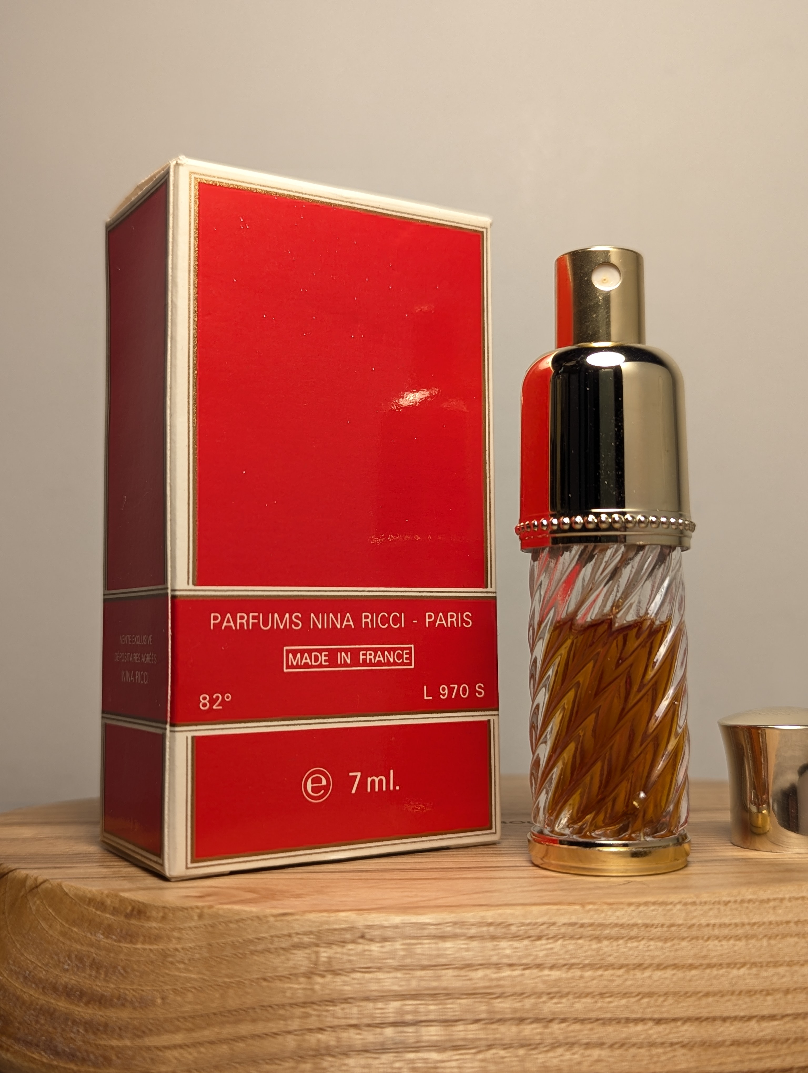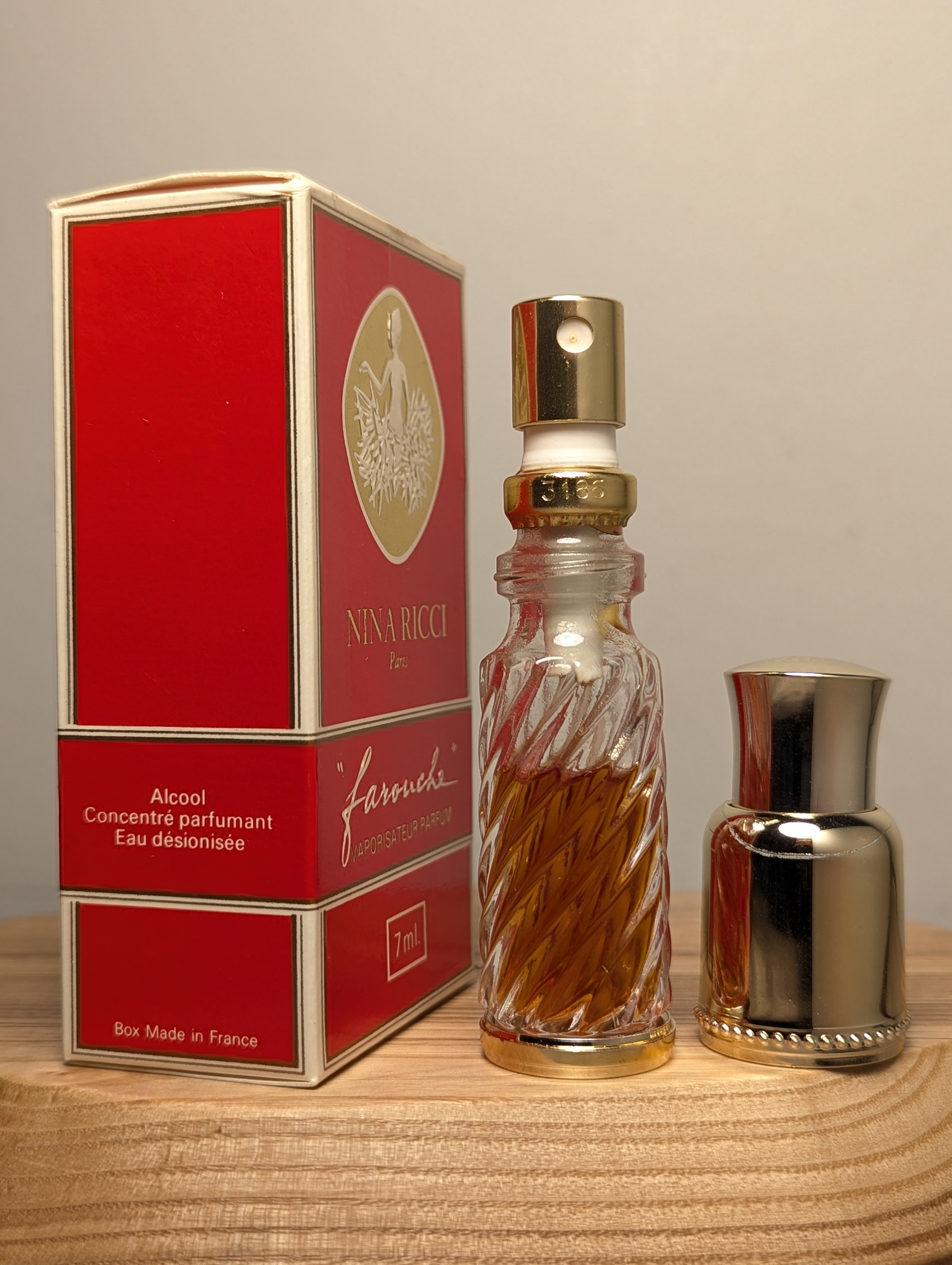 Роскошные винтажные духи Nina Ricci Farouche (Нина Ричи Фаруш) объёмом 7 мл 1980-х годов выпуска, флакон спрей (пульверизатор).