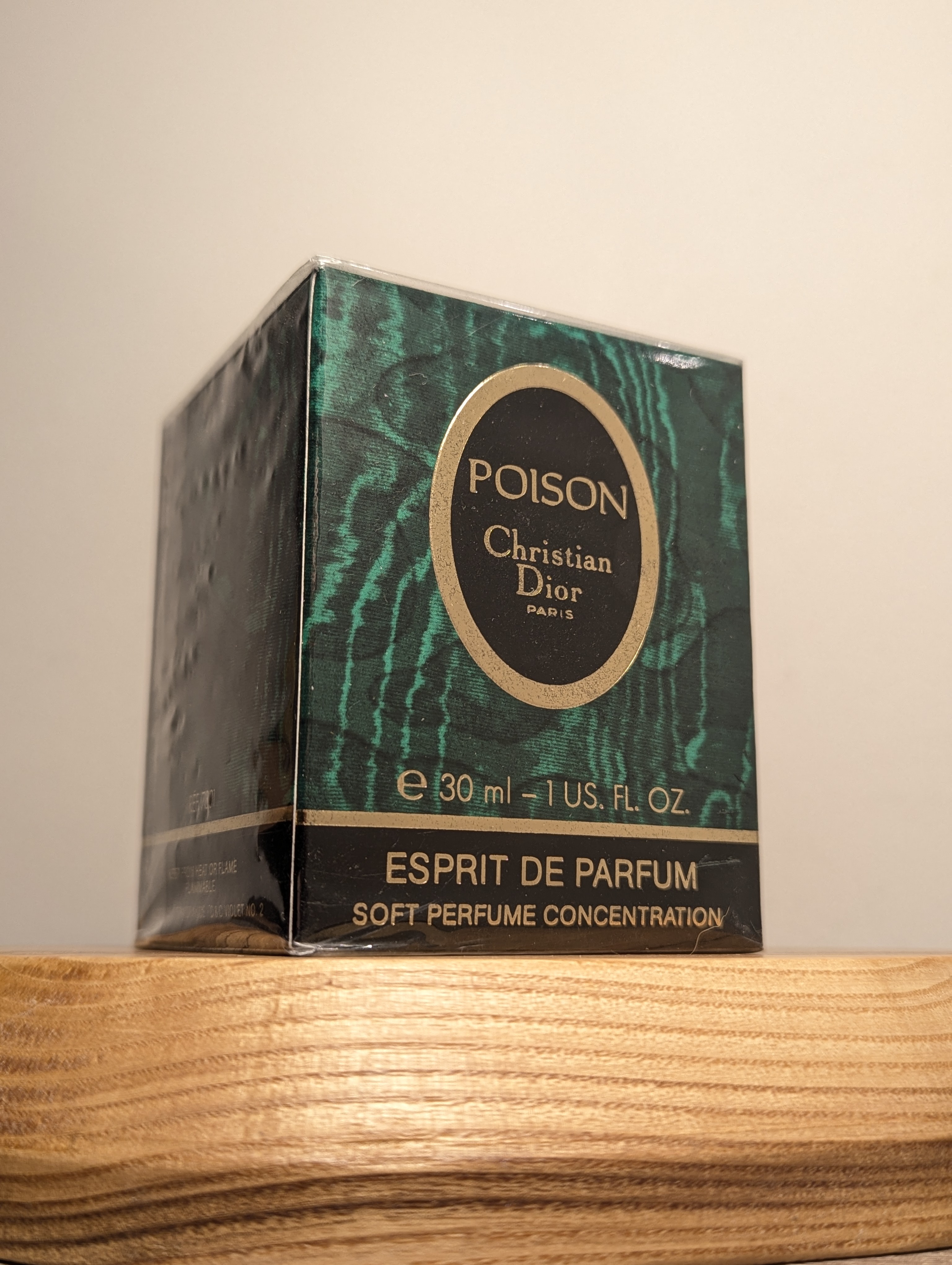 Изысканные винтажные духи повышенной концентрации (esprit de parfum) Christian Dior Poison (Кристиан Диор Пуазон) объёмом 30 мл 1990 года выпуска, флакон сплэш (пальчик, не спрей), в слюде — идеально на подарок!