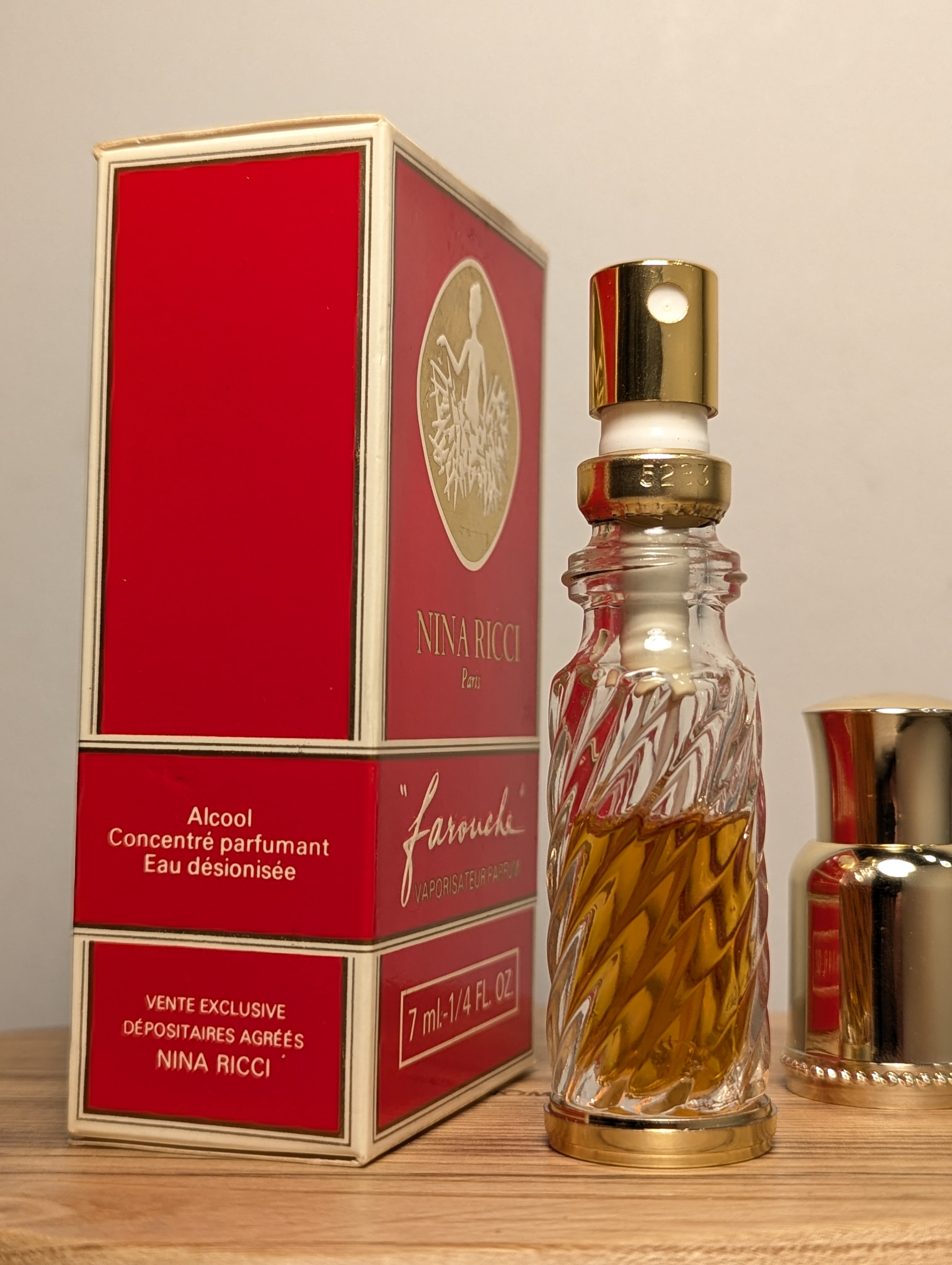 Шикарные винтажные духи Nina Ricci Farouche (Нина Ричи Фаруш) объёмом 7 мл 1980-х годов выпуска, флакон спрей (пульверизатор).