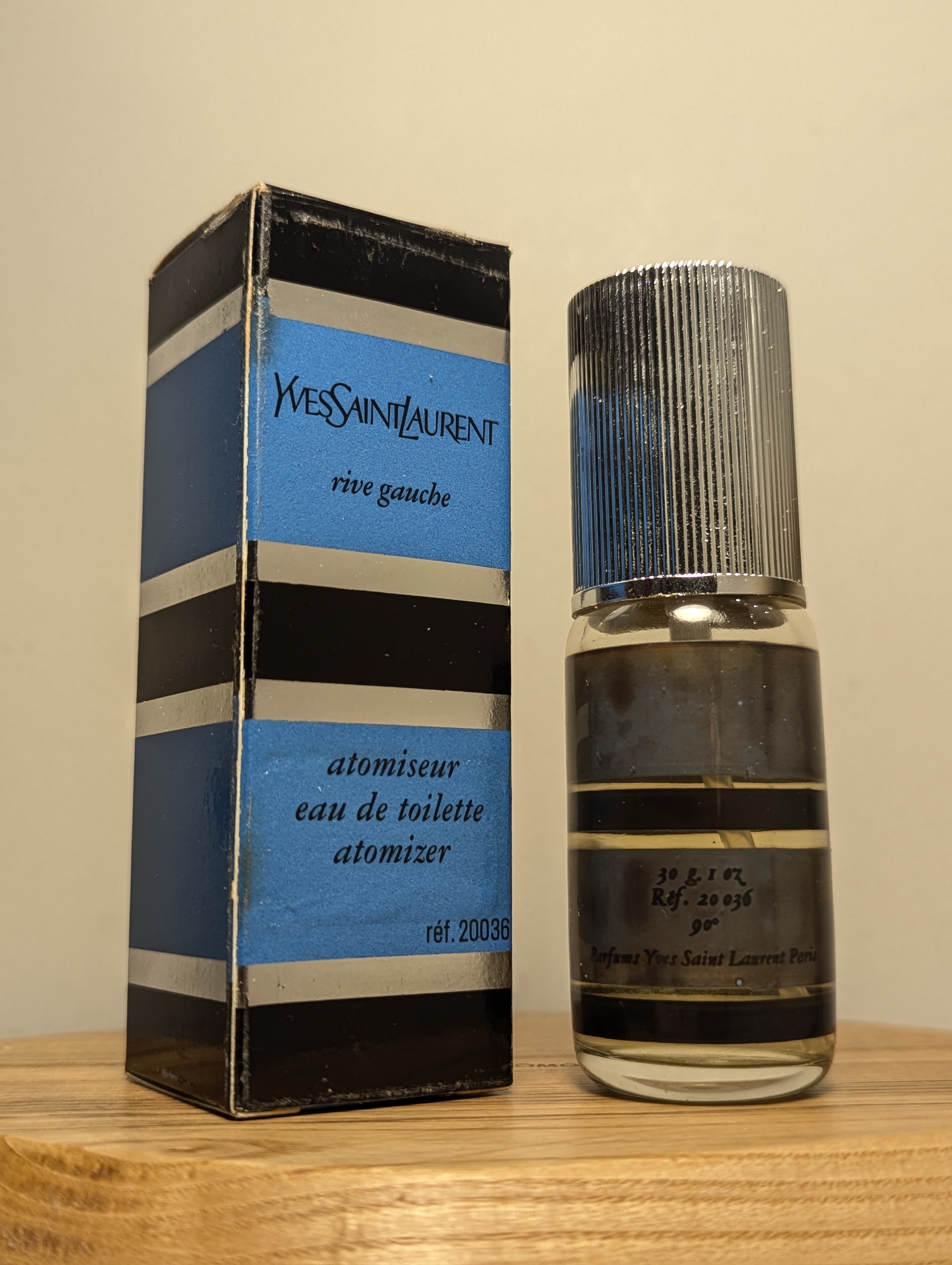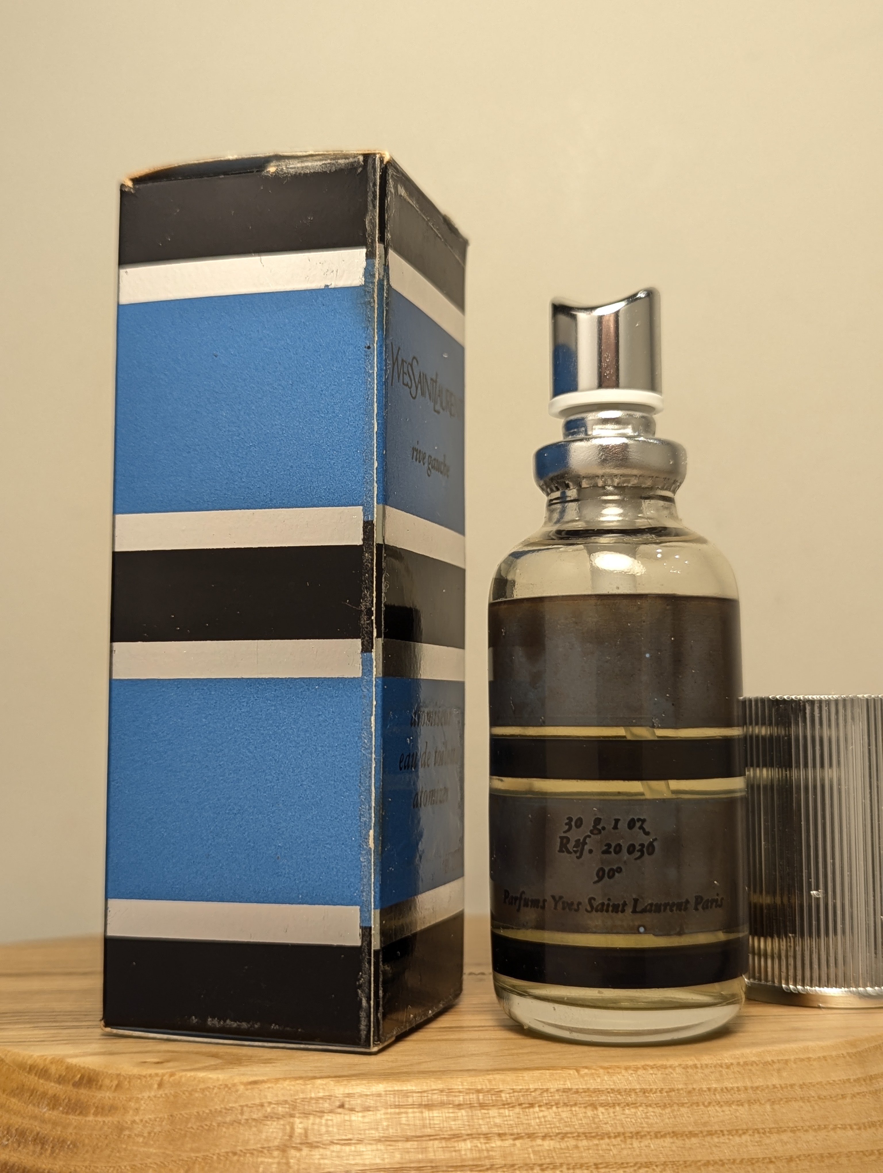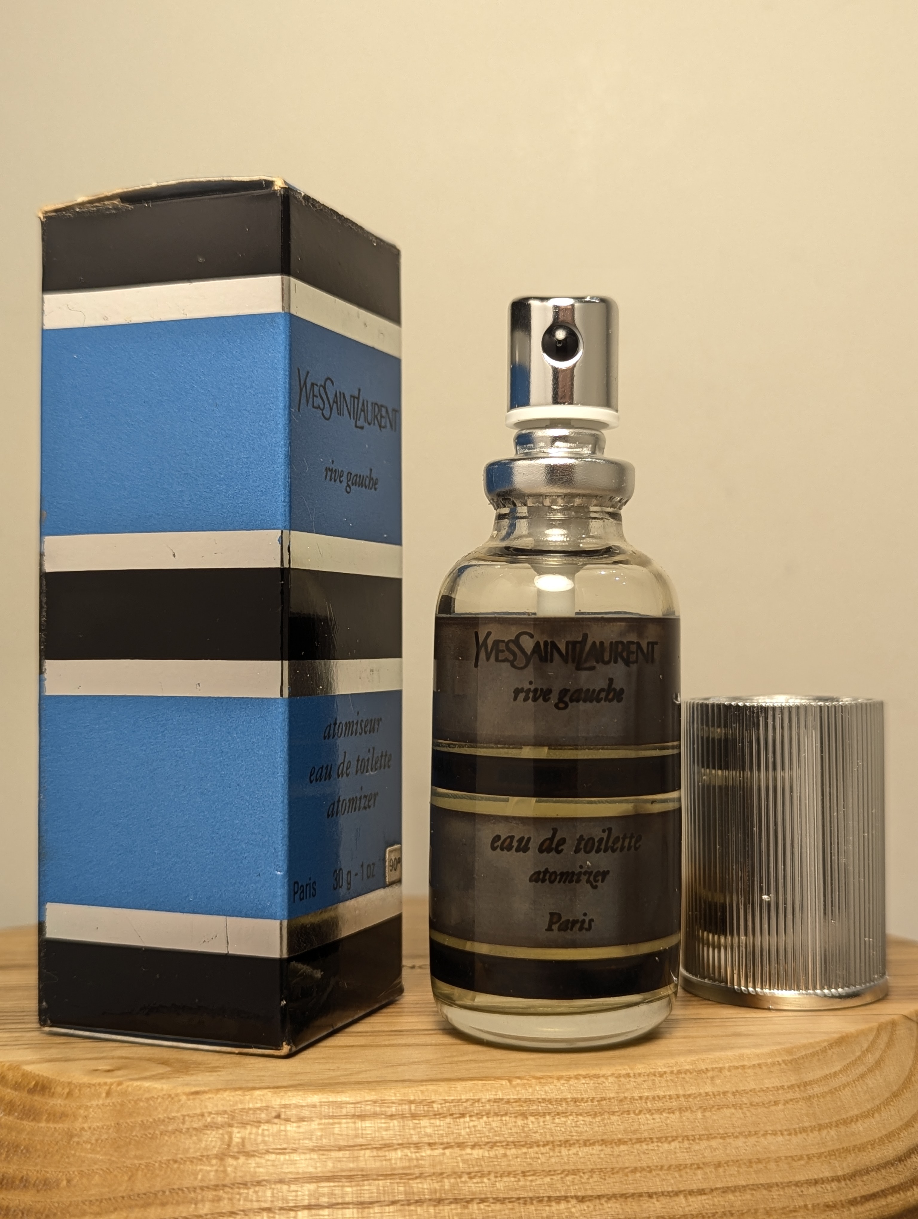 Изысканная винтажная туалетная вода Yves Saint Laurent Rive Gauche (Ив Сен Лоран Рив Гош) объёмом 30 мл 1970-х годов выпуска, флакон спрей-атомайзер (пульверизатор: парфюм + газ).