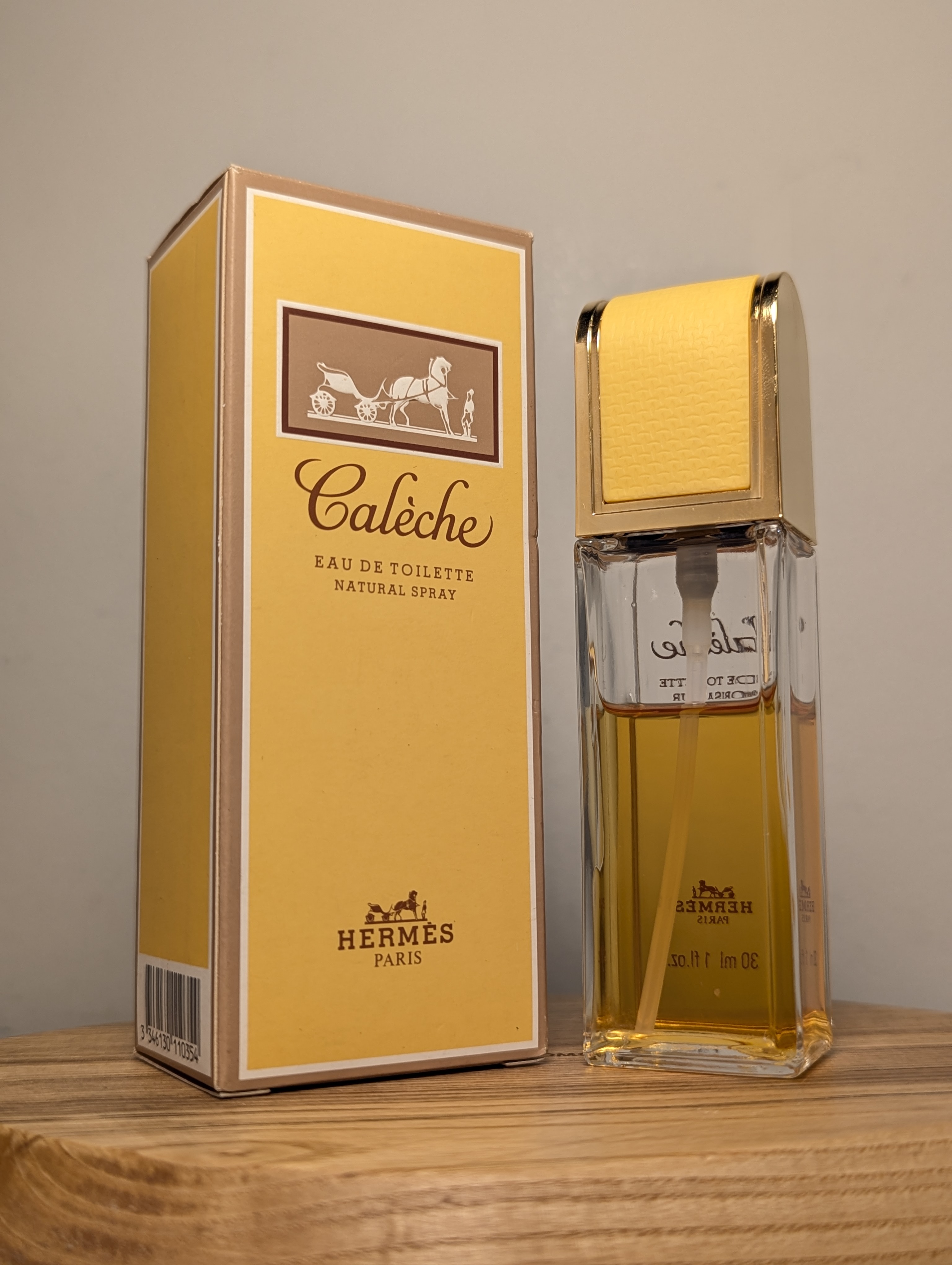 Шикарная винтажная туалетная вода Hermes Caleche (Эрмес Калеш) объёмом 30 мл 1994 года выпуска, флакон спрей (пульверизатор).