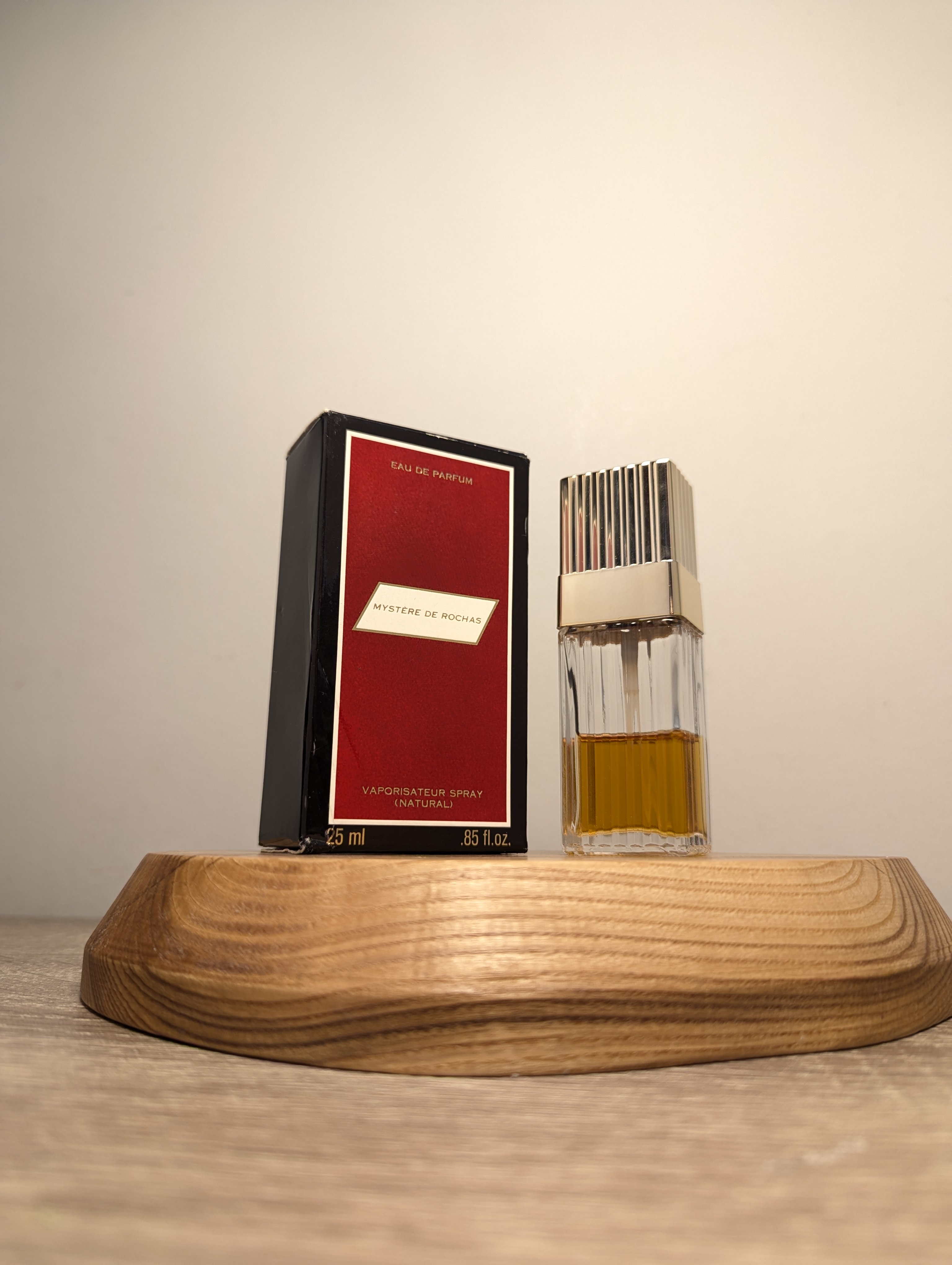 Роскошная винтажная парфюмерная вода Rochas Mystere (Роша Мистер) объёмом 25 мл 1985 года выпуска, флакон спрей (пульверизатор).