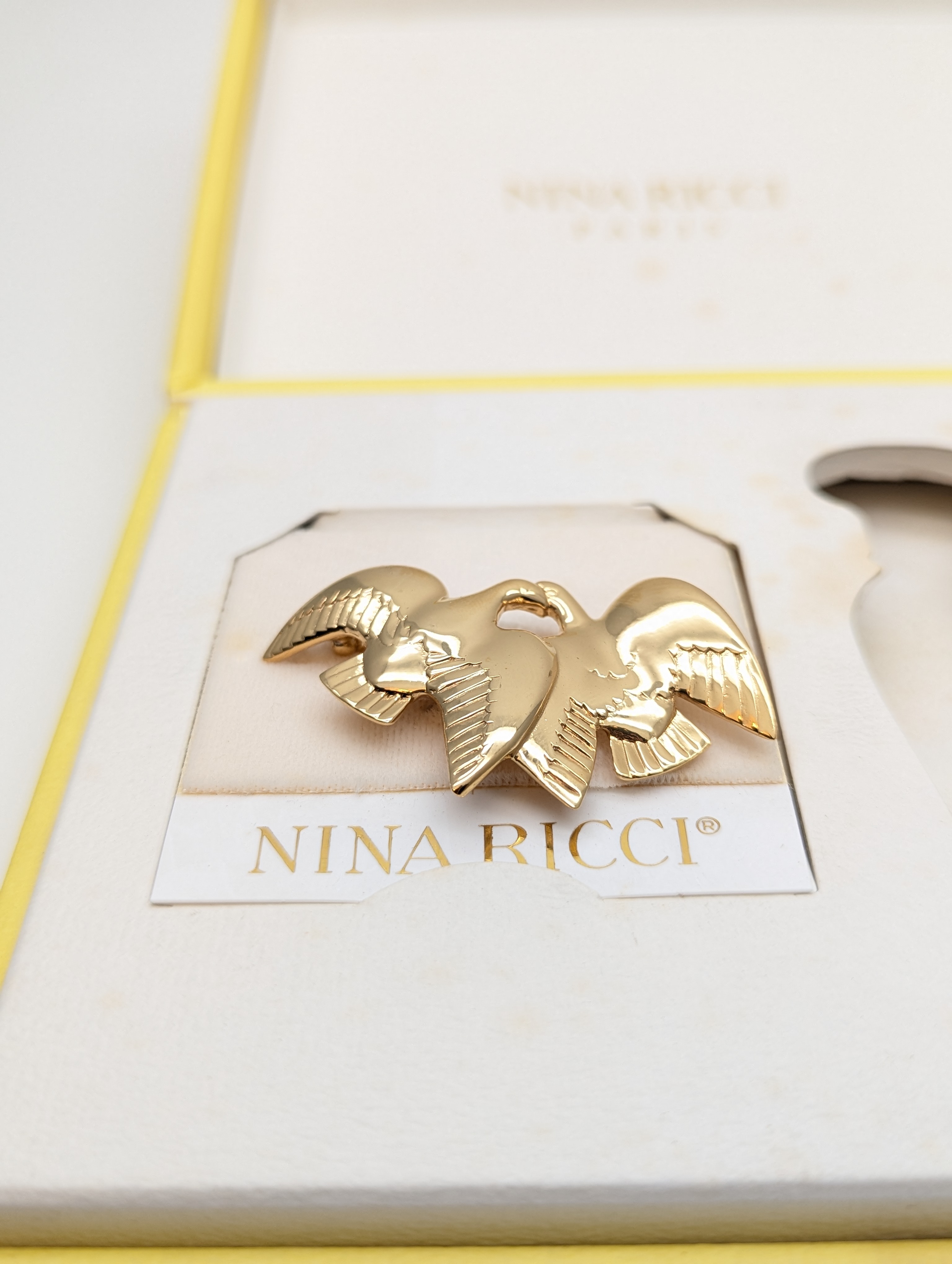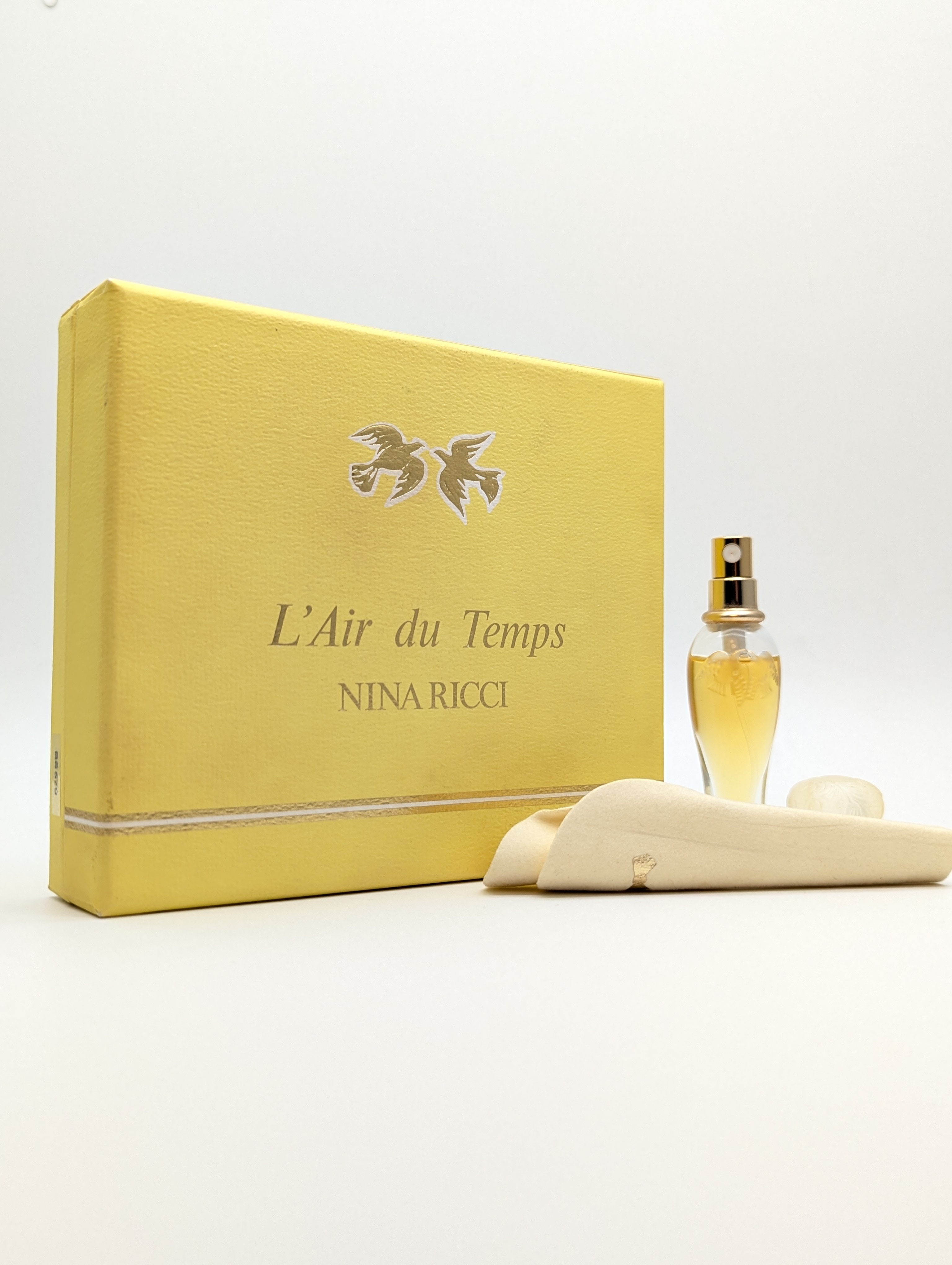 Шикарные винтажные духи Nina Ricci L'Air du Temps (Нина Ричи Ль'Эр дю Там) объёмом 7,5 мл, флакон спрей (пульверизатор), 1990-х годов выпуска. В комплекте идёт брошь с голубями и бархатный мешочек.