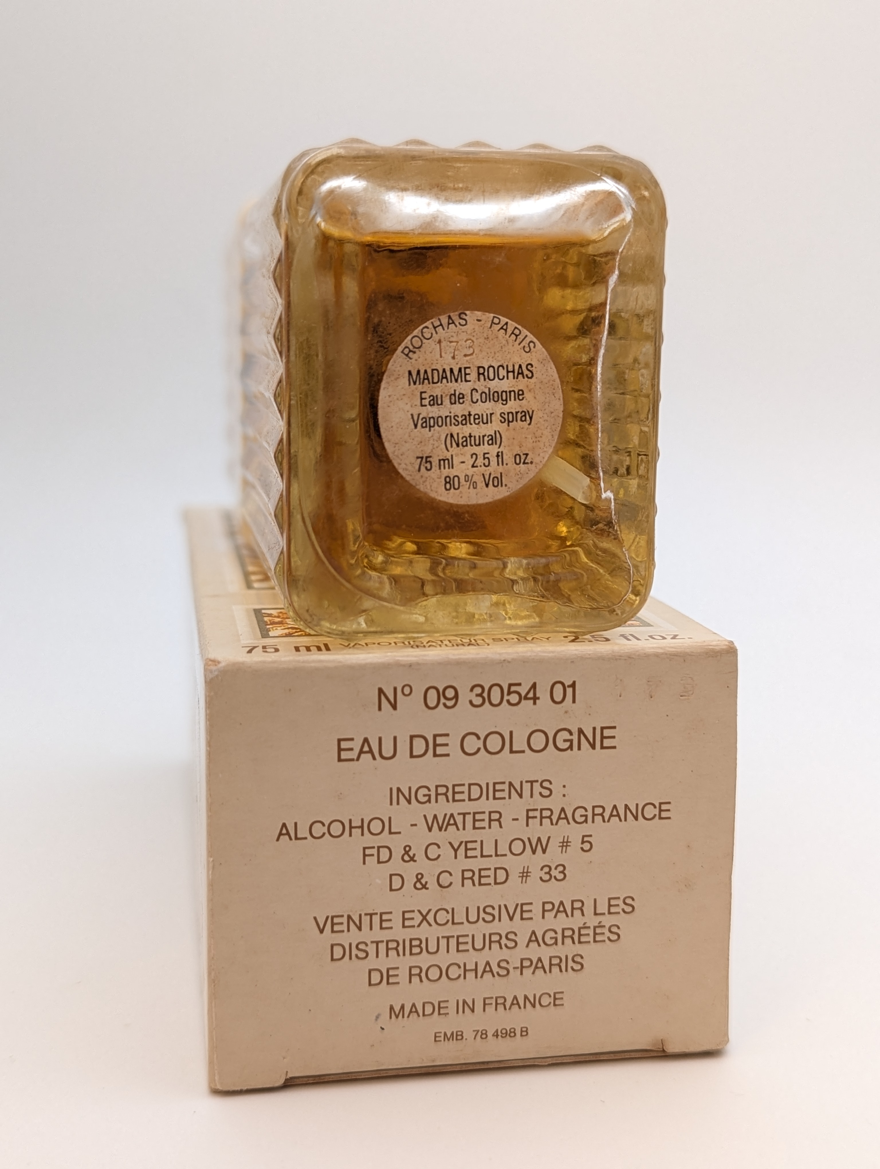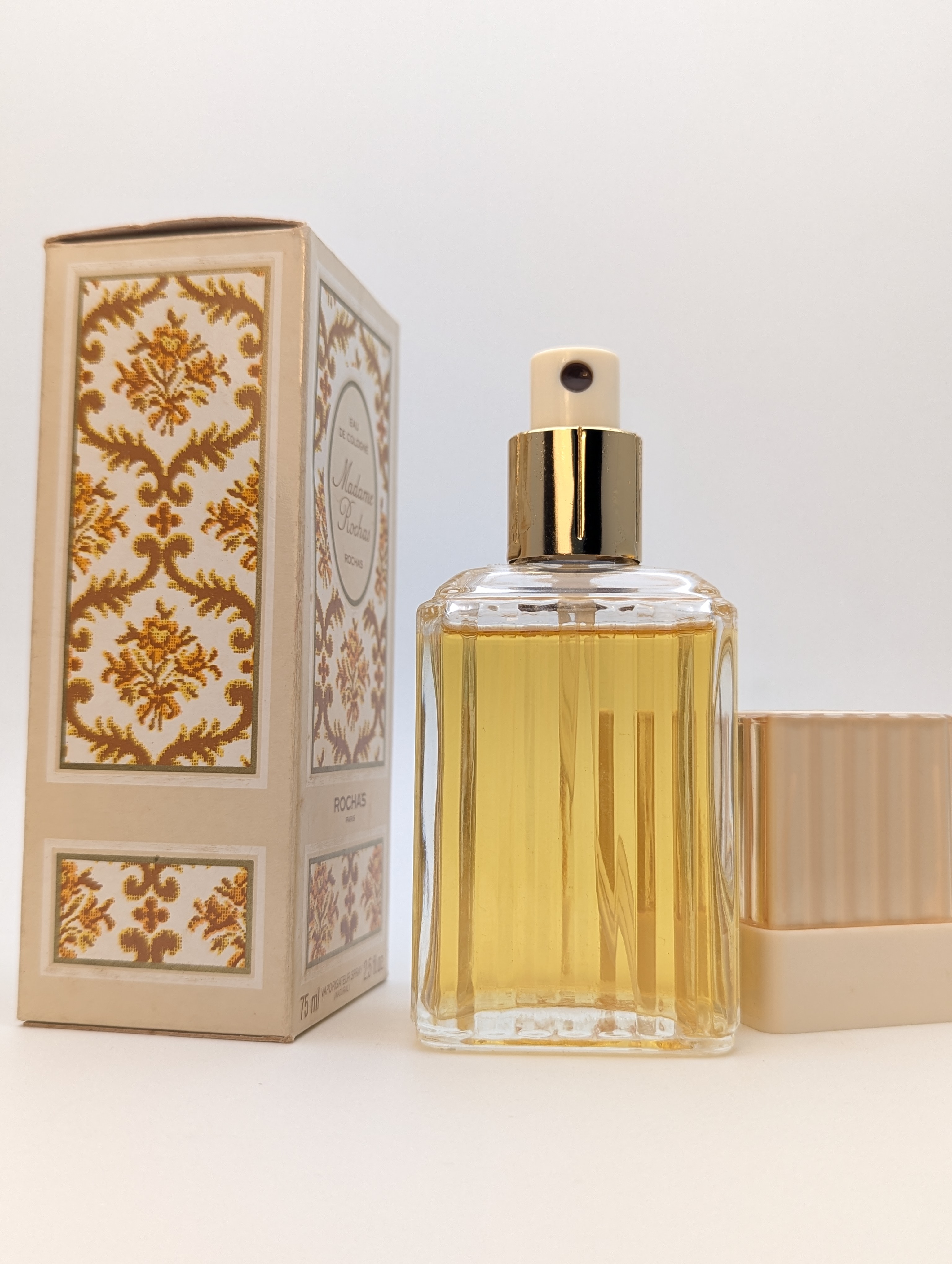 Роскошный винтажный одеколон Rochas Madame Rochas (Роша Мадам Роша) объёмом 75 мл 1983 года выпуска, флакон спрей (пульверизатор).