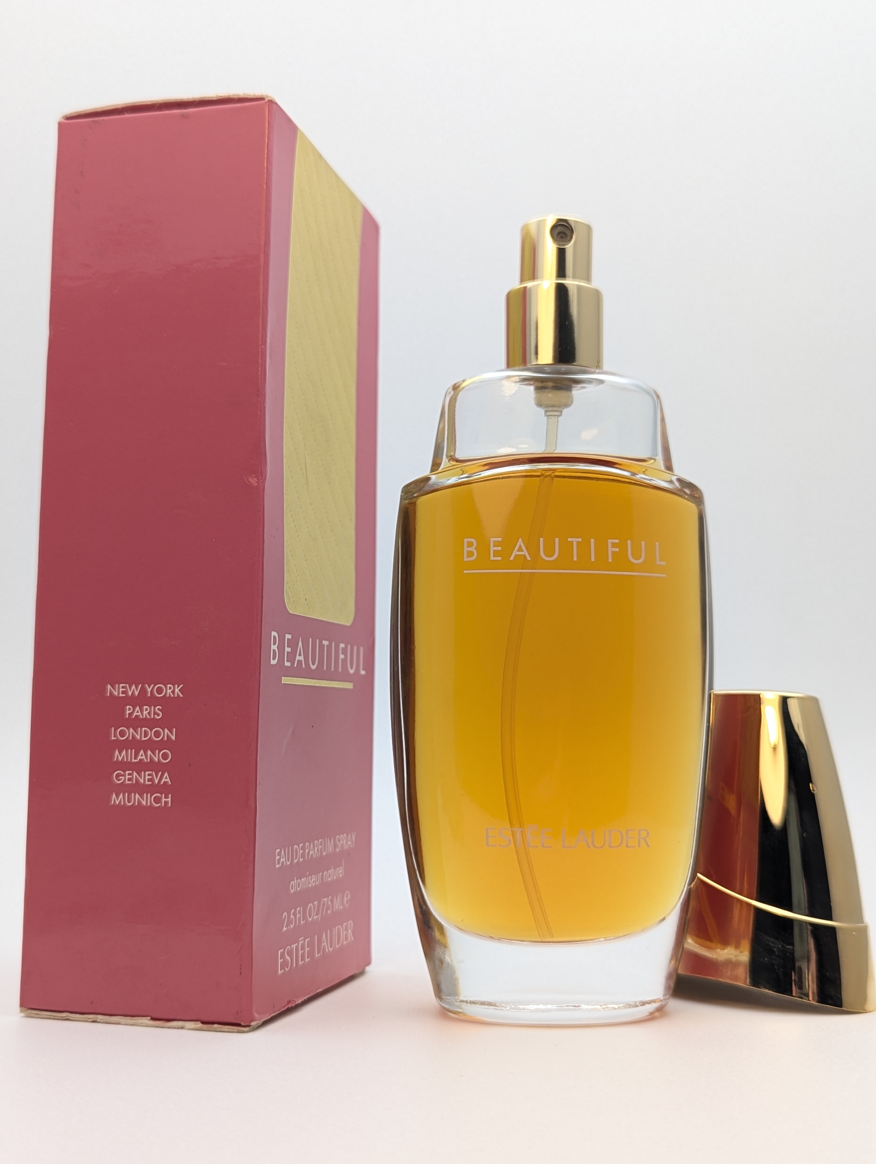 Утончённая винтажная парфюмерная вода Estee Lauder Beautiful (Эсте Лаудер Бьютифул) объёмом 75 мл 2003 года выпуска, флакон спрей (пульверизатор).