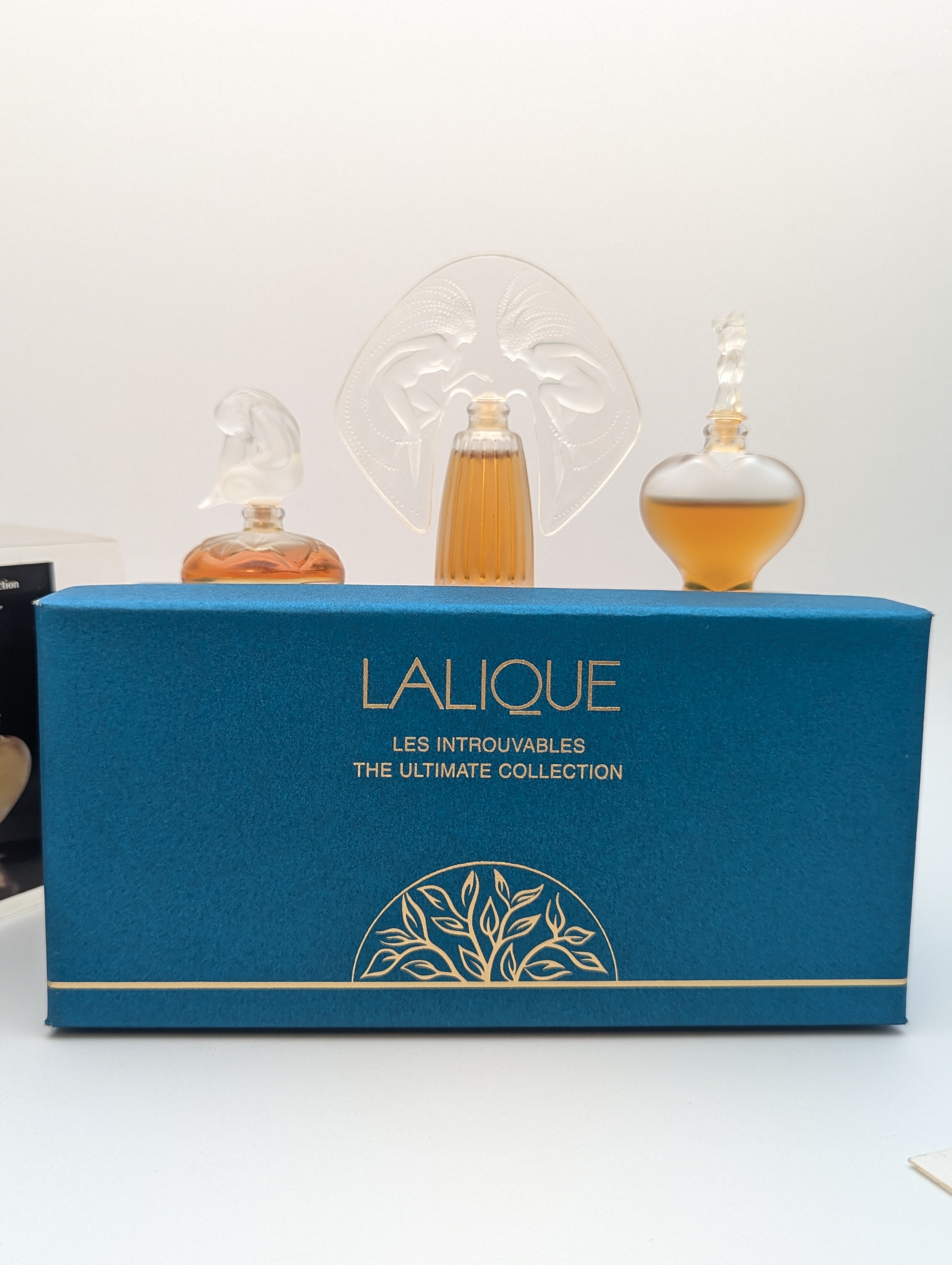 Роскошный подарочный набор миниатюр винтажных духов Lalique Les Introuvables (Лалик) общим объёмом 13,5 мл 1990-х годов выпуска.