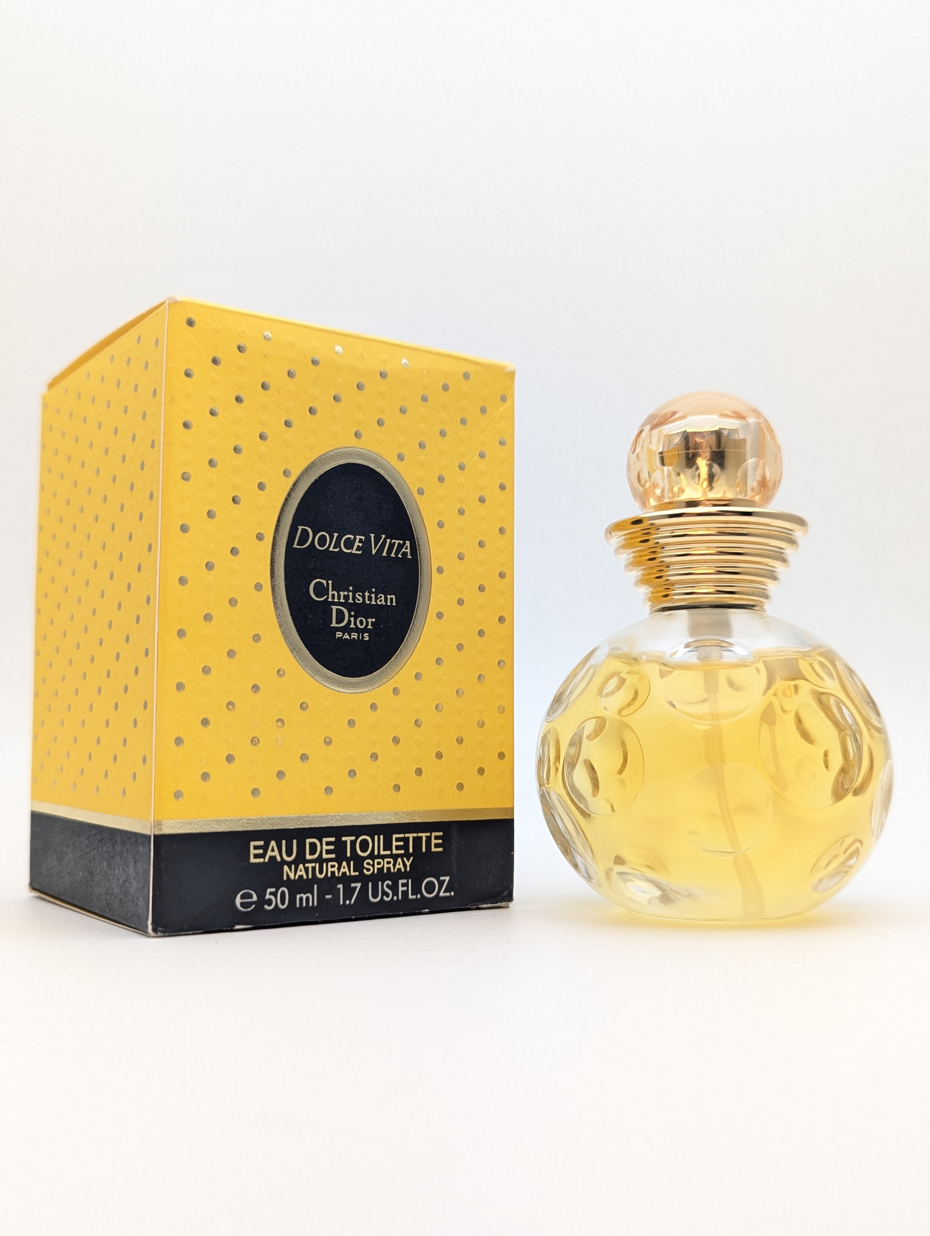 Утончённая винтажная туалетная вода Christian Dior Dolce Vita (Кристиан Диор Дольче Вита) объёмом 50 мл 1995 года выпуска, флакон спрей (пульверизатор), полный — прекрасно на подарок!