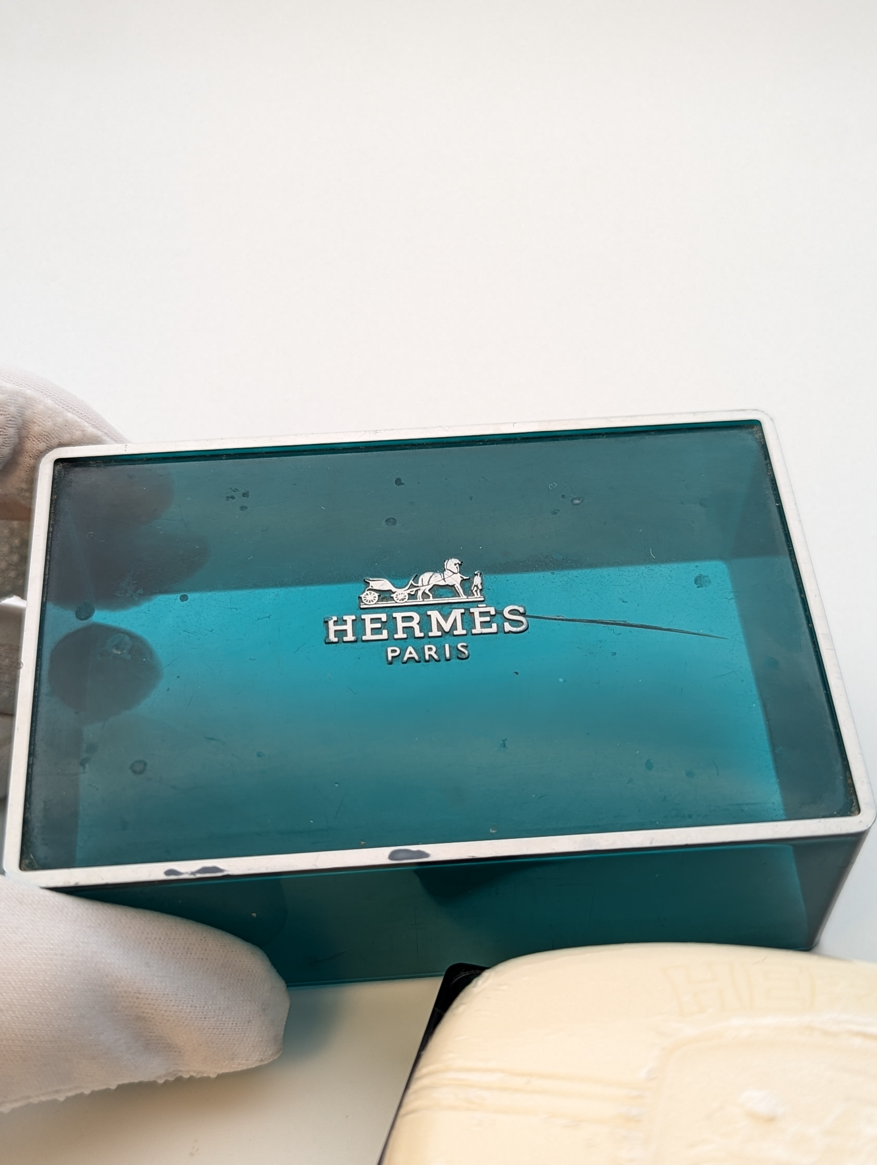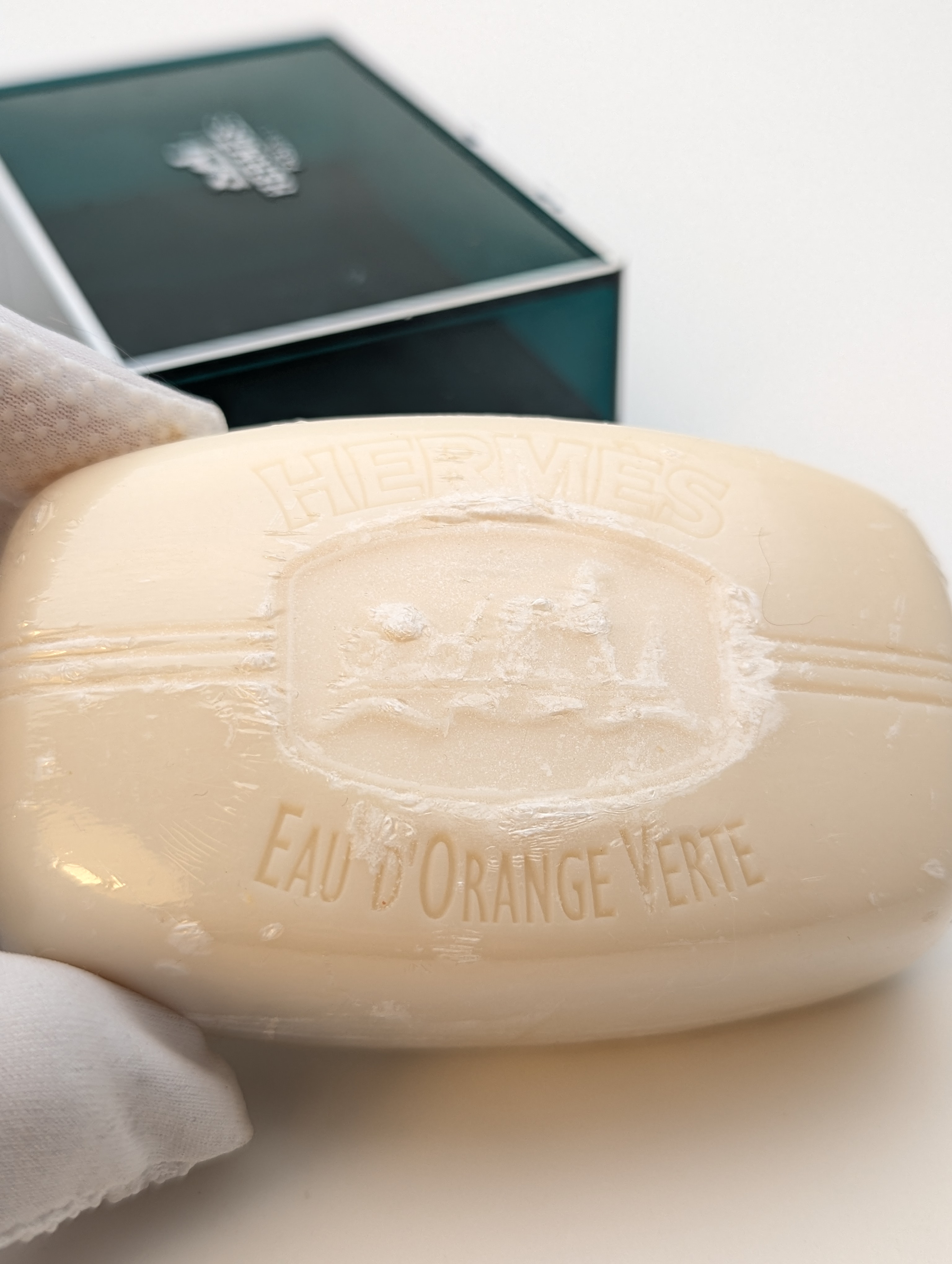 Шикарное винтажное парфюмированное мыло Hermes Eau D'Orange Verte 1979 (Эрмес О д'Оранж Вер 1979) весом 150 грамм 2004 года выпуска, не пользованное, в оригинальной мыльнице.