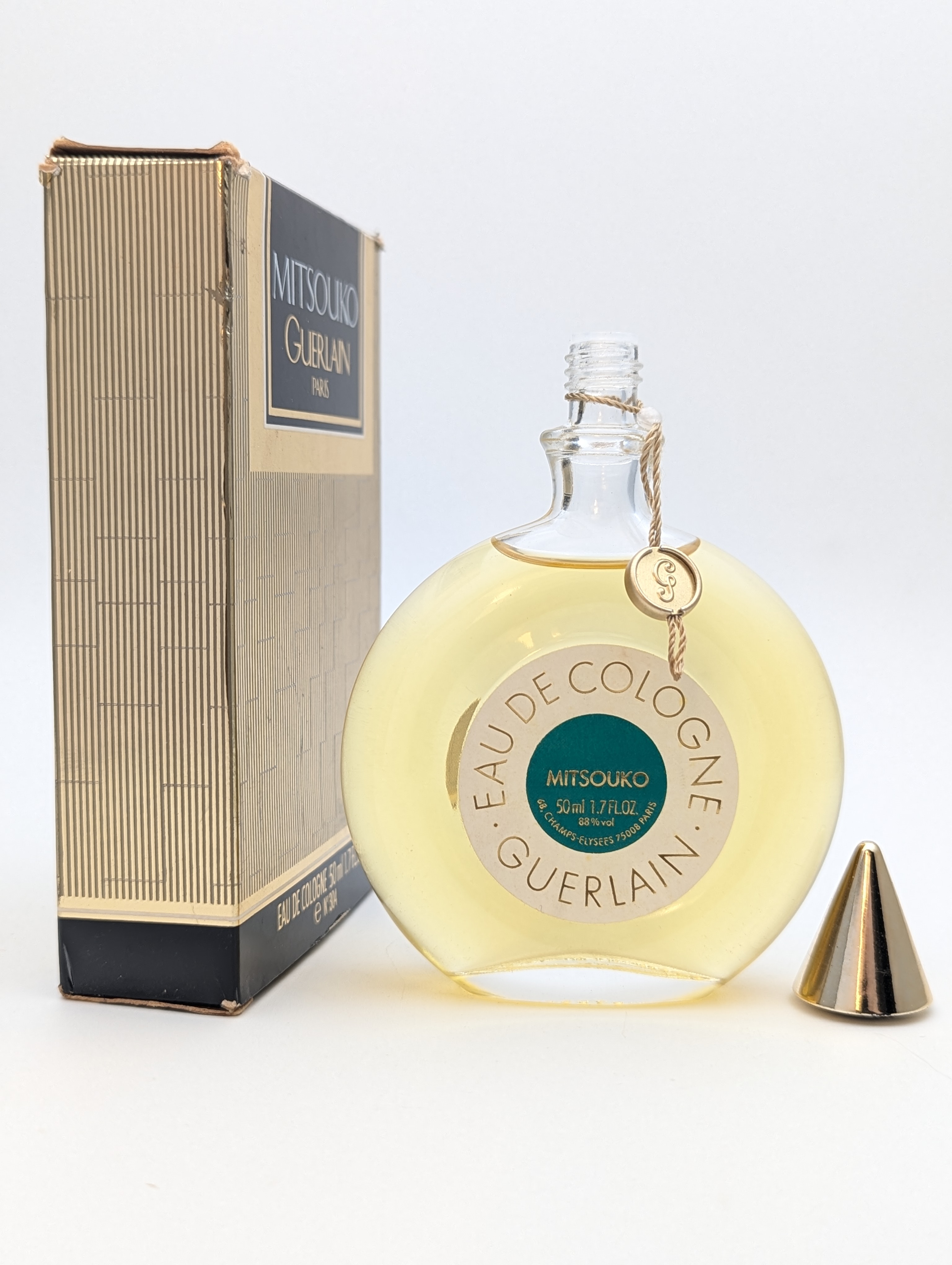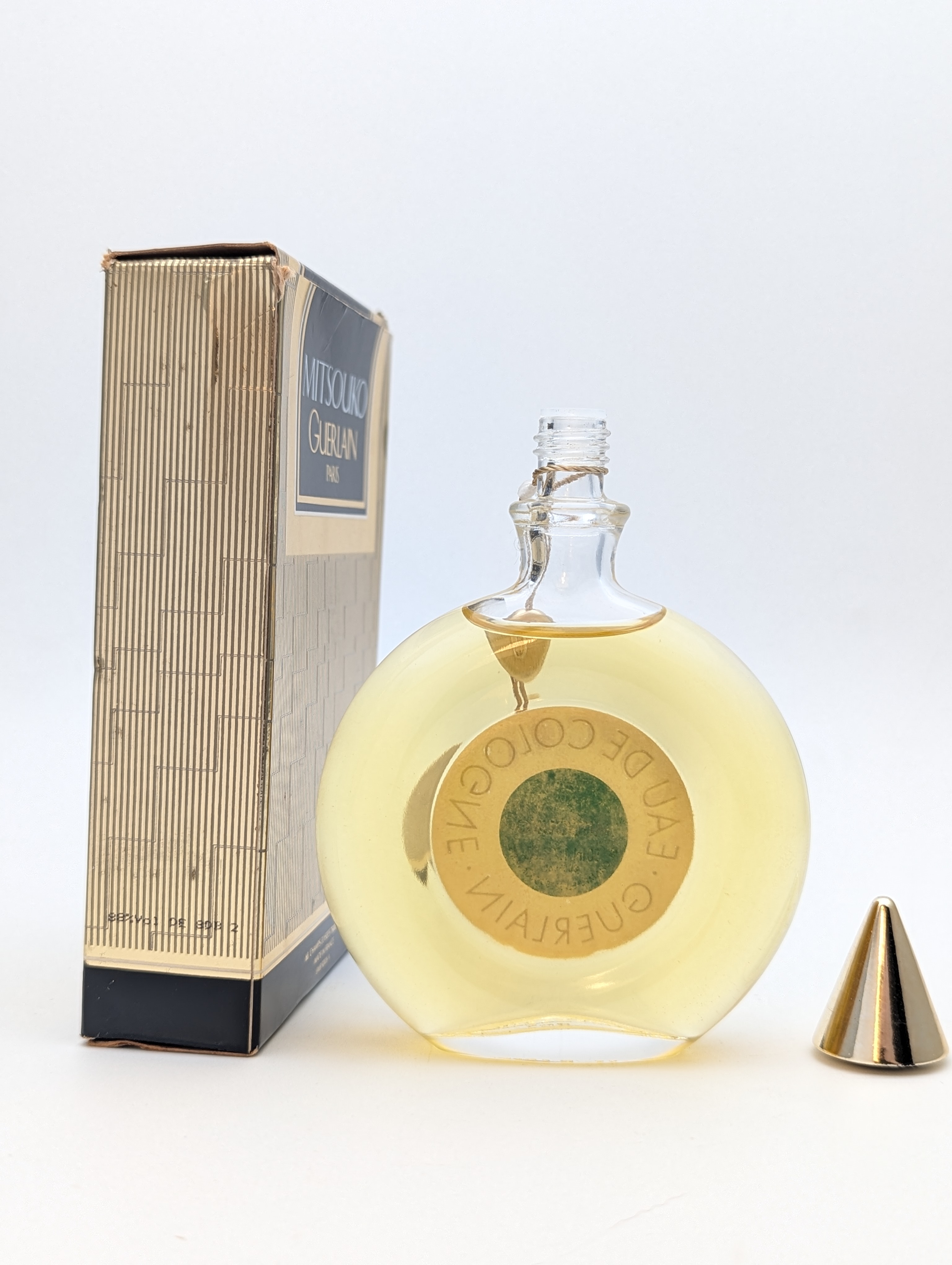 Изысканный винтажный одеколон Guerlain Mitsouko (Герлен Мицуко) объёмом 50 мл 1989 года выпуска, флакон сплэш (пальчик, не спрей), полный — прекрасно на подарок!